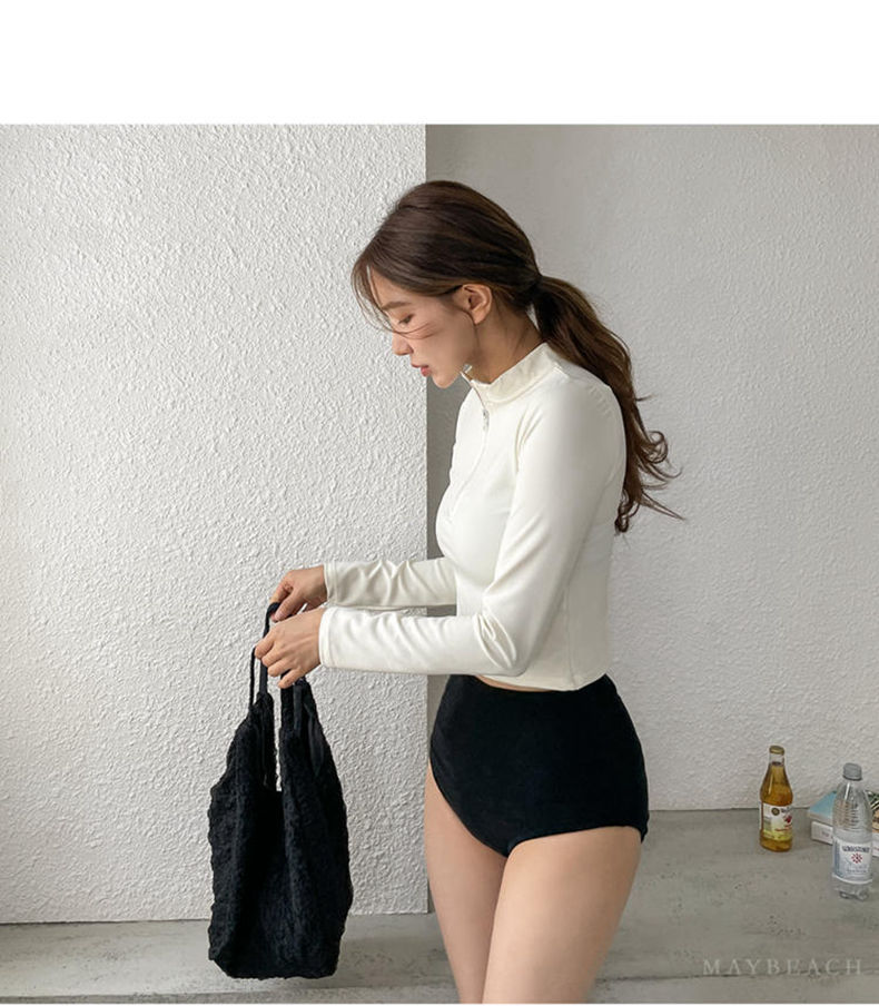 2025 한국 새로운 수영복 섹시 슬림 긴 소매 재킷 보수적 인 높은 허리 배꼽 분할 수영복 여성용 3 피스 세트스토어 가기