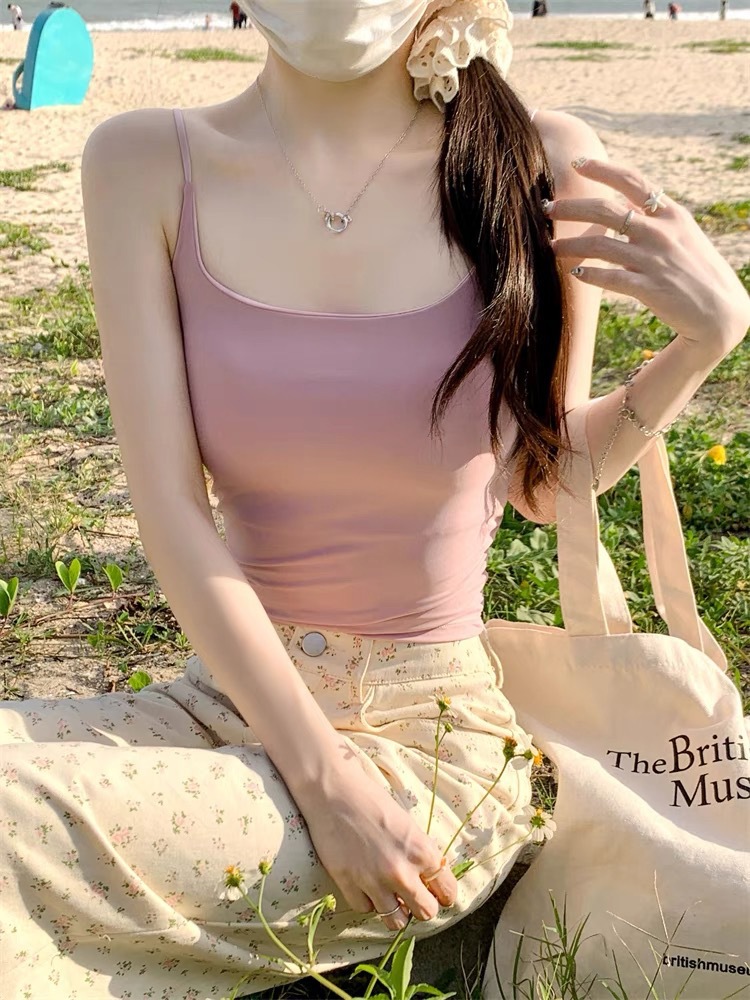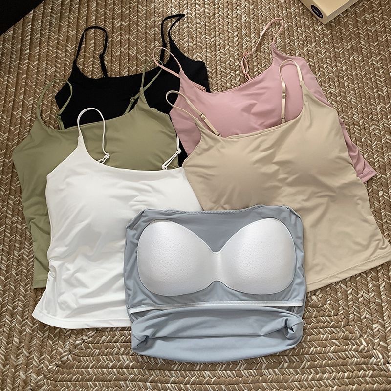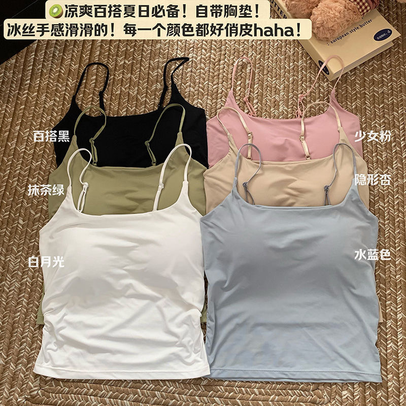 아이스 실크 아름다운 등 슬링 작은 조끼 가슴 패드와 통기성 안티 러닝 라이트 아우터 입고 여자 가슴 감싸는 튜브 탑