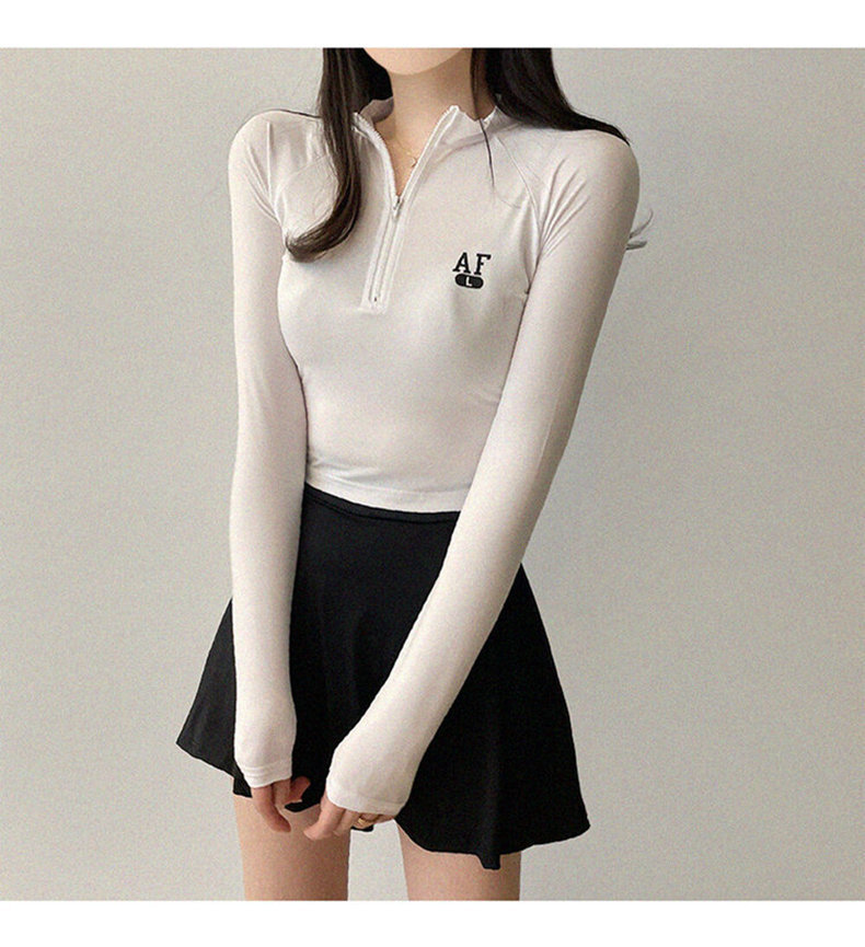 한국 인 슬림 핏 슬리밍 선 스크린 빠른 건조 높은 칼라 보수적 인 스커트 스플릿 수영복 여성용 온천 휴가 수영복스토어 가기