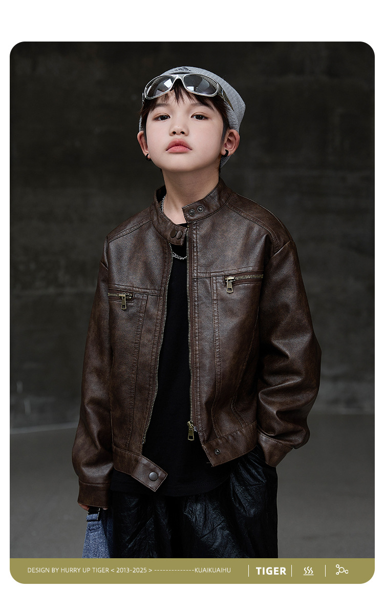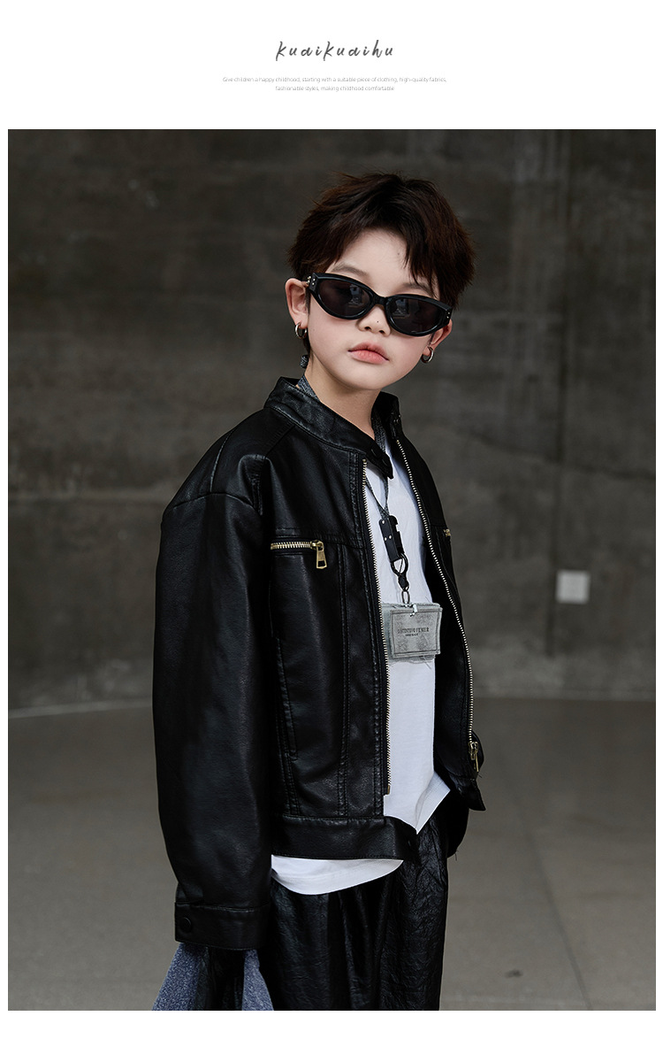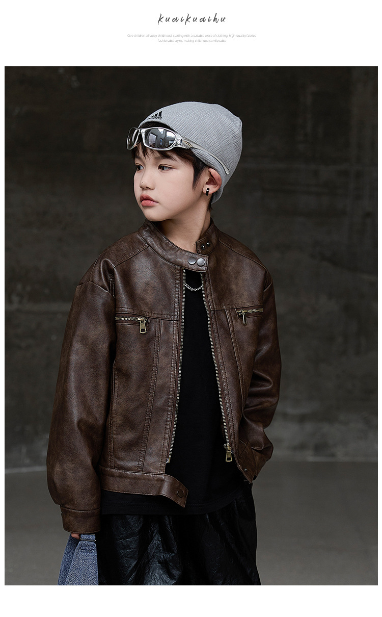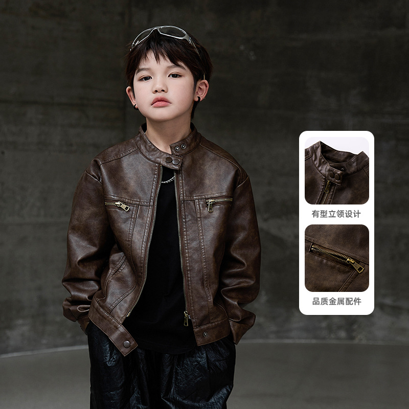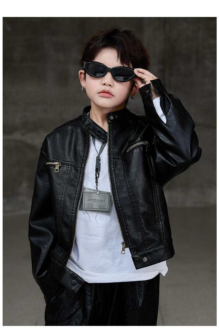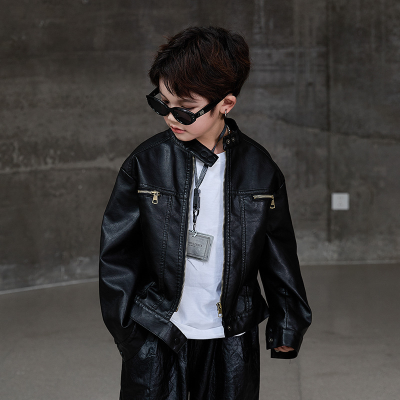 소년 가죽 자켓 봄과 가을 2025 새로운 유행 대형 어린이 봄 코트 바이커 옷 소년의 더피 잘 생긴 외국 스타일스토어 가기