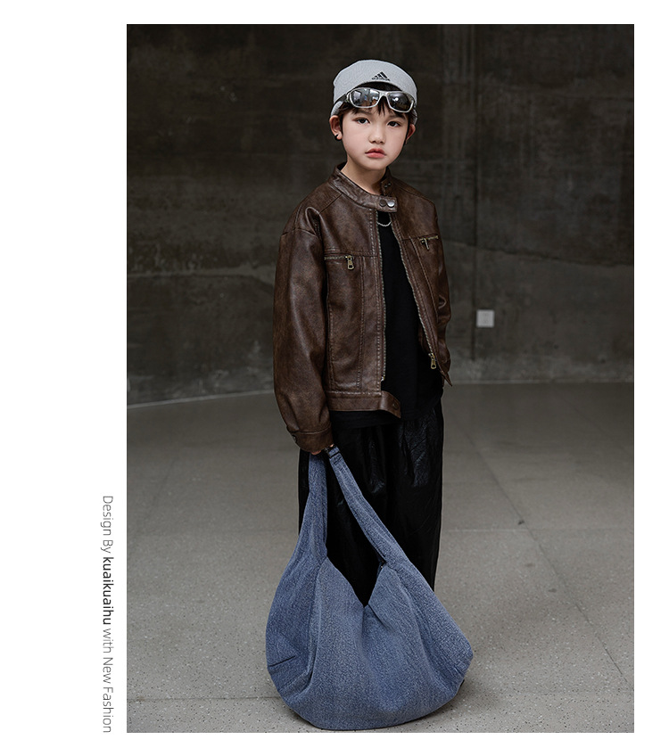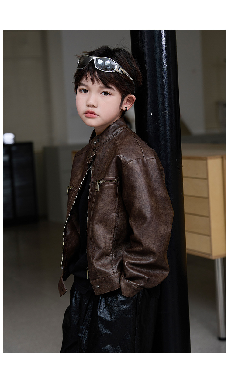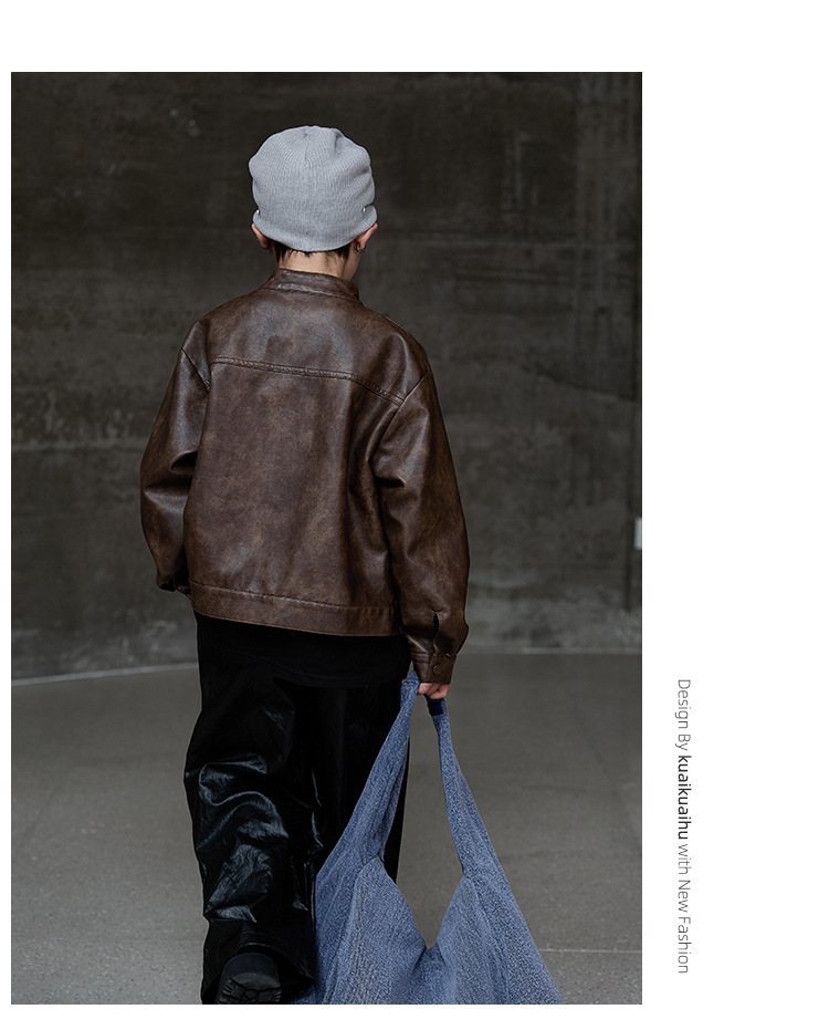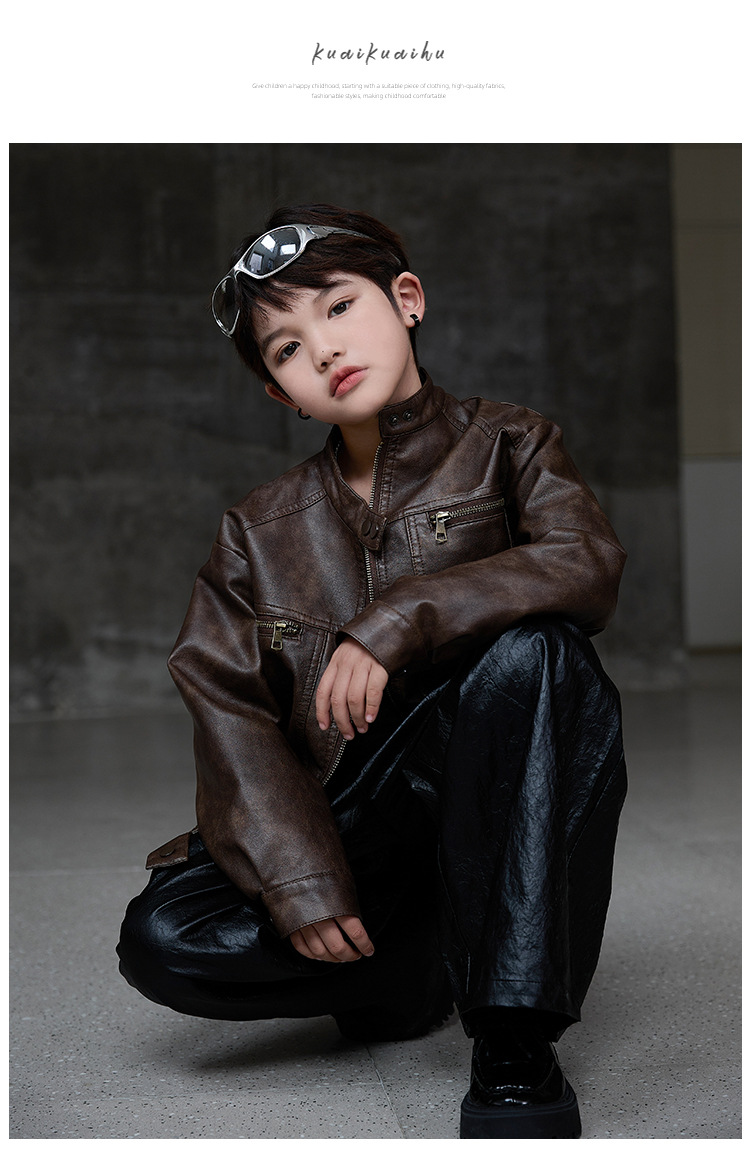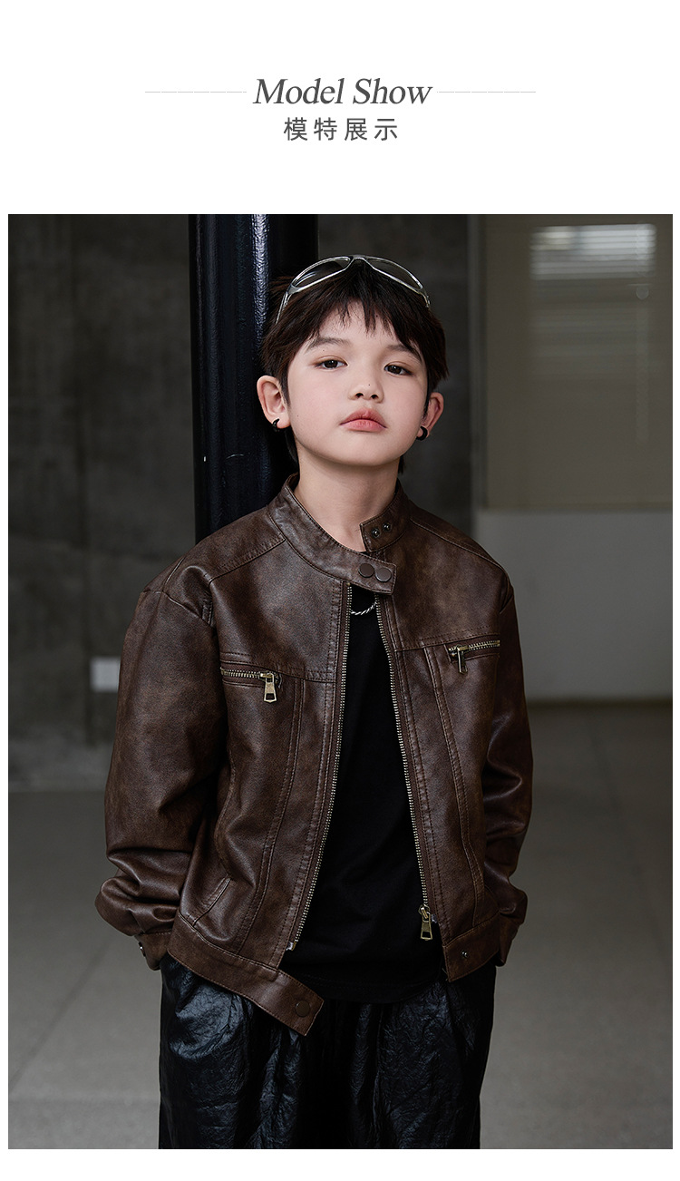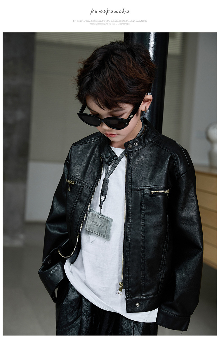 소년 가죽 자켓 봄과 가을 2025 새로운 유행 대형 어린이 봄 코트 바이커 옷 소년의 더피 잘 생긴 외국 스타일스토어 가기
