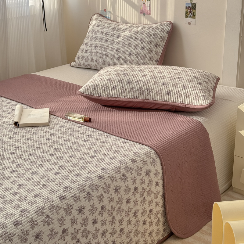 2025 양면 순면 모래 세척 가능한 침대 커버 싱글 피스 인 한국 스타일 만화 꽃 두꺼운 퀼트 침대 시트 베개 케이스