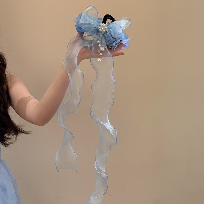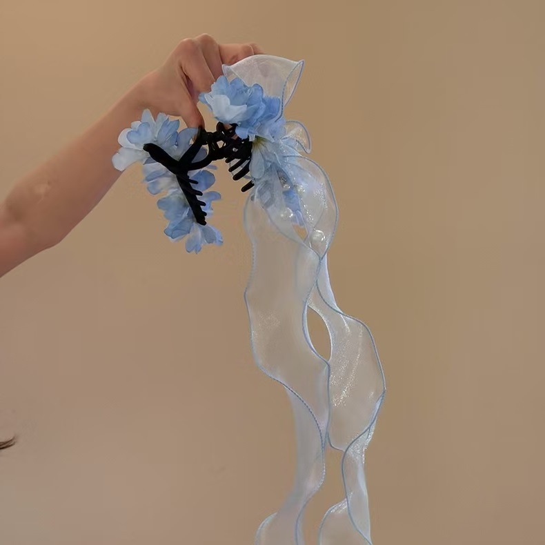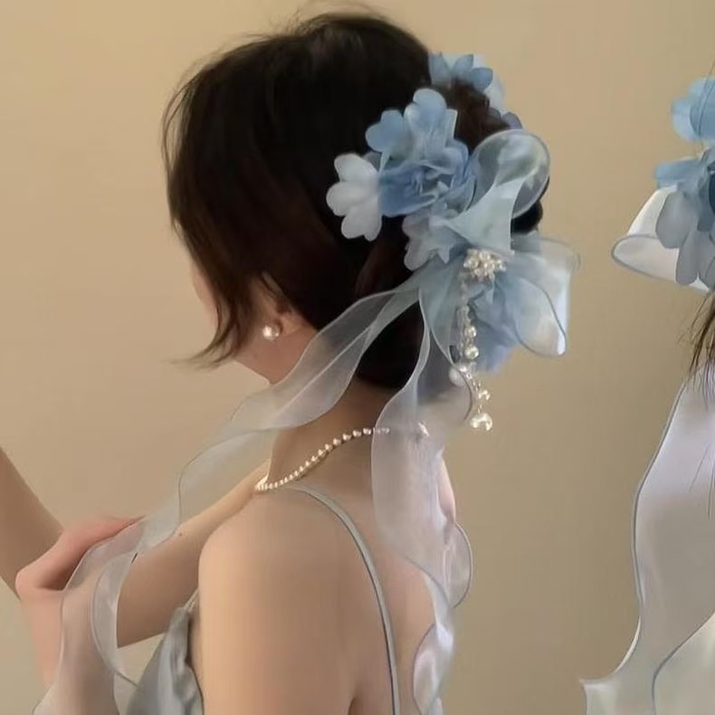 슈퍼 요정 블루 플라워 클립 여성의 달콤한 독특한 리본 활 머리 상어 클립 틈새 올 매치 헤어 액세서리 트렌디스토어 가기