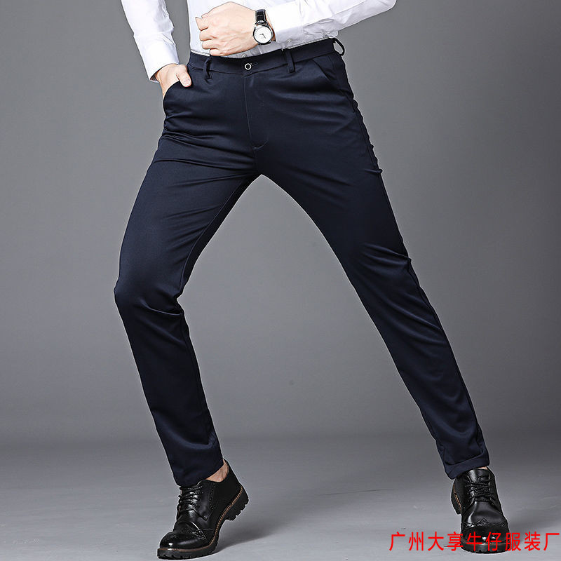 2025 여름 높은 스트레치 바지 젊은 남성 스트레치 캐주얼 바지 한국 스타일 바지 슬림 핏 비 다림질 남성용 바지스토어 가기