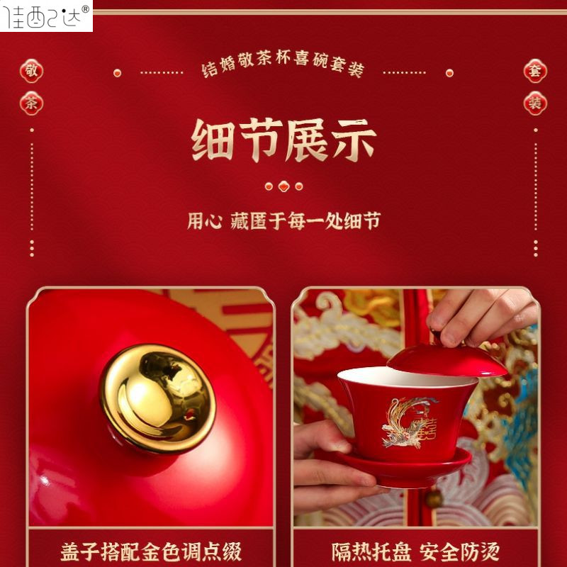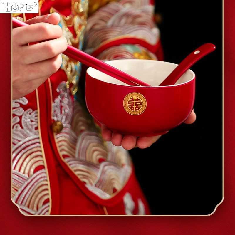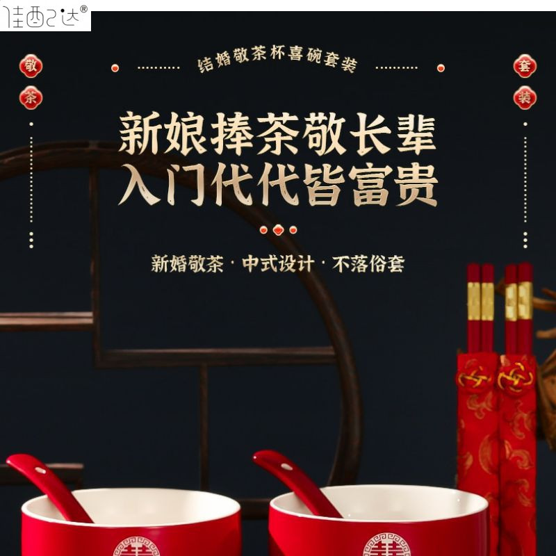 수정 된 토스트 컵 결혼식 세트 덮인 그릇 젓가락 빨간 축제 그릇 웨딩 티 세트 토스트 컵스토어 가기