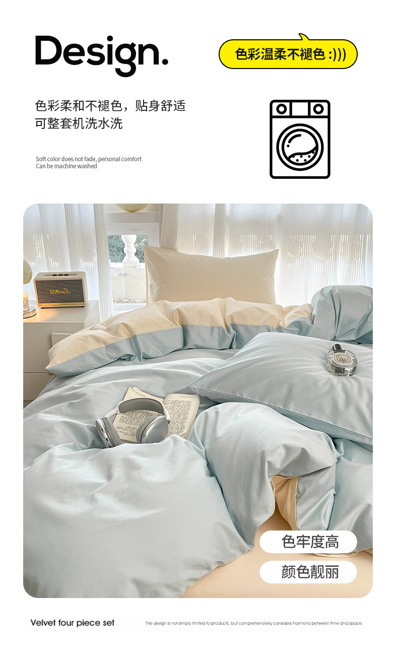신형 더블 플리스 롱벨벳 코튼 4종 세트, 순면 럭셔리 이불 커버, 순면 침대 시트, 침대 커버 3종 세트스토어 가기