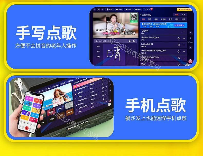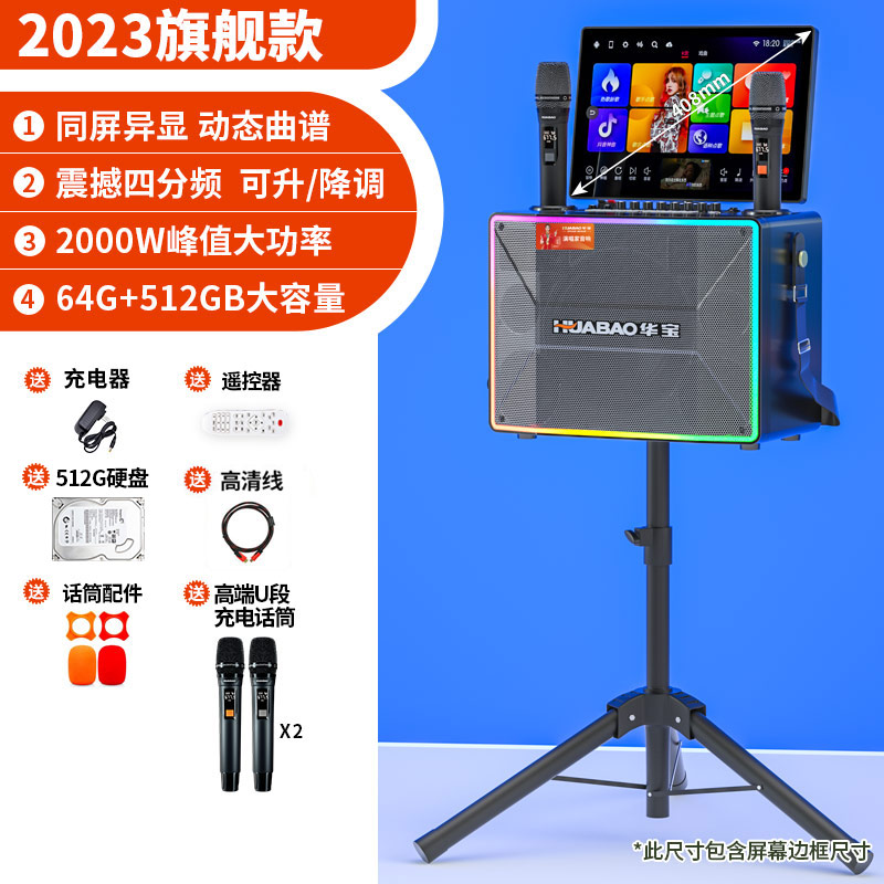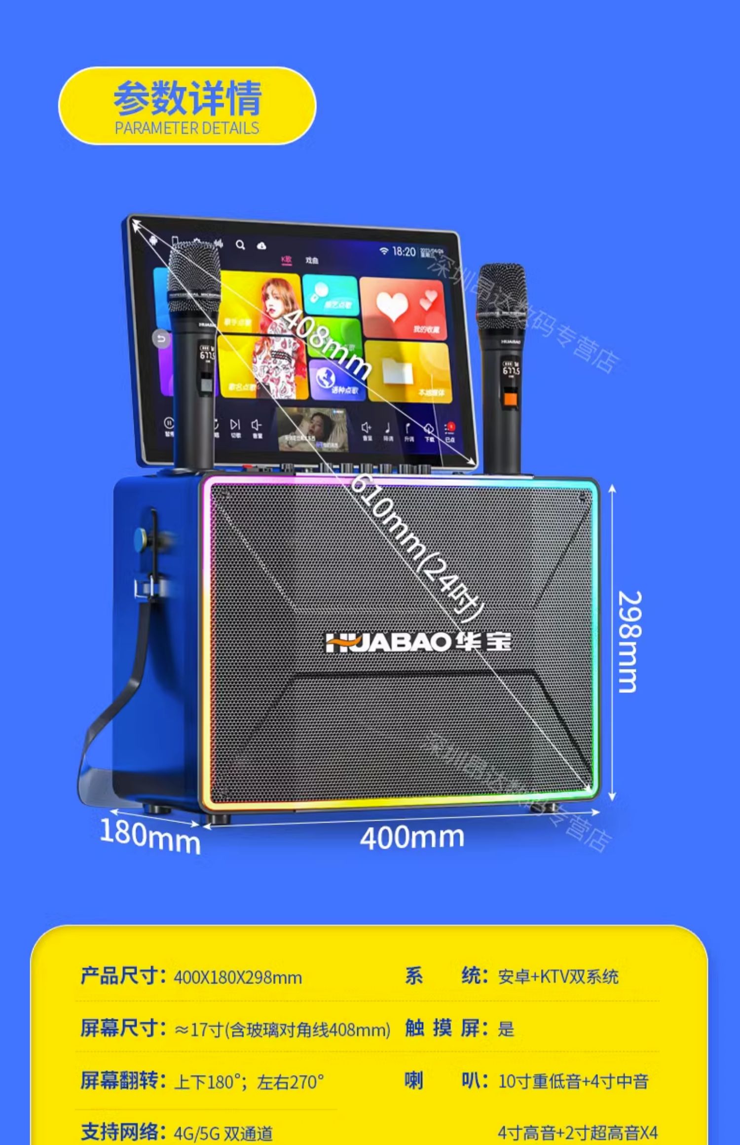 • 24inch 4방향 주파수 + 576G + 듀얼 충전 마이크 [5G 네트워크 + 동일한 화면의 다른 디스플레이 + 동적 악보]