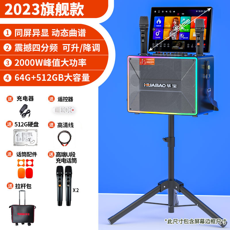 • 24inch 4방향 주파수 + 576G + 듀얼 충전 마이크 + 스탠드 + 트롤리 가방 [5G 네트워크 + 동일한 화면의 다른 디스플레이 + 동적 악보]