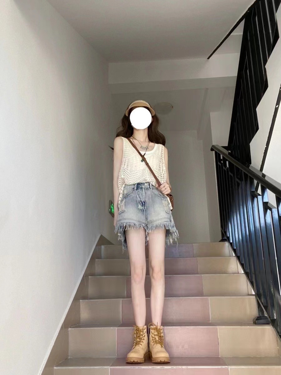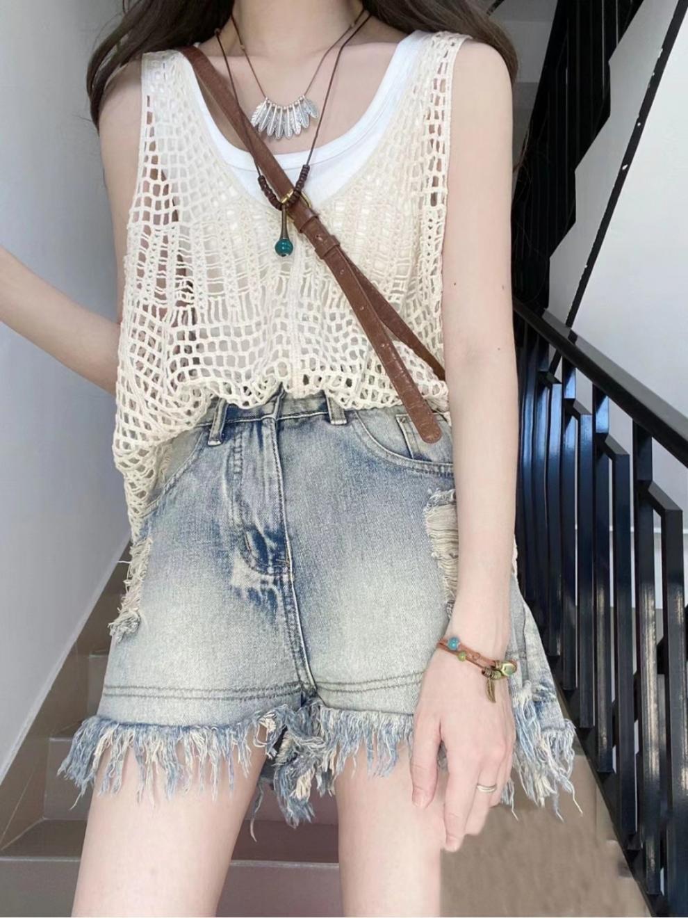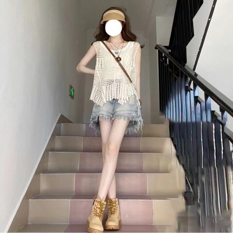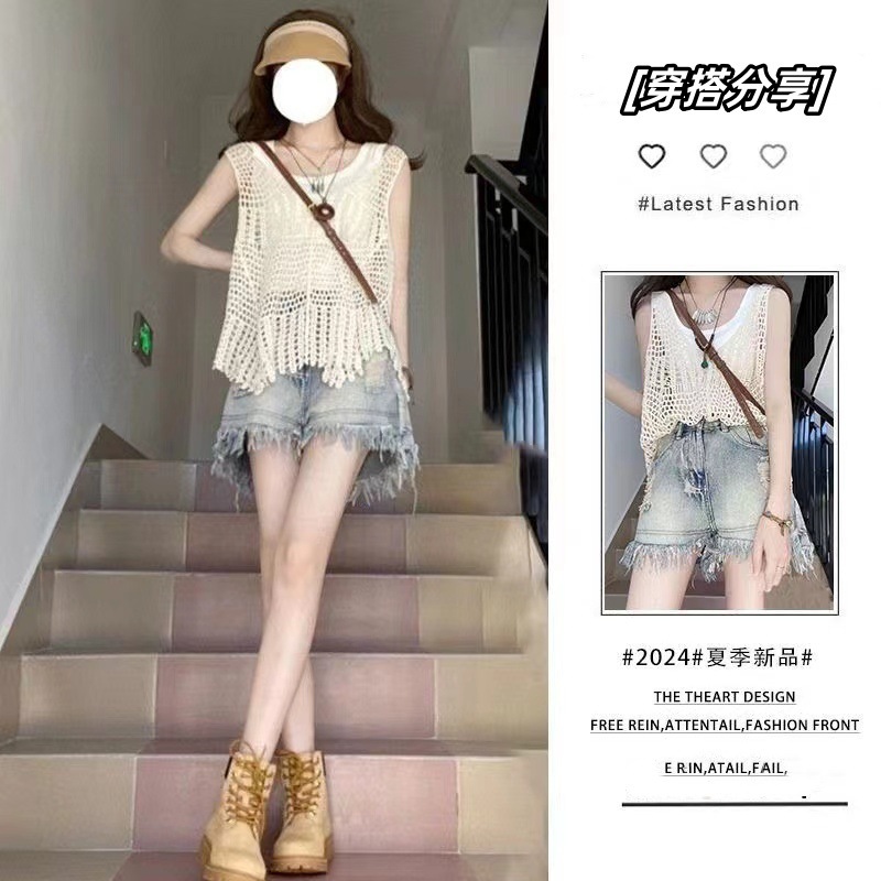 • 중공탑+조끼+데님반바지 3종세트