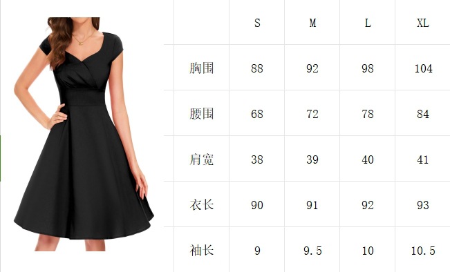 핫 세일 새로운 레트로 여성 의류 V-넥 반소매 타이트 허리 단색 대형 스윙 원피스 패션 라이트 럭셔리 우아함스토어 가기