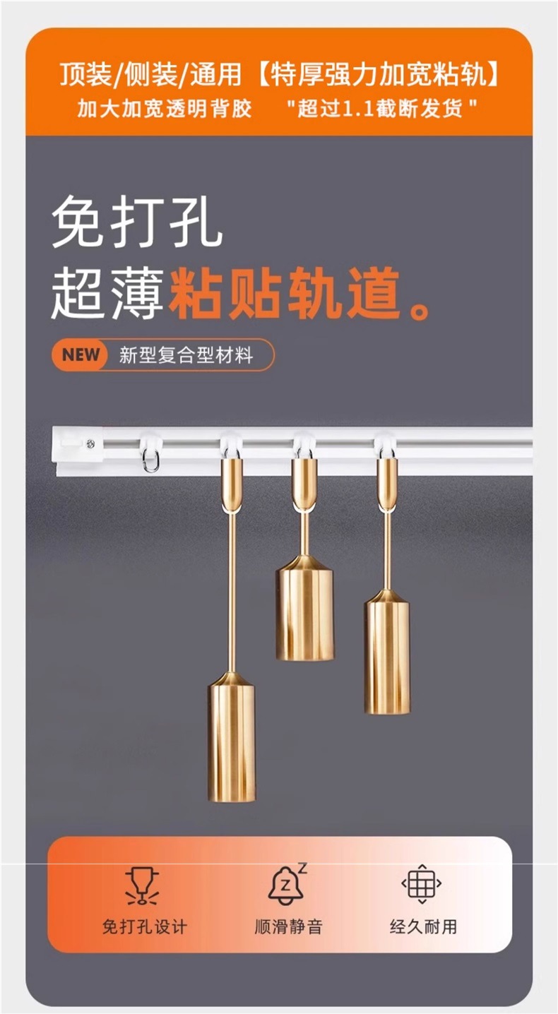 펀치없는 커튼 트랙 침묵 슬라이드 레일 후크 유형 초박형 커튼 로드 레일 베이 창 슬라이드 발코니 접착 유형