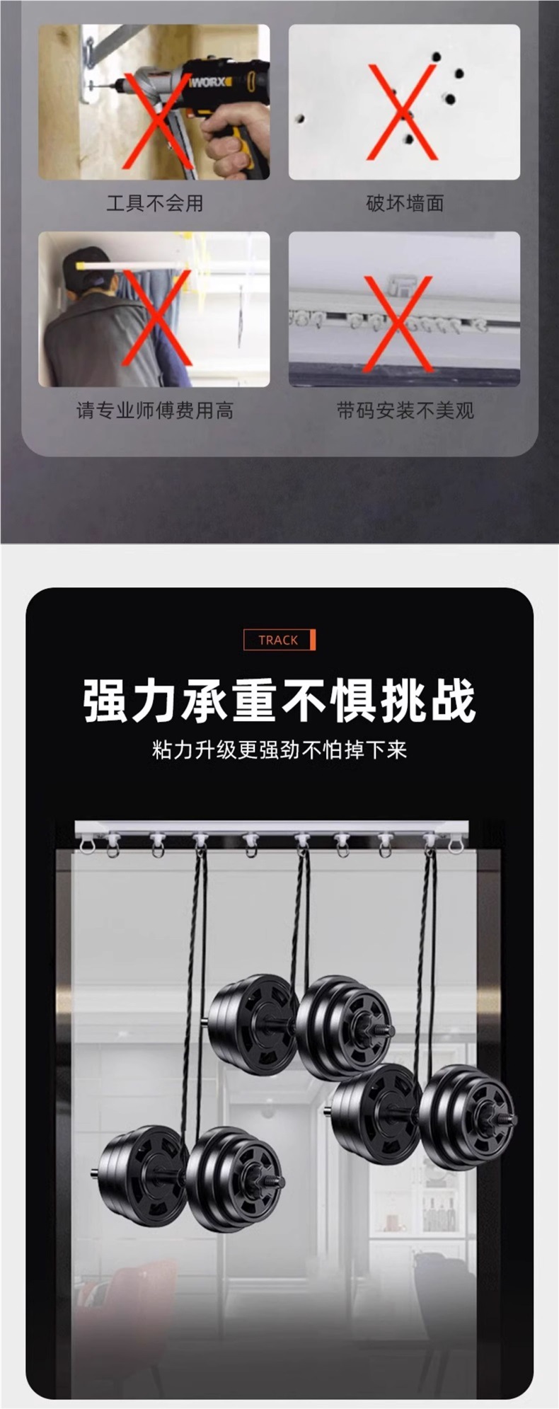 • 상단 장착/측면 장착/유니버설 [매우 두껍고 강력한 확장 - 접착 레일]