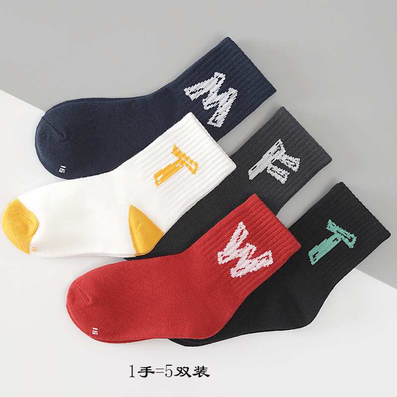 2025 년 어린이 양말 봄과 여름 패션 편지 소년 튜브 양말 간단한 단색 면화 스포츠 양말 도매스토어 가기