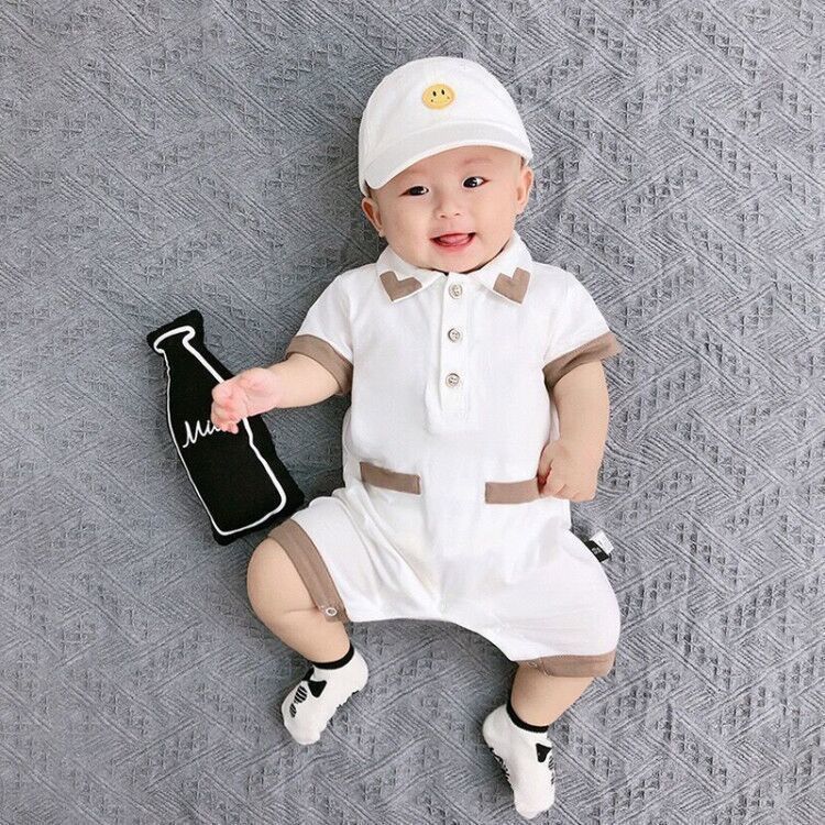 아기 옷 여름 얇은 신사 영국 모자 셔츠 백일 보름달 소년 반팔 잘 생긴 등반 옷