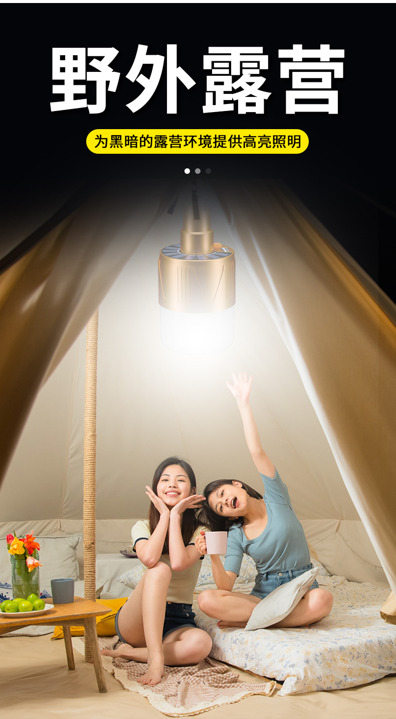 LED 태양 충전 에너지 절약 램프 전구 램프 야외 안뜰 캠핑 슈퍼 밝은 조명 야시장 실속 램프