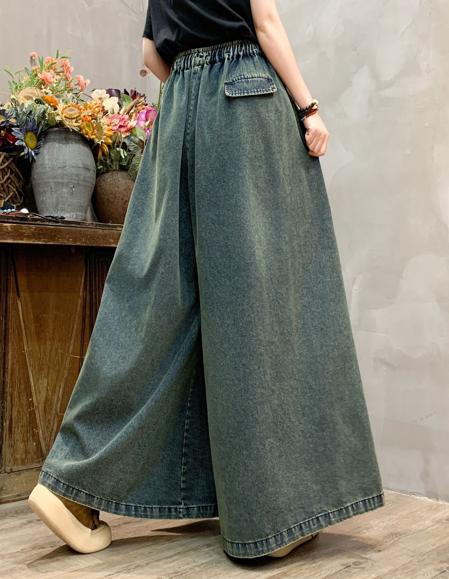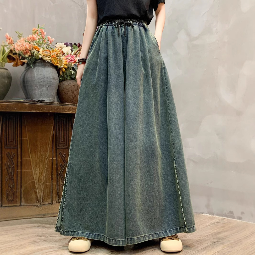 봄 2025 새로운 솔리드 컬러 바느질 플라크 스트레이트 다리 바지 느슨한 높은 허리 레이스 업 넓은 다리 청바지 바지 여성스토어 가기