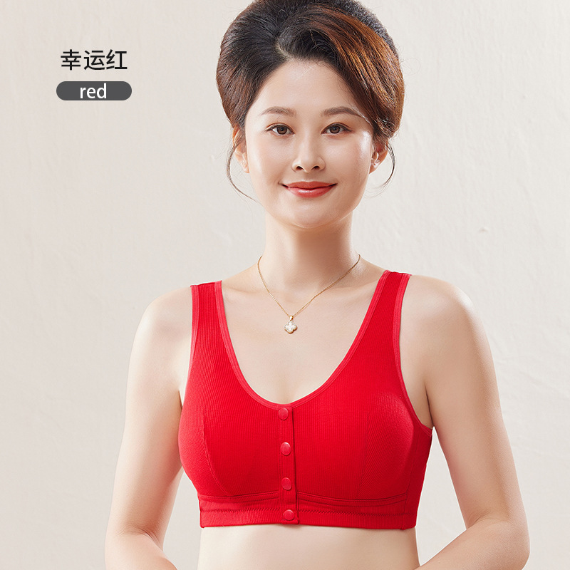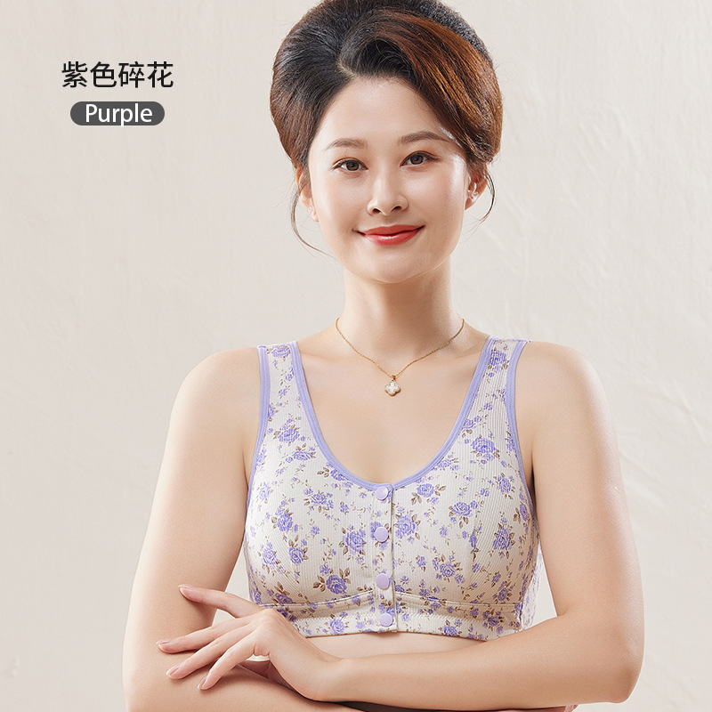 중년 및 노인 조끼를위한 엄마의 속옷 비강철 반지 꽃 앞 버클 플러스 사이즈 브래지어 여성의 통기성 얇은 브래지어