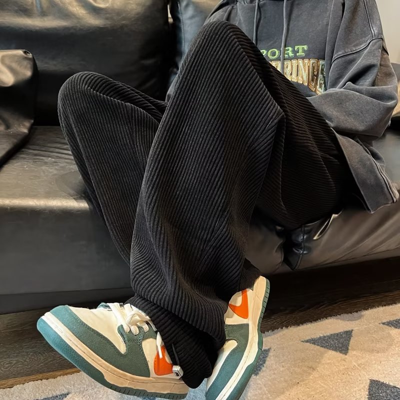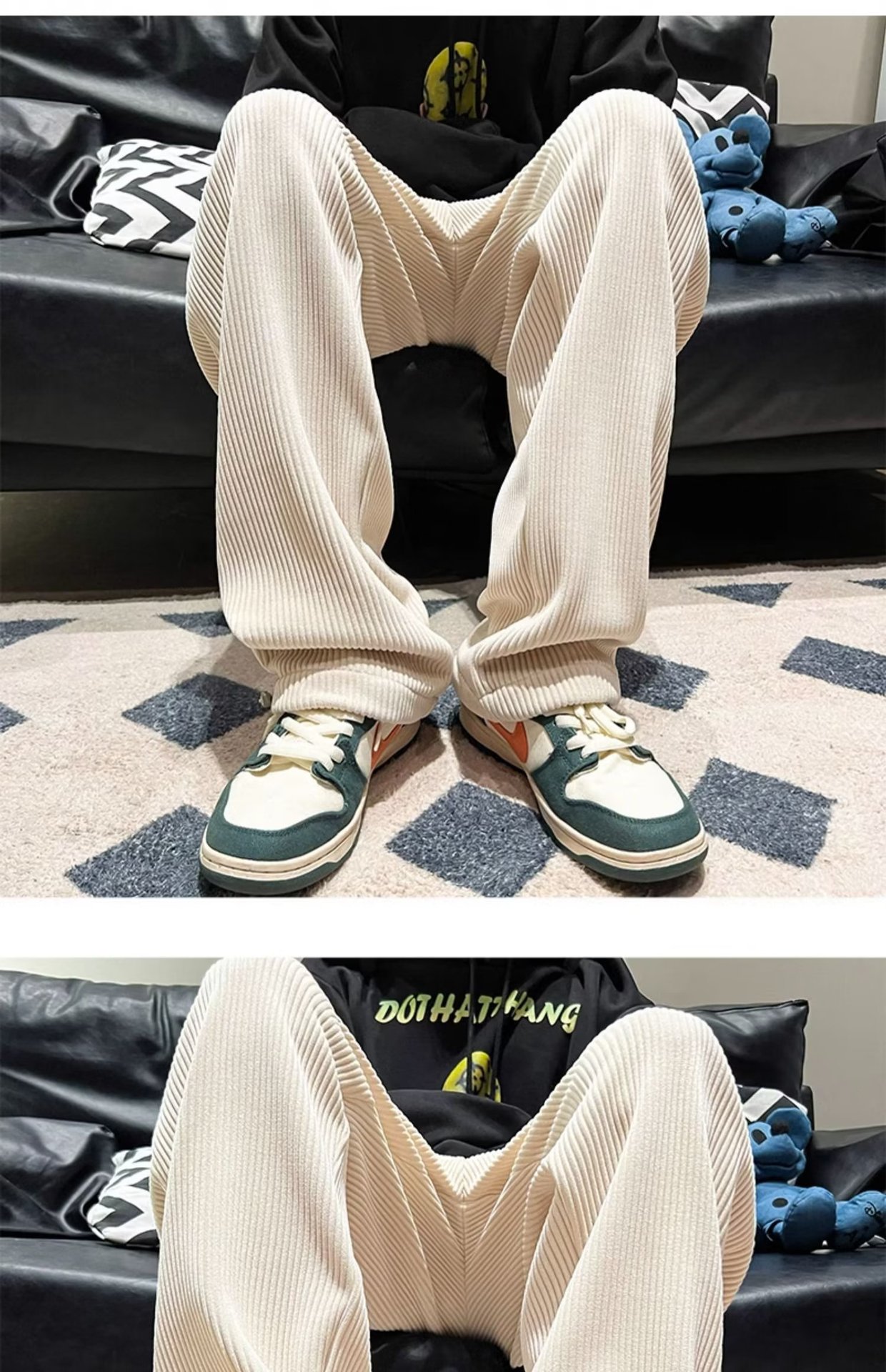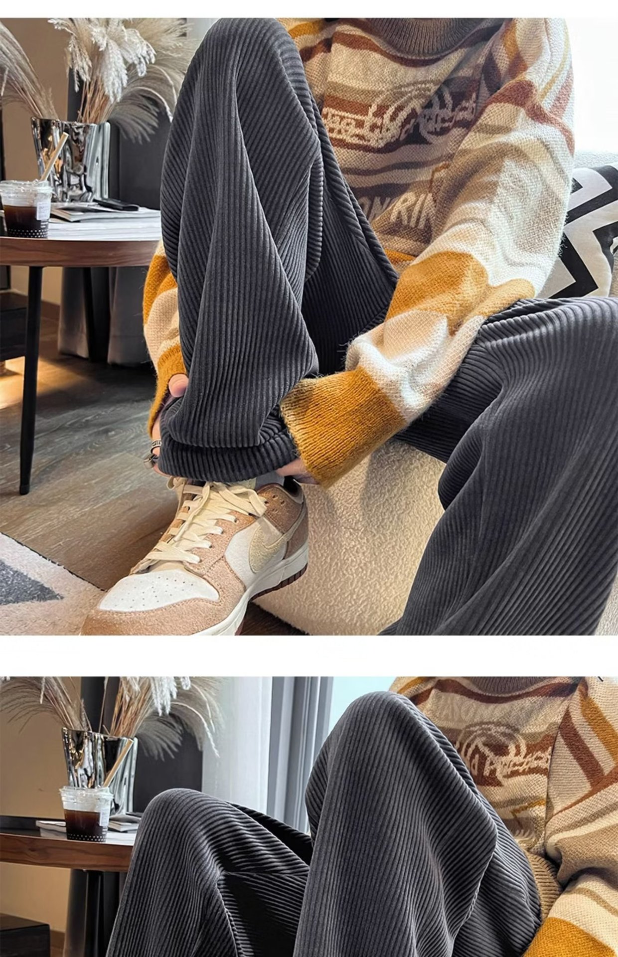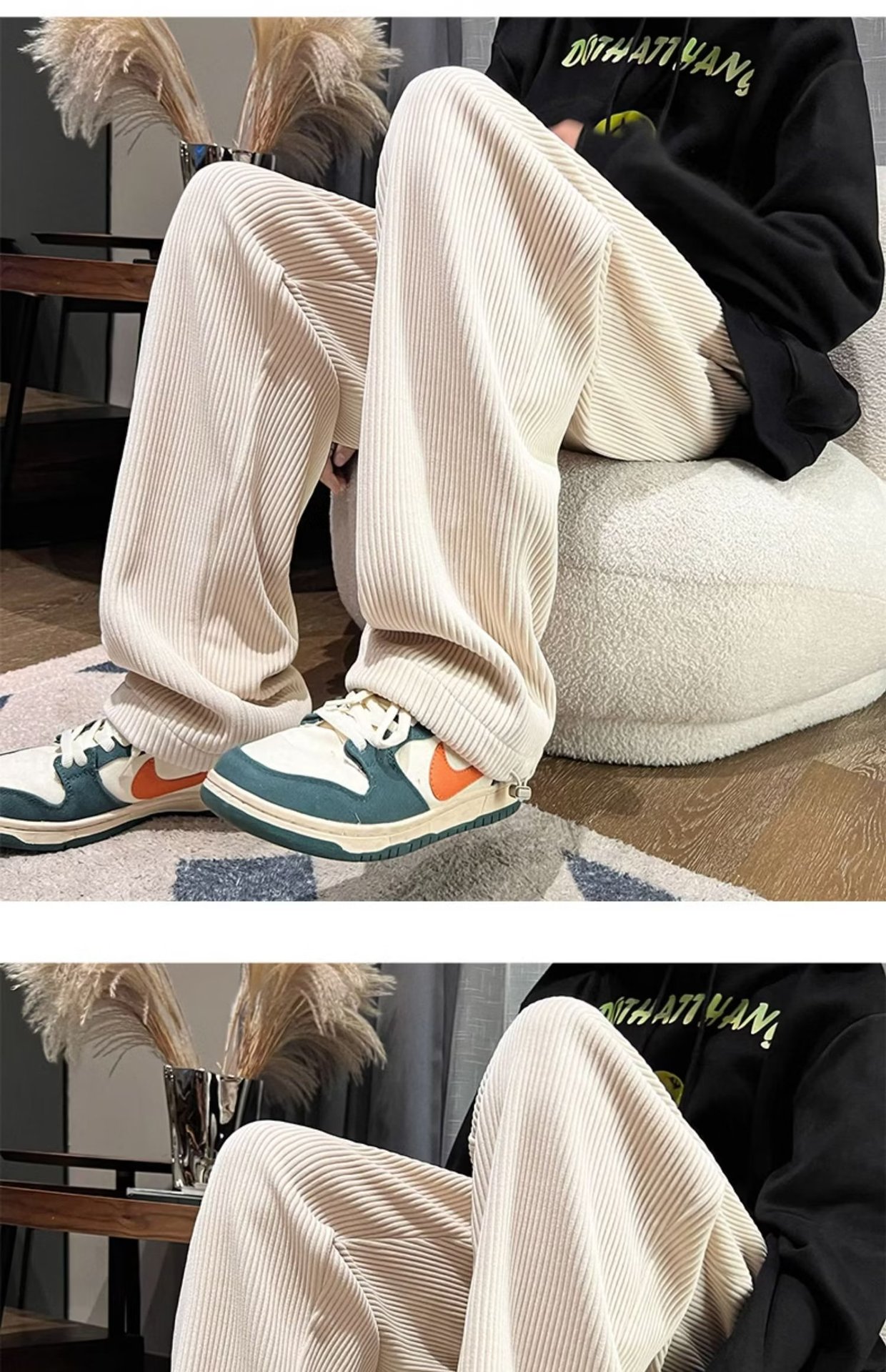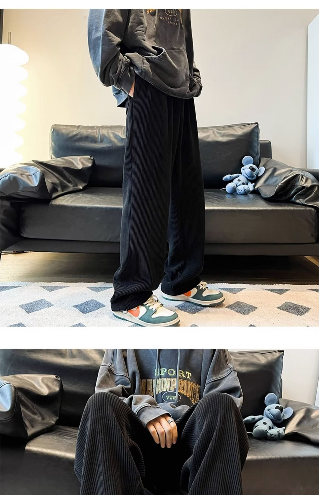 코듀로이 바지 남성 가을 패션 브랜드 수직 스타일 스트레이트 루즈 와이드 레그 바지 미국 빈티지 남성 바지 캐주얼 스포츠 바지