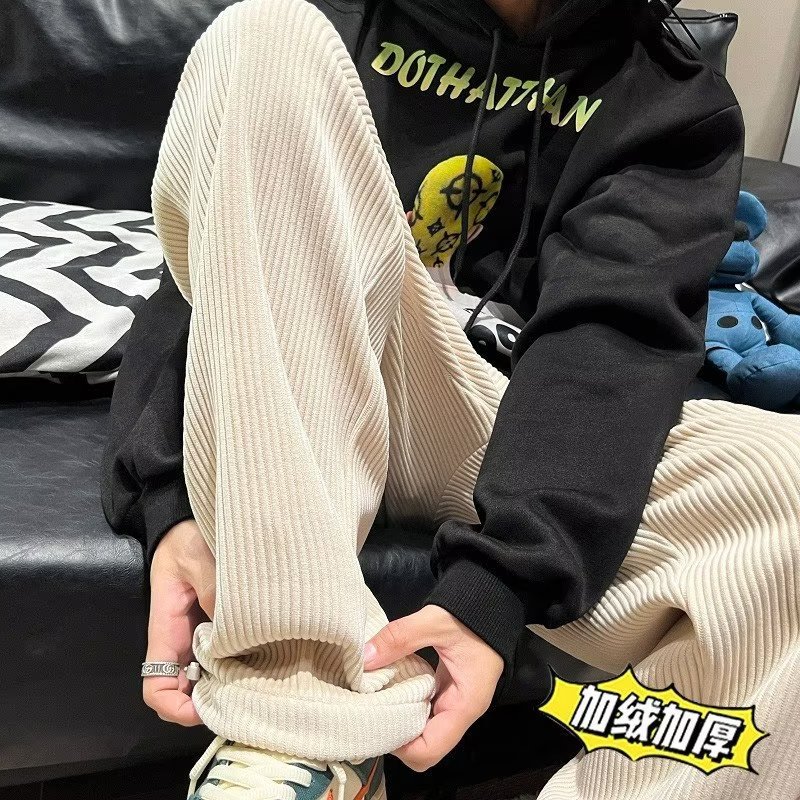 코듀로이 바지 남성 가을 패션 브랜드 수직 스타일 스트레이트 루즈 와이드 레그 바지 미국 빈티지 남성 바지 캐주얼 스포츠 바지스토어 가기
