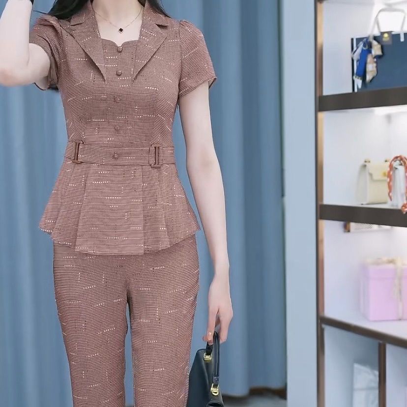 하이 엔드 비싼 담 우아한 투피스 세트 여성 2025 여름 새로운 스타일 서양식 슬리밍 레이디 유행 세트 여성