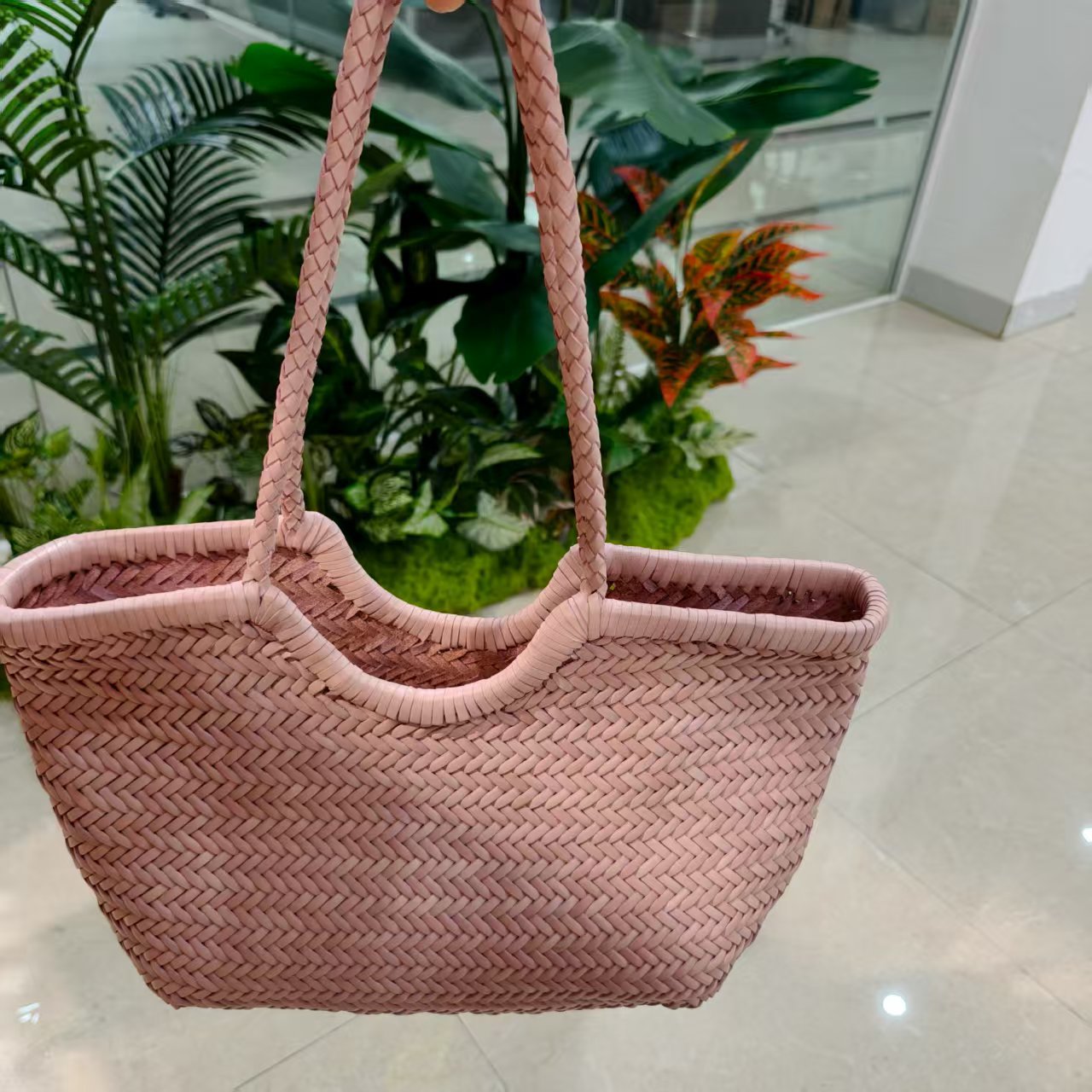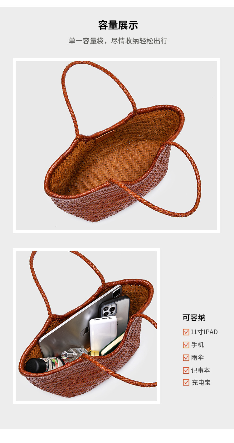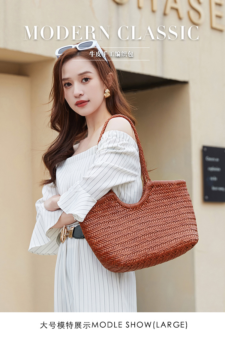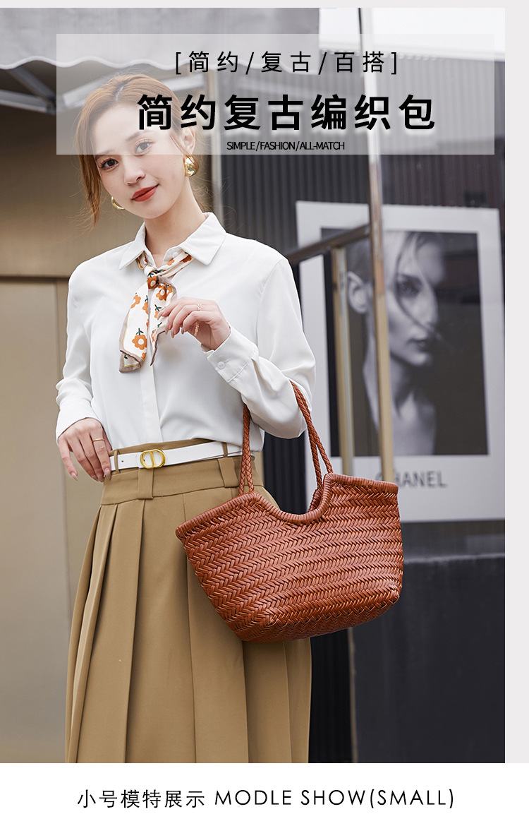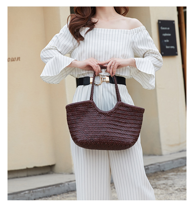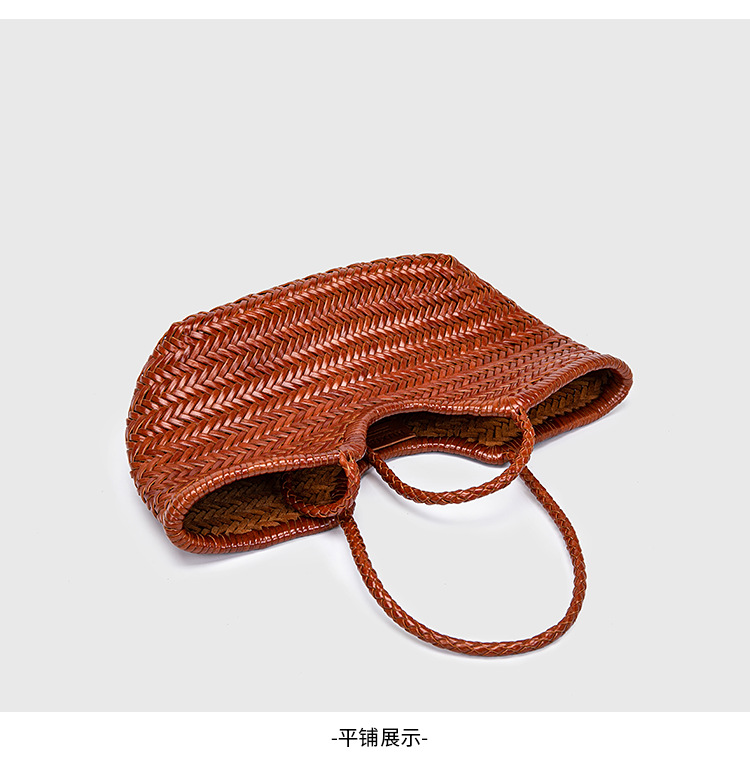 새로운 프랑스 스타일 가죽 짠 가방 레트로 탑 레이어 Cowhide 야채 바스켓 Ins 봄과 여름을위한 수제 토트 백 판매