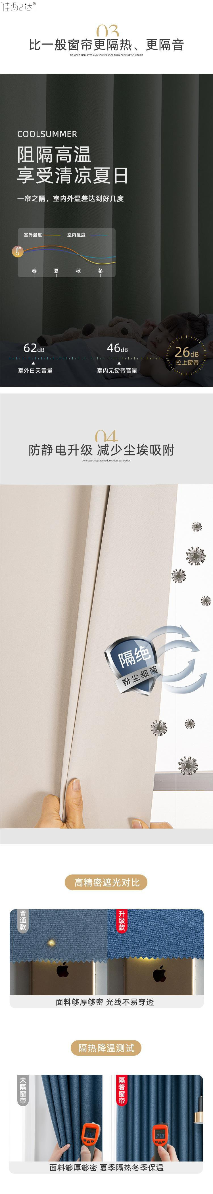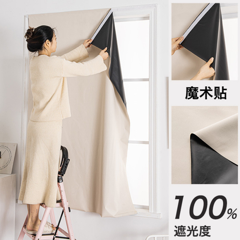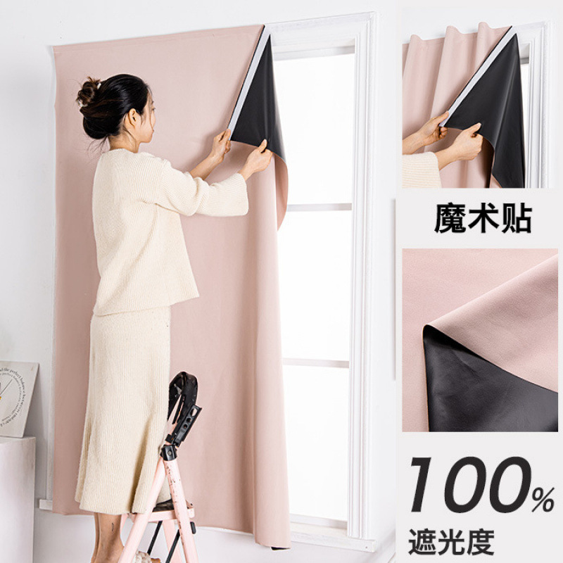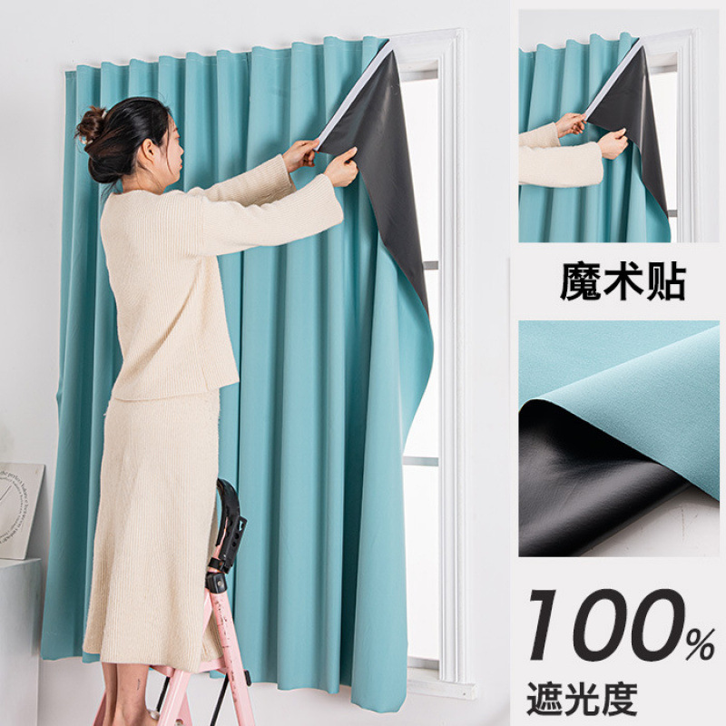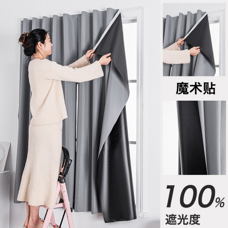 2024 새로운 전체 음영 커튼 원단 천공 벨크로 설치 완료-무료 침실 단색 햇빛 간단한 현대