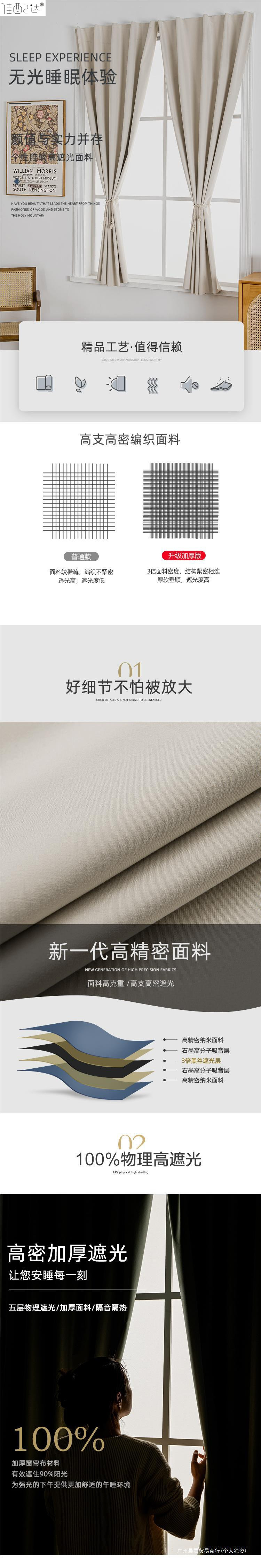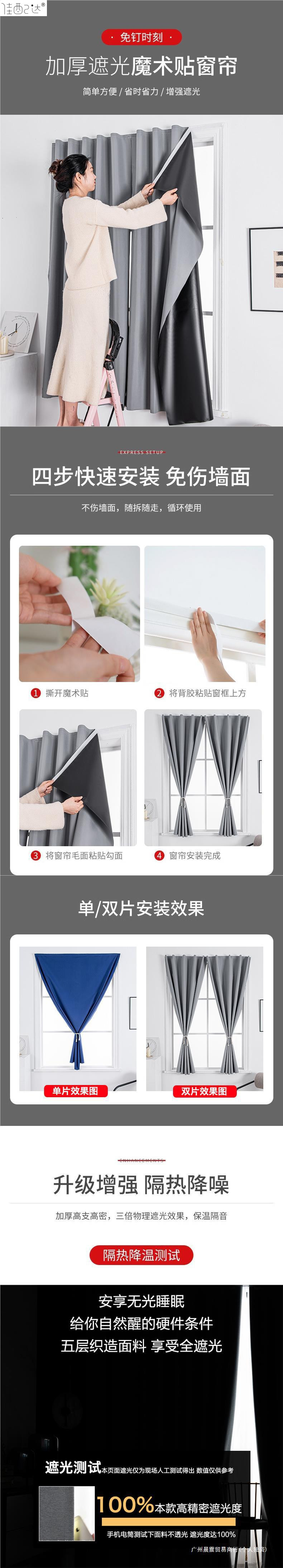 2024 새로운 전체 음영 커튼 원단 천공 벨크로 설치 완료-무료 침실 단색 햇빛 간단한 현대스토어 가기