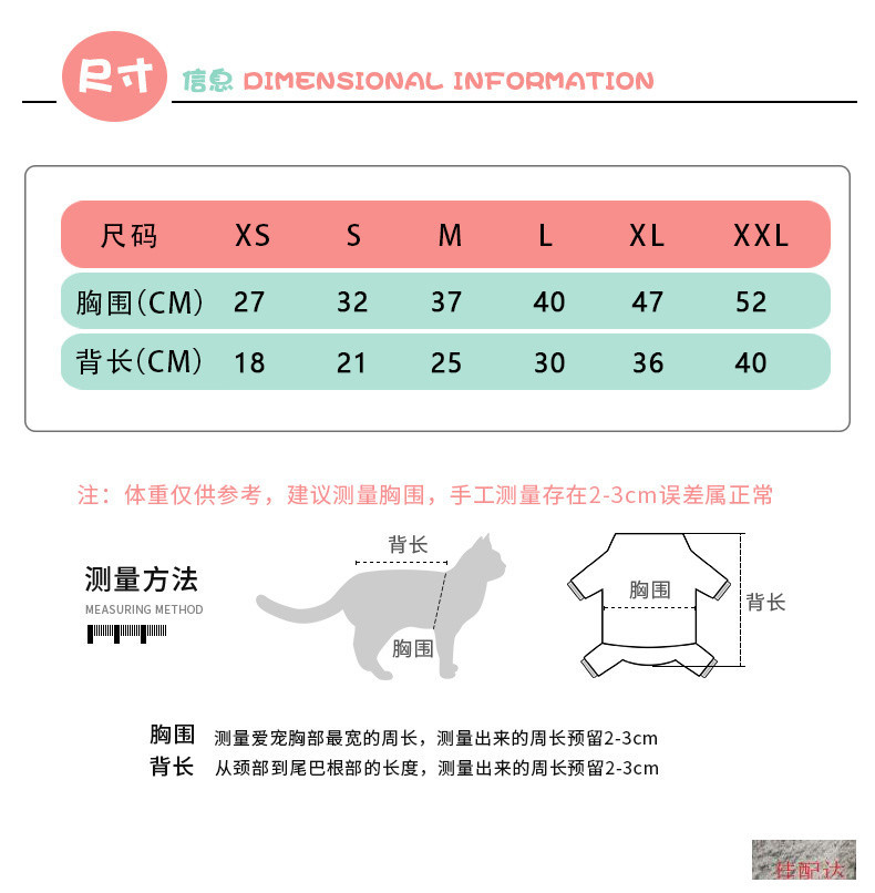 • XS [권장 1~ 1.0kg 실제 가슴과 등 길이에 따라 다름]
