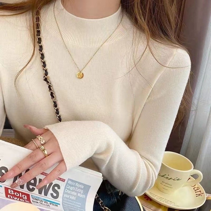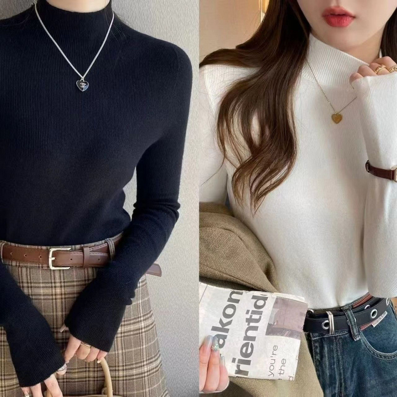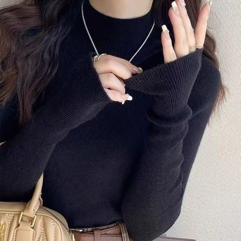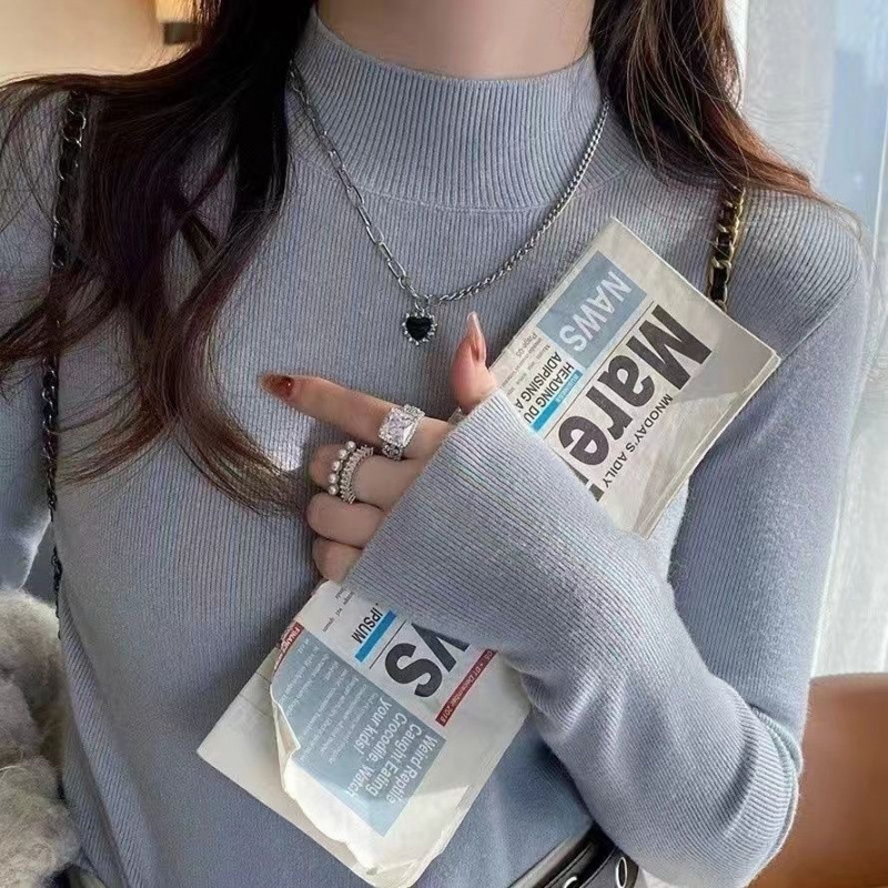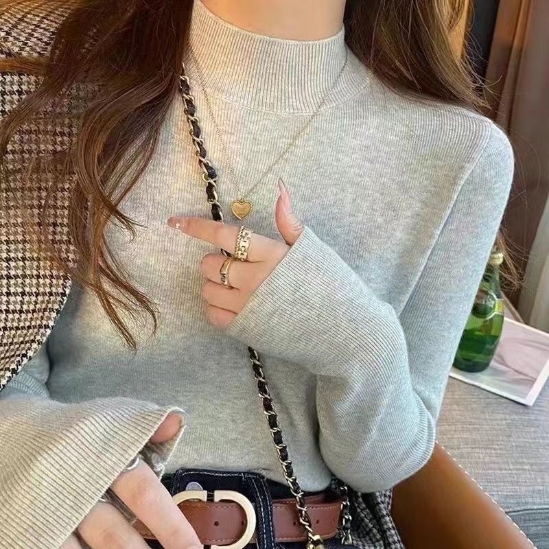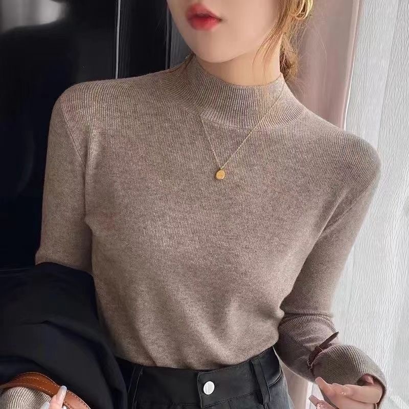반 터틀넥 병 가을과 겨울 슬림 핏 슬리밍 스웨터 2024 서양식 새로운 솔리드 컬러 올 매치 미트 커버 탑스토어 가기