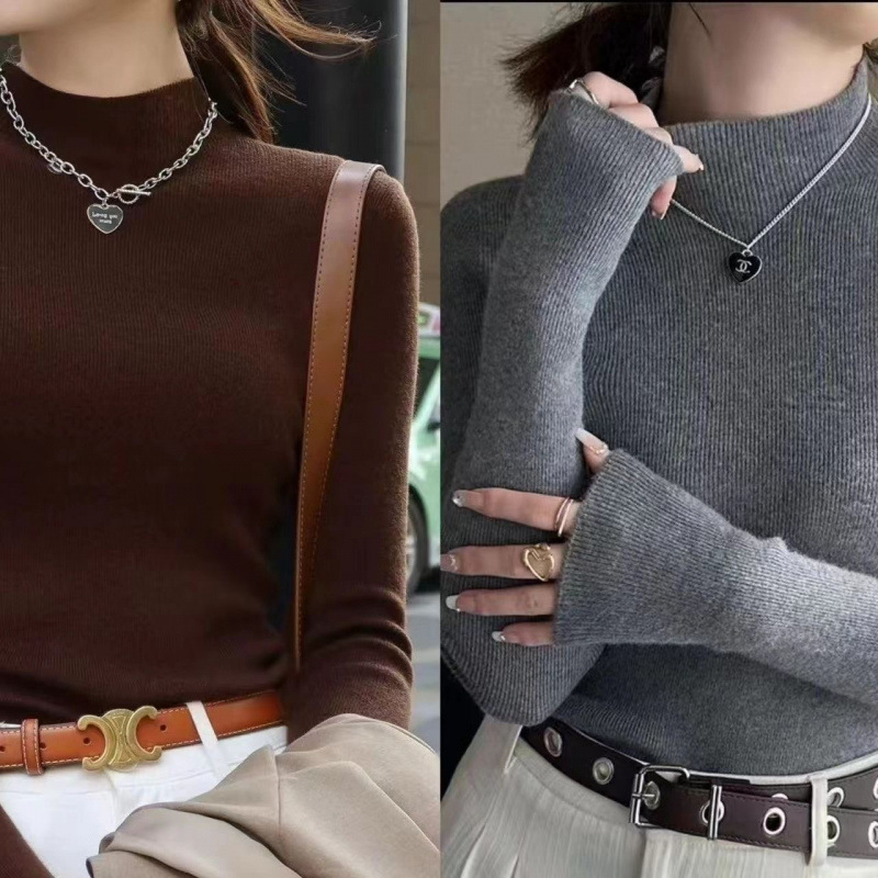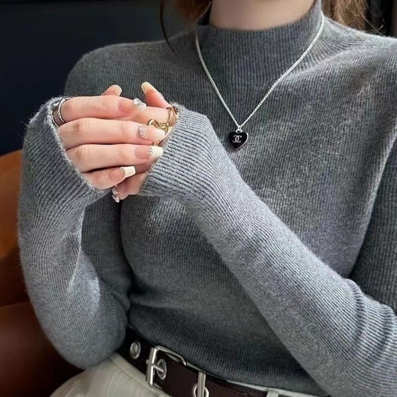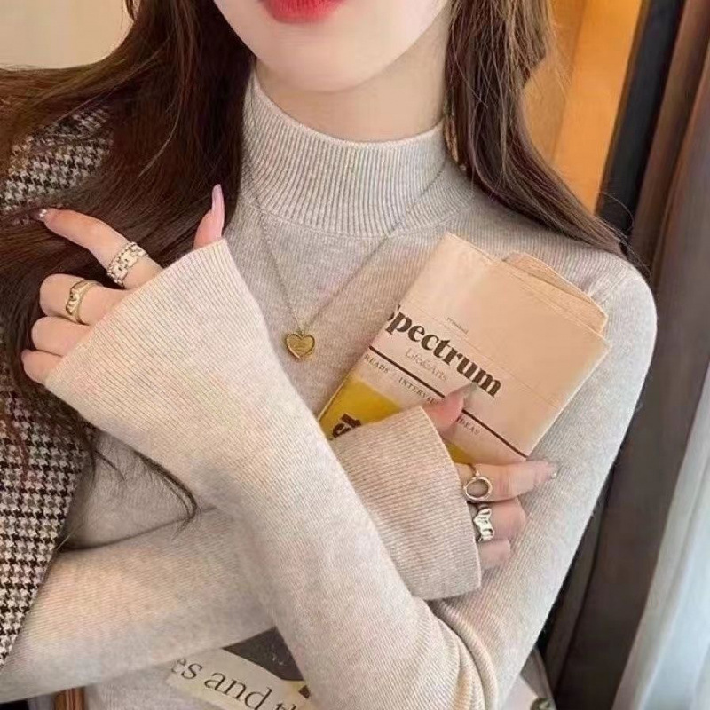 반 터틀넥 병 가을과 겨울 슬림 핏 슬리밍 스웨터 2024 서양식 새로운 솔리드 컬러 올 매치 미트 커버 탑