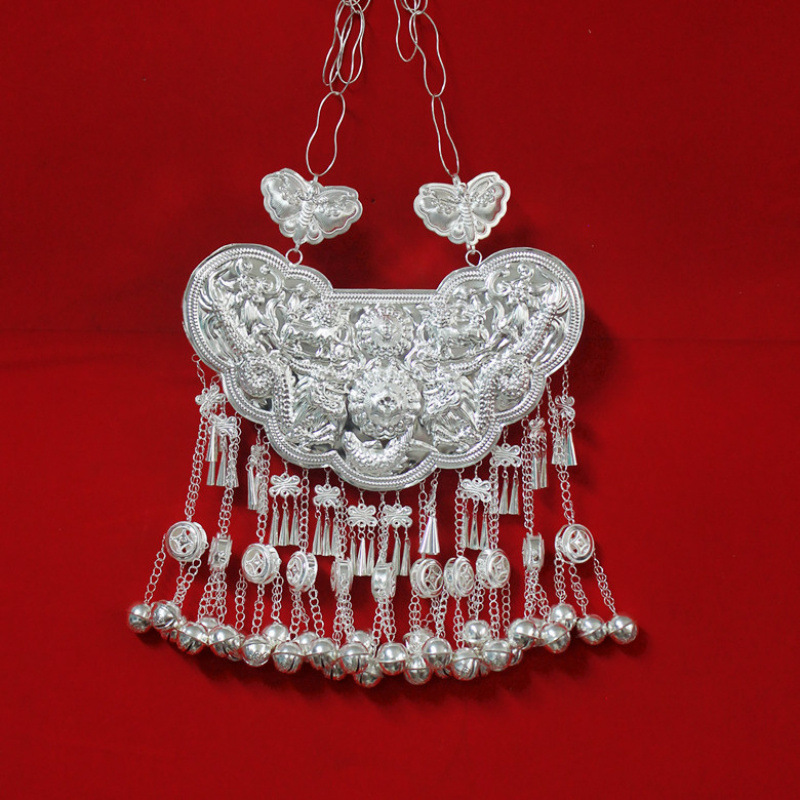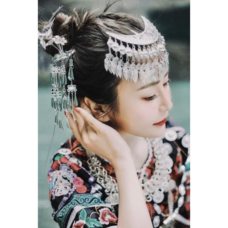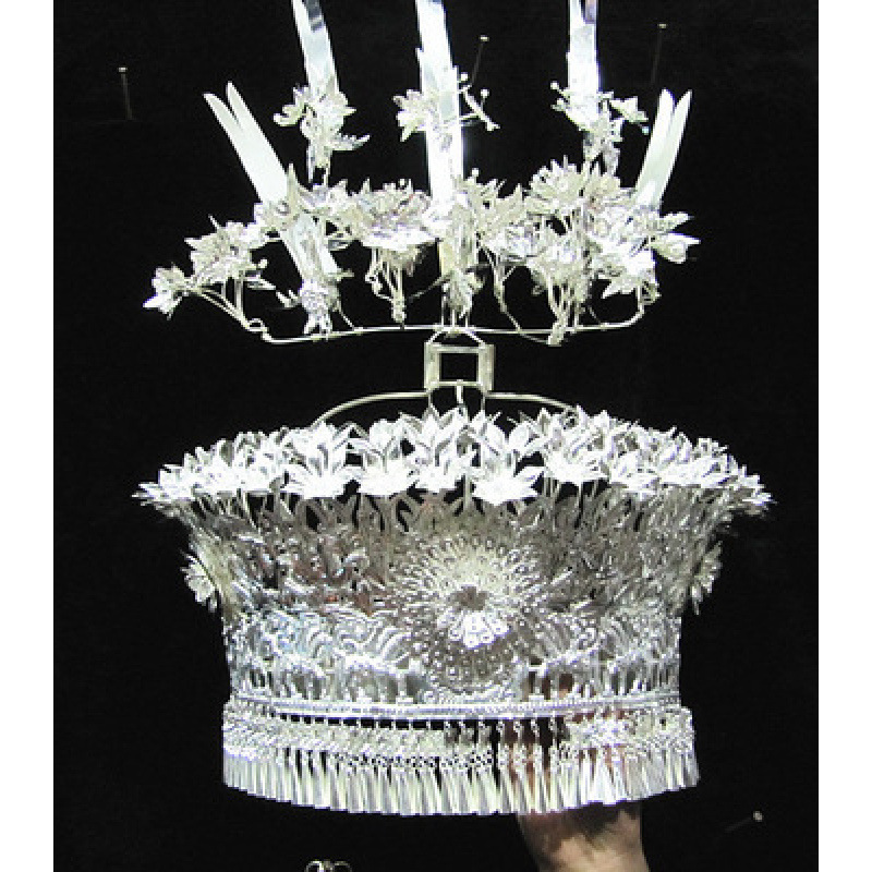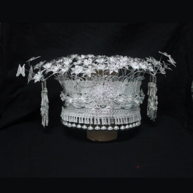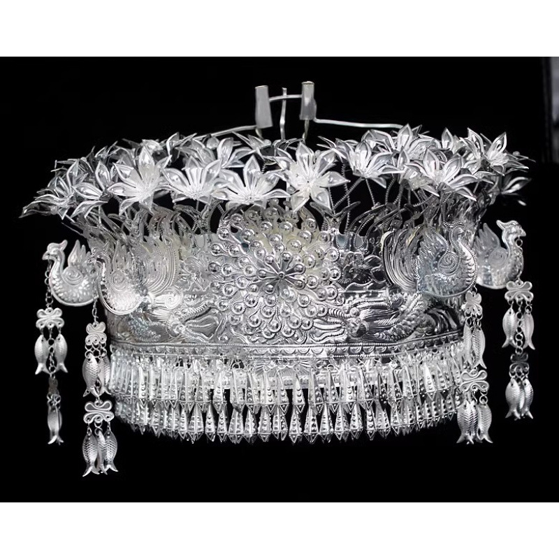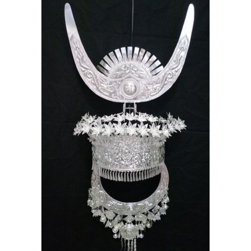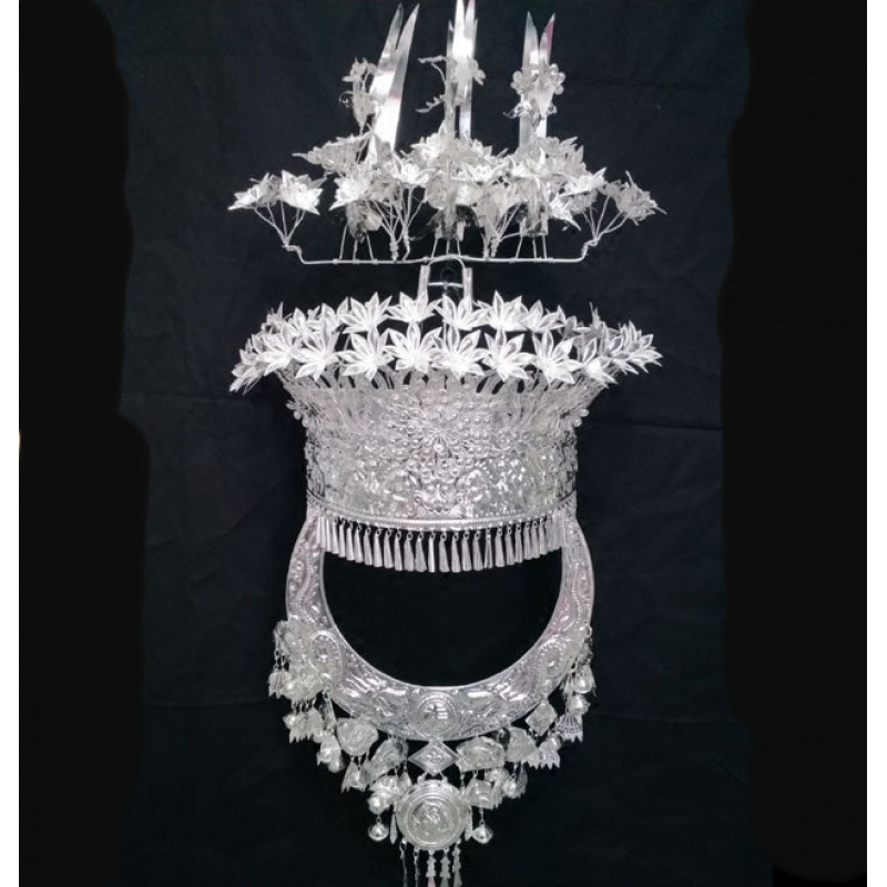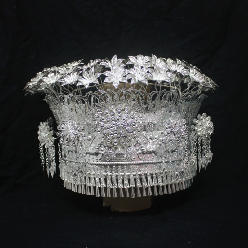 Guizhou 소수 실버 액세서리 공연 의류 액세서리 Miao 여성 축제 착용 원피스 모자 세트