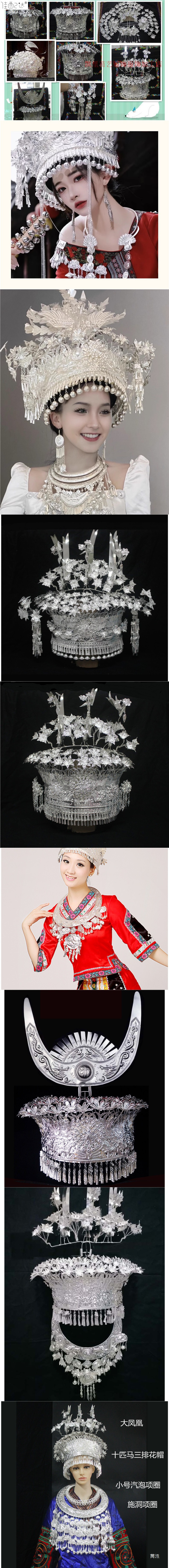 Guizhou 소수 실버 액세서리 공연 의류 액세서리 Miao 여성 축제 착용 원피스 모자 세트스토어 가기