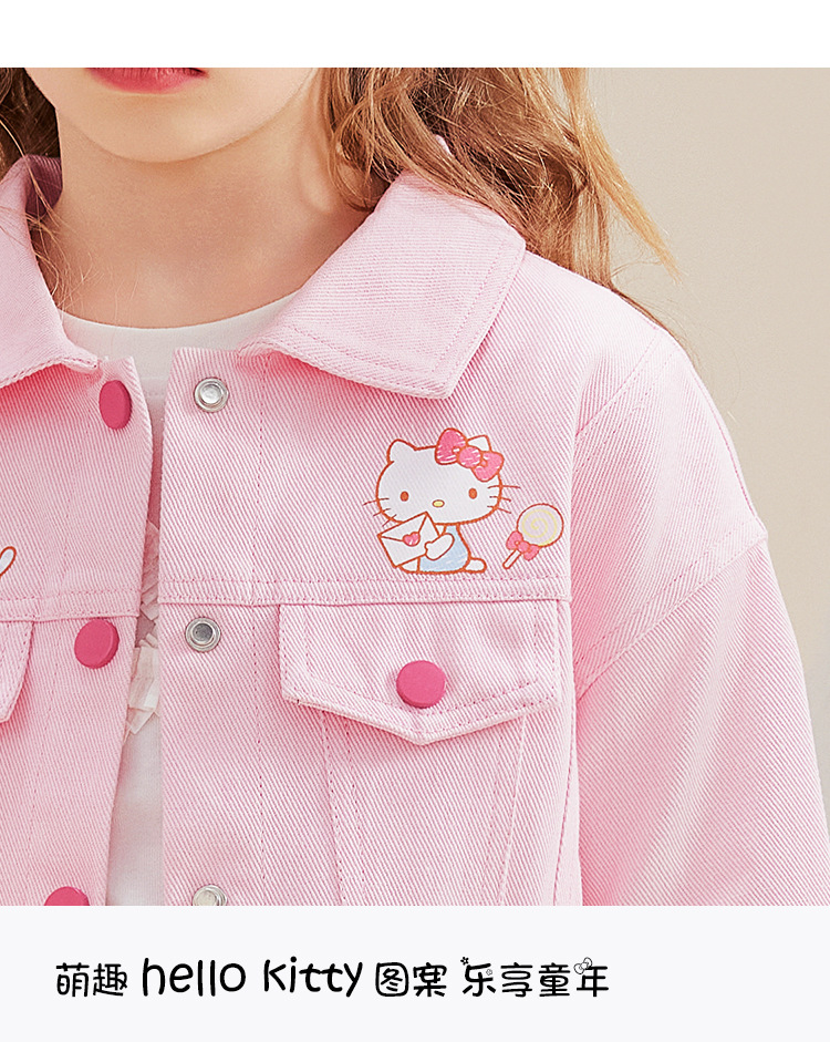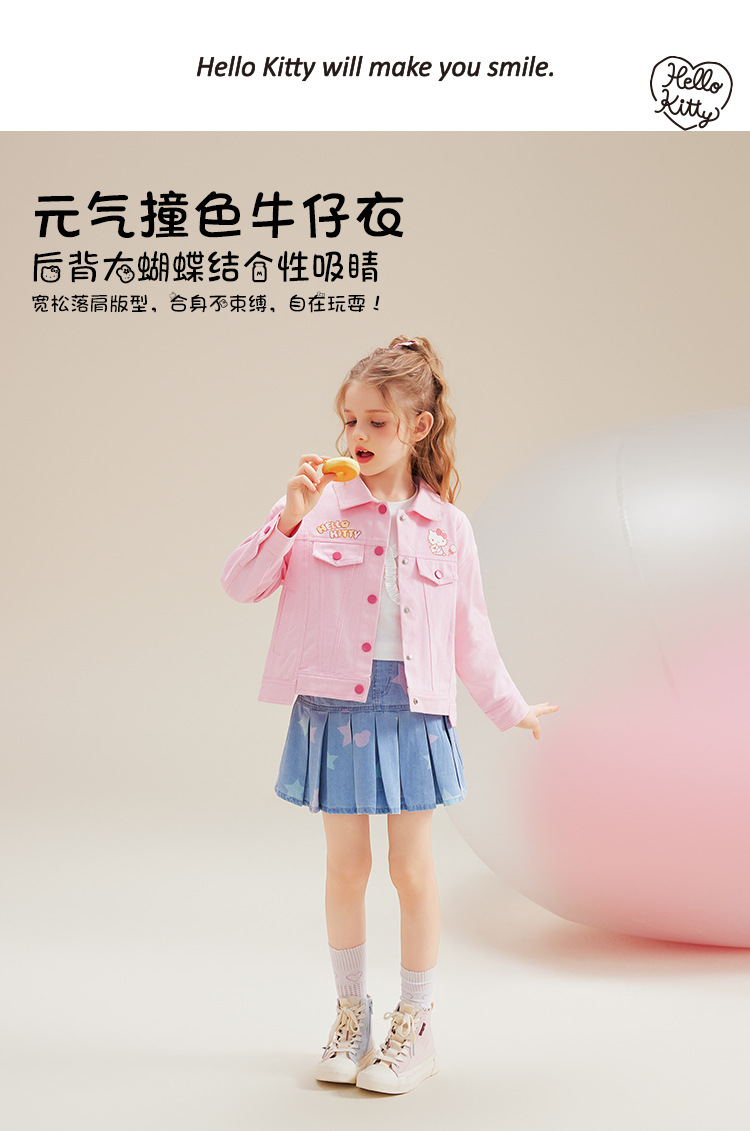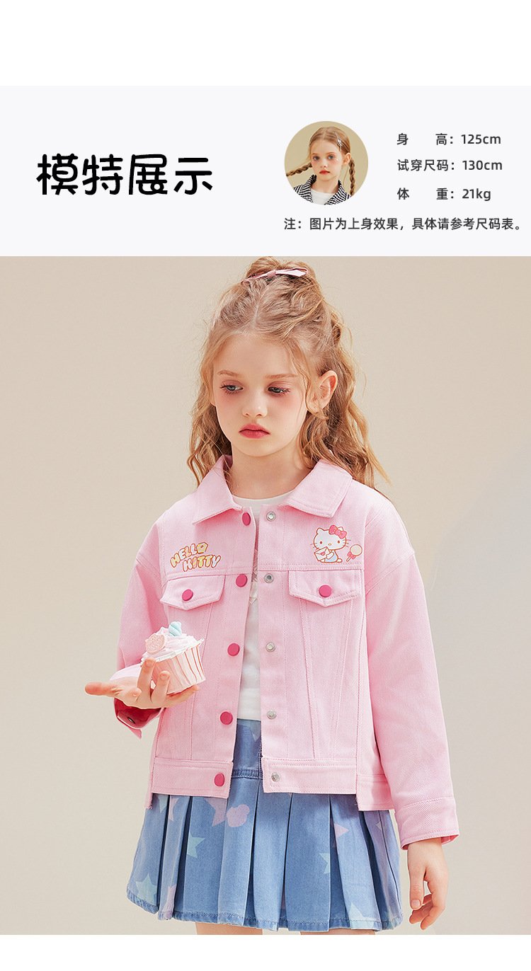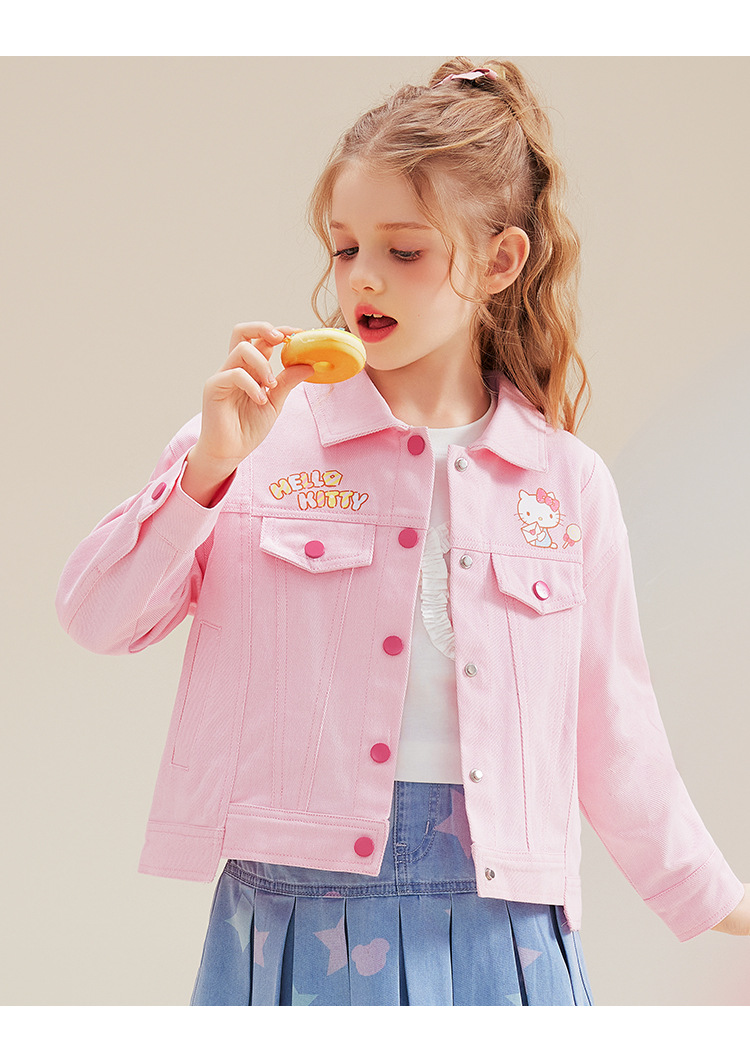HelloKitt Girls 가을 핑크 데님 재킷 새로운 중대형 아동복 뒷면 큰 리본 코트스토어 가기