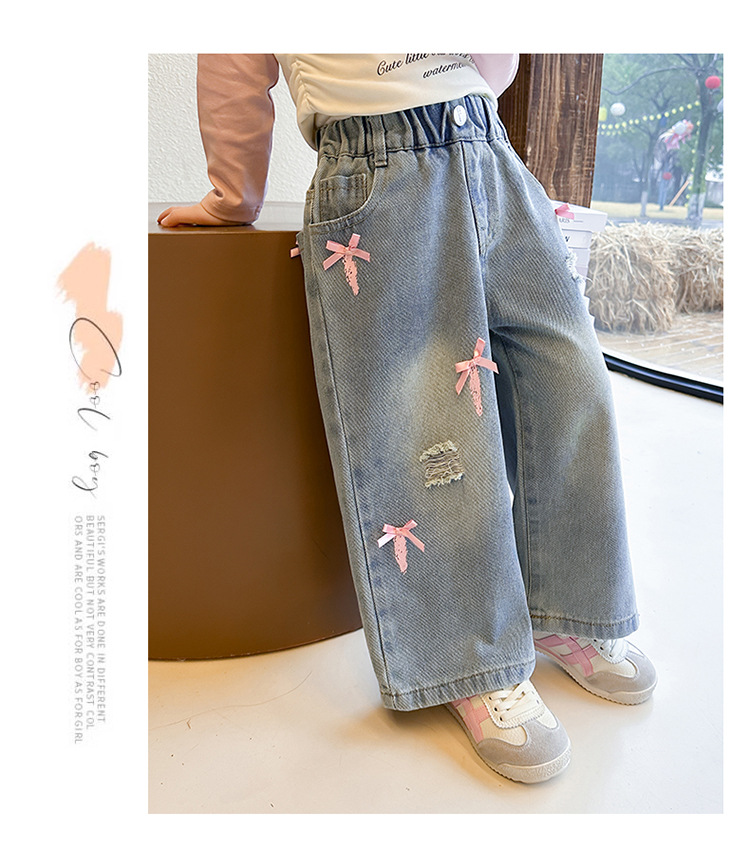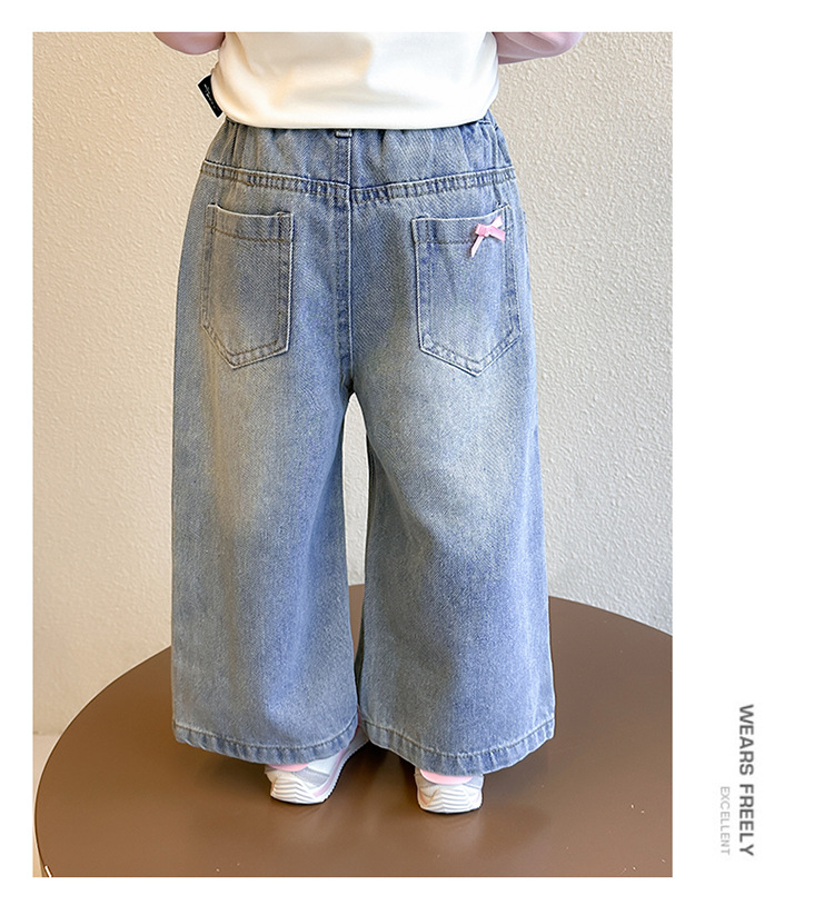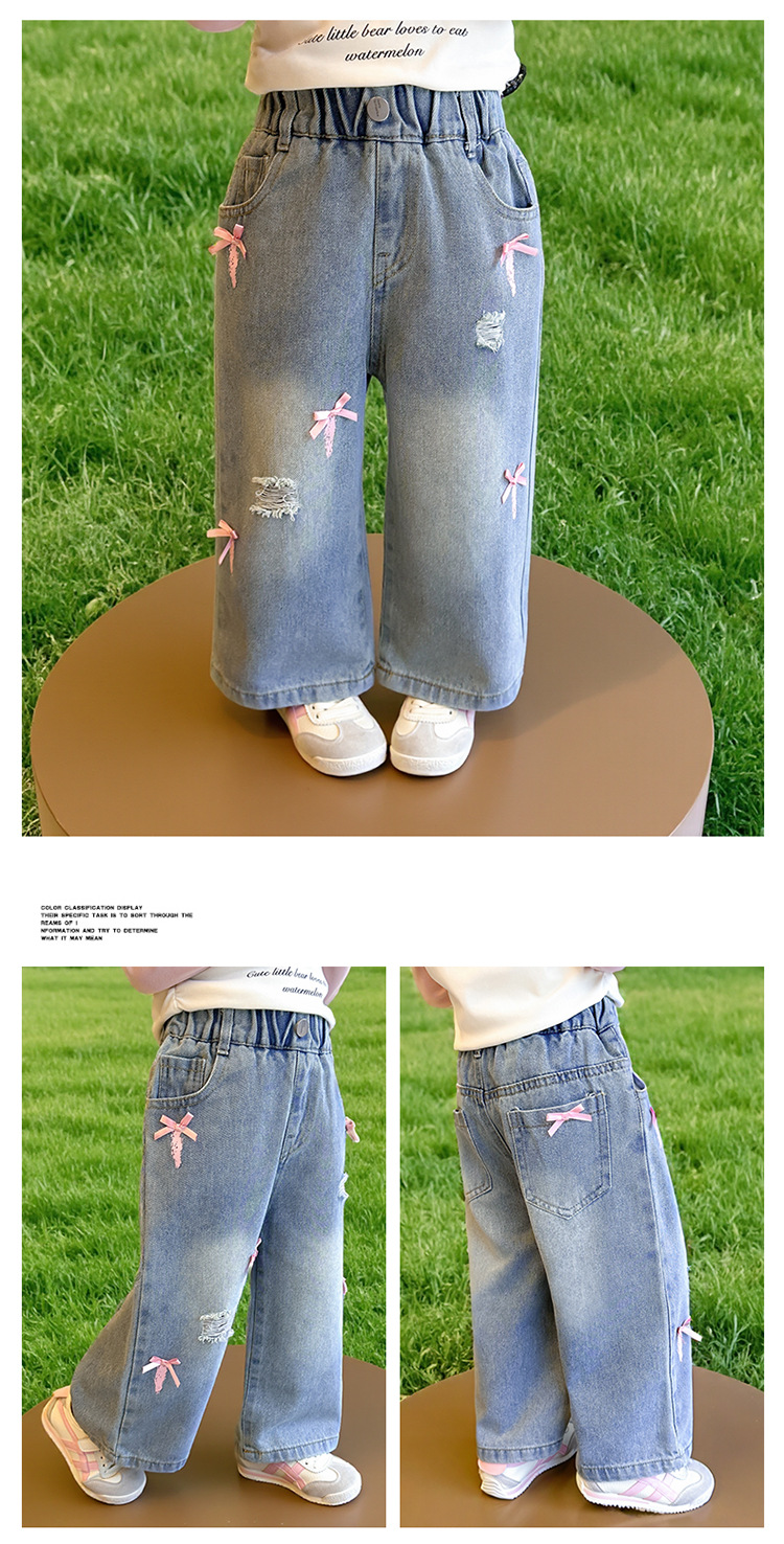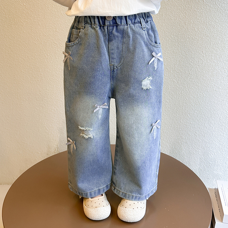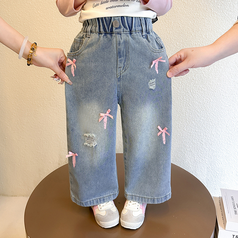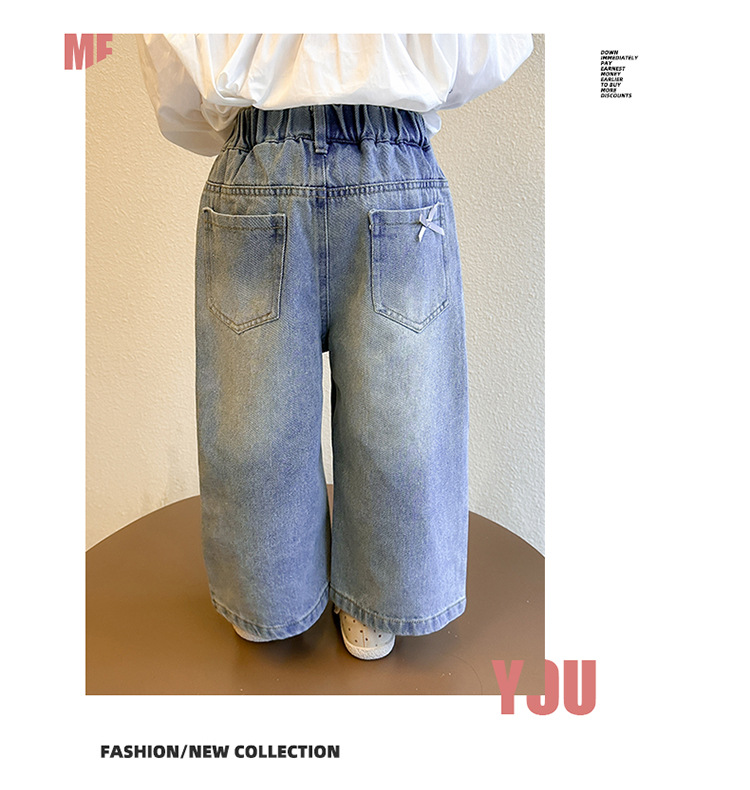 소녀 활 청바지 2025 봄과 가을 새로운 어린이 한국 스타일 유행 아기 스트레이트 바지 캐주얼 바지스토어 가기