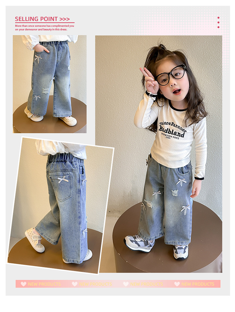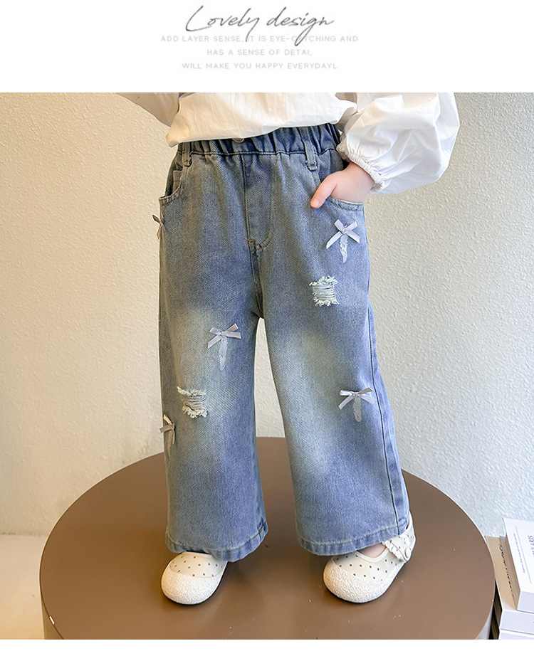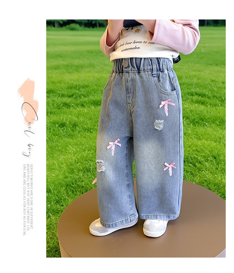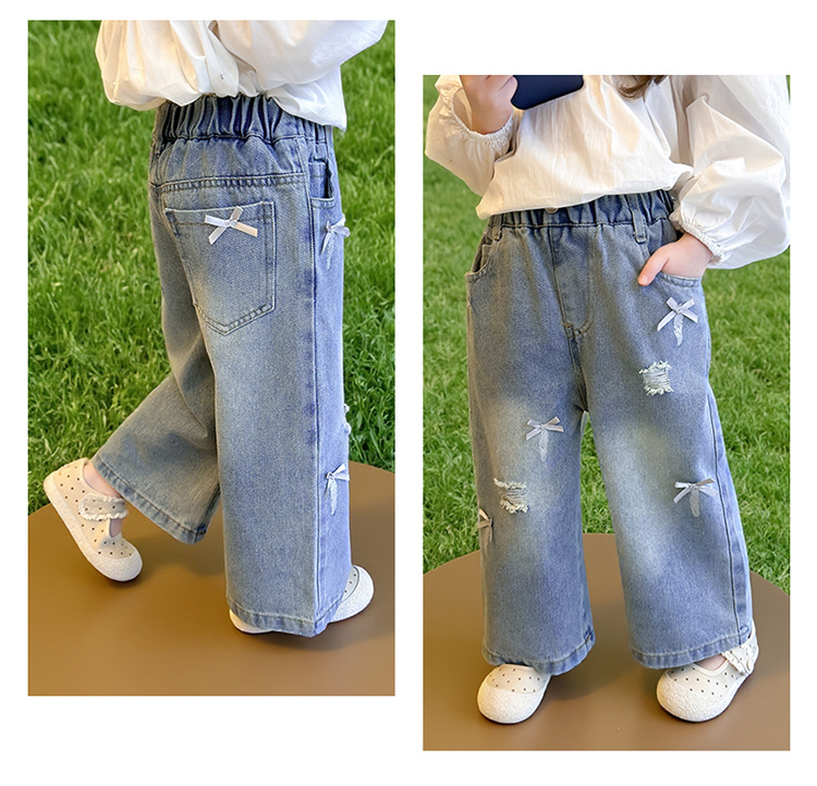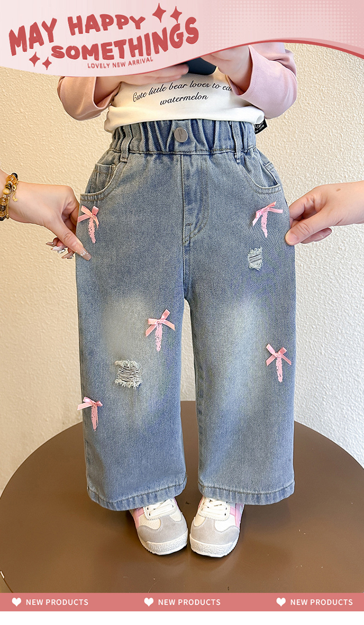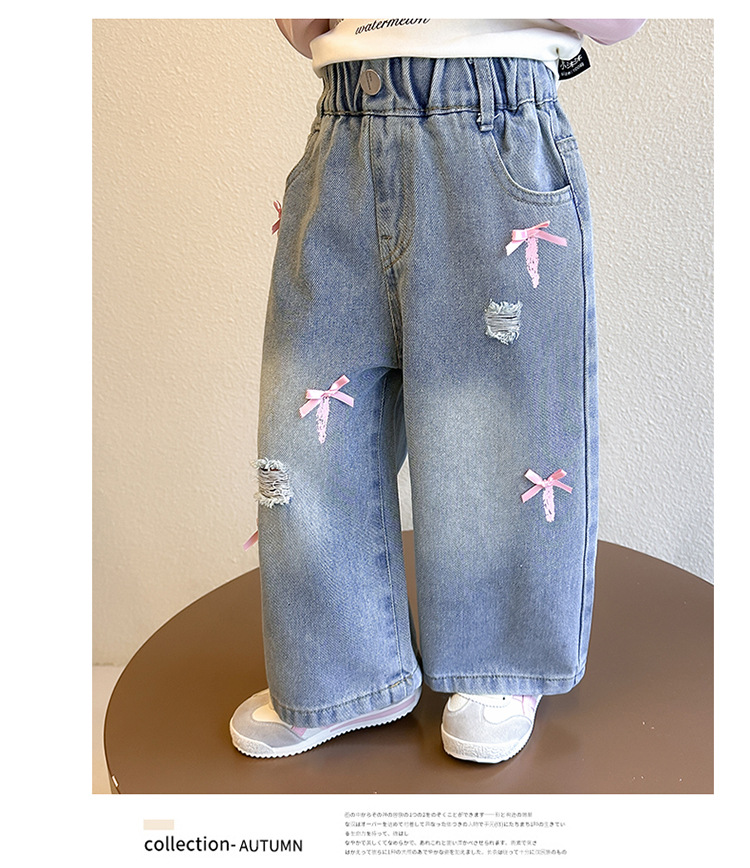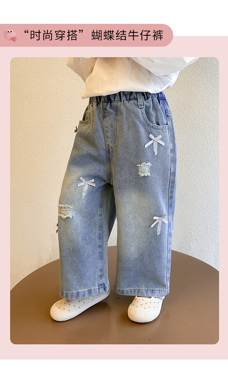 소녀 활 청바지 2025 봄과 가을 새로운 어린이 한국 스타일 유행 아기 스트레이트 바지 캐주얼 바지스토어 가기