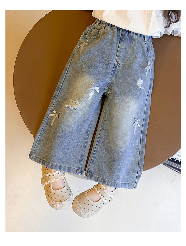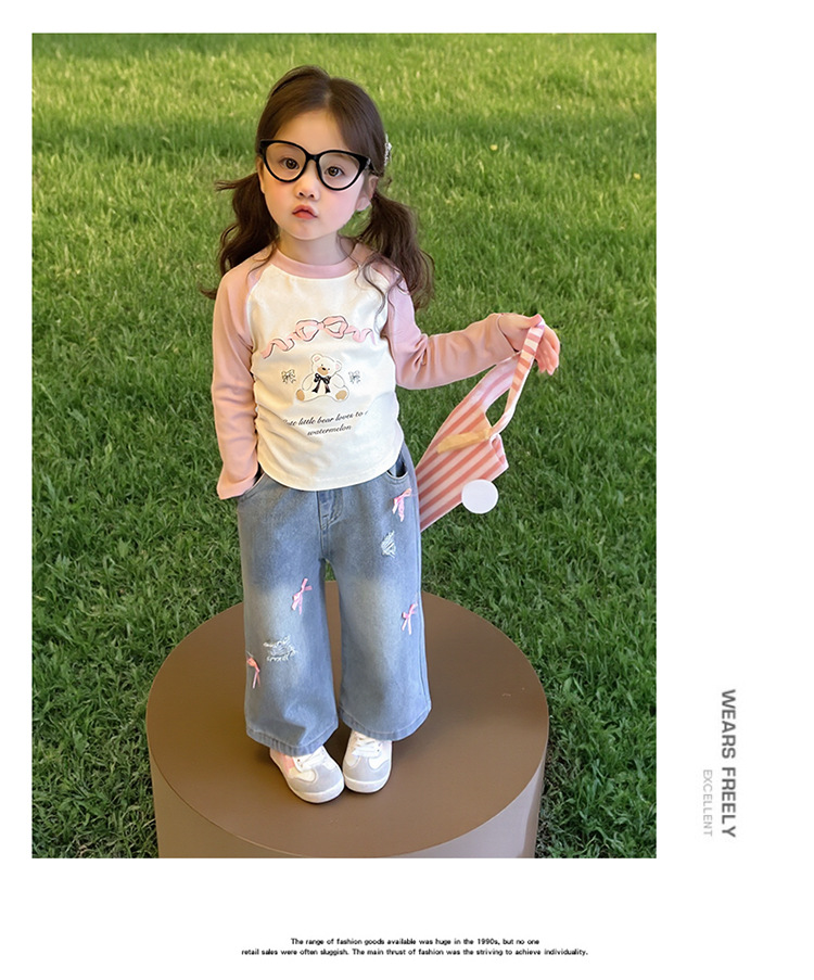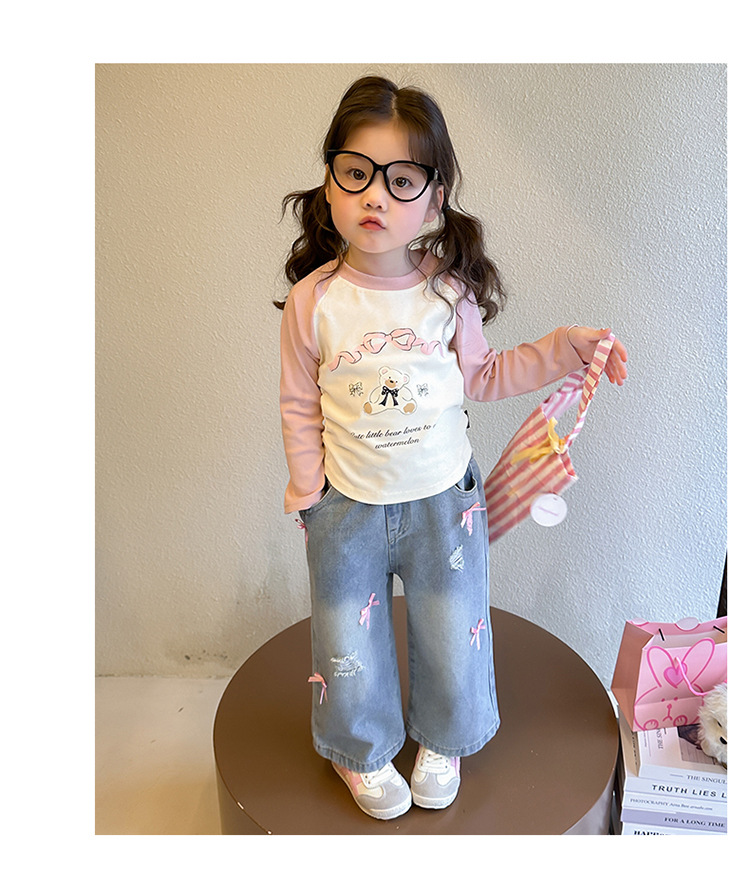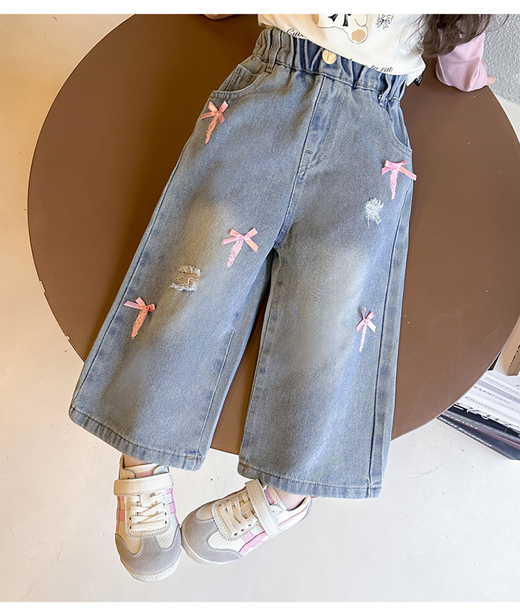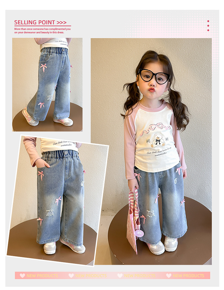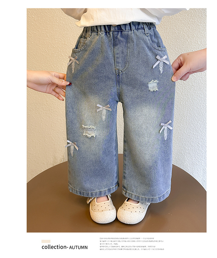소녀 활 청바지 2025 봄과 가을 새로운 어린이 한국 스타일 유행 아기 스트레이트 바지 캐주얼 바지스토어 가기