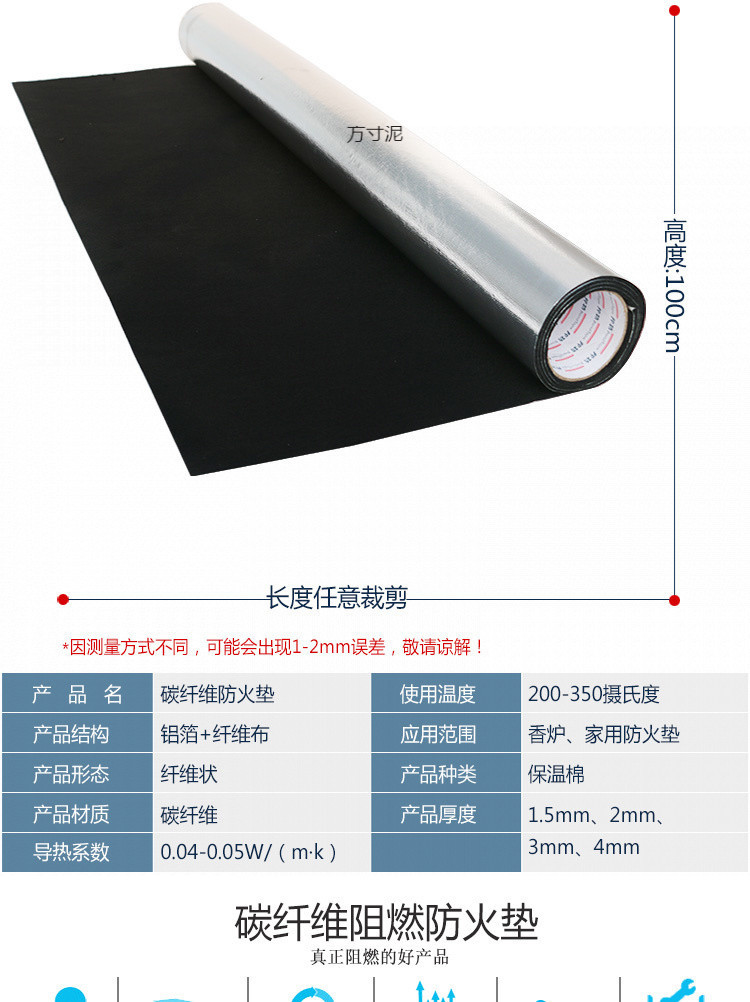 탄소 섬유 내화 패드 향 버너 향 박스 내화 면 고온 방지 단열 패드면 자체 접착 내화 단열면스토어 가기