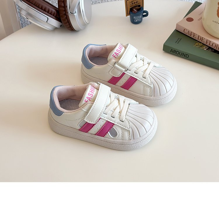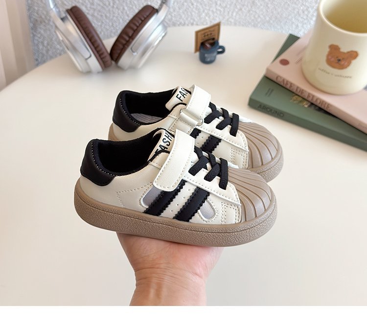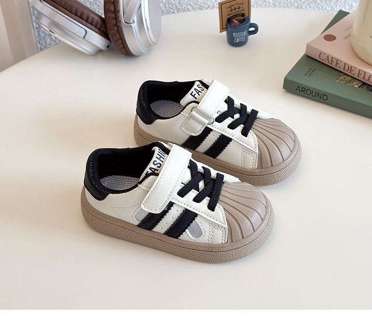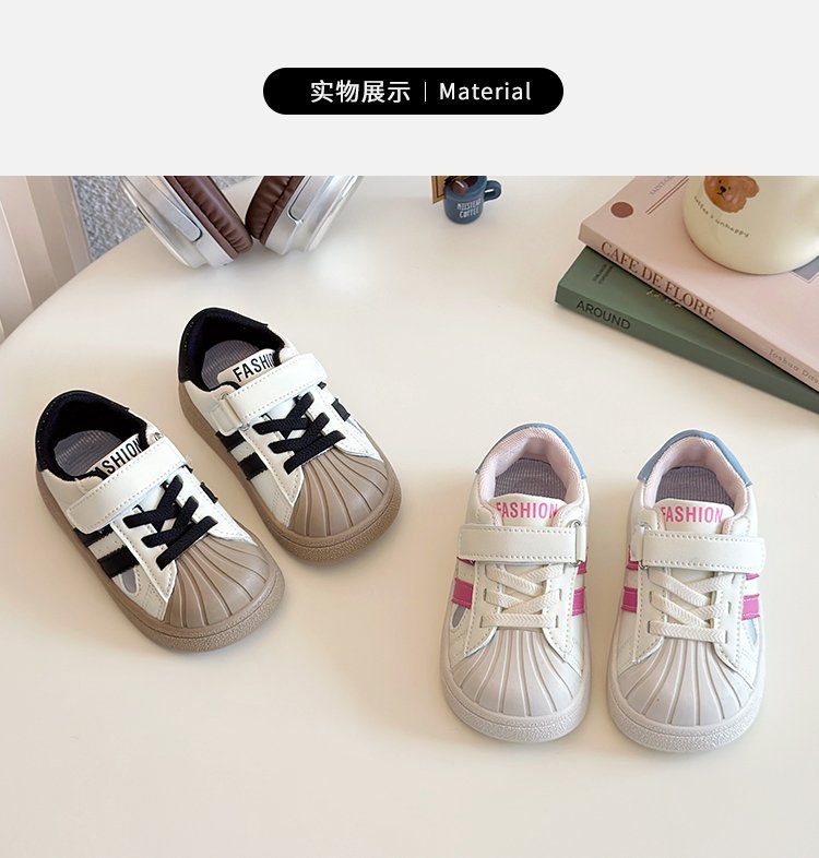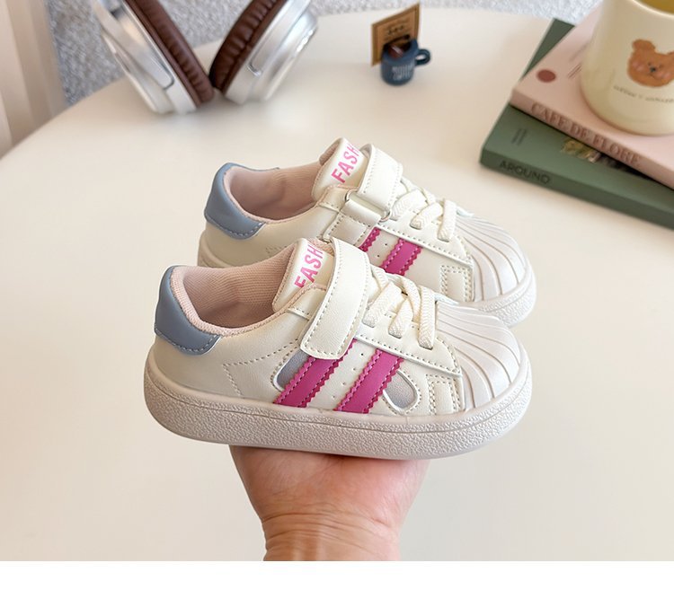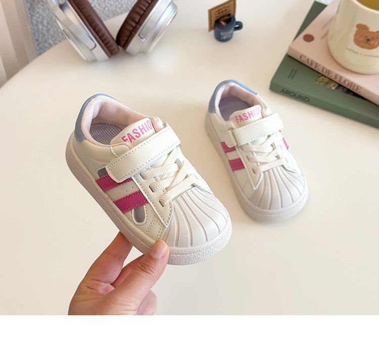 어린이 운동화 2025 새로운 봄과 가을 아기 신발 쉘 헤드 보드 신발 어린이 흰색 신발 부드러운 바닥 소녀 신발
