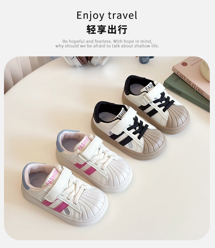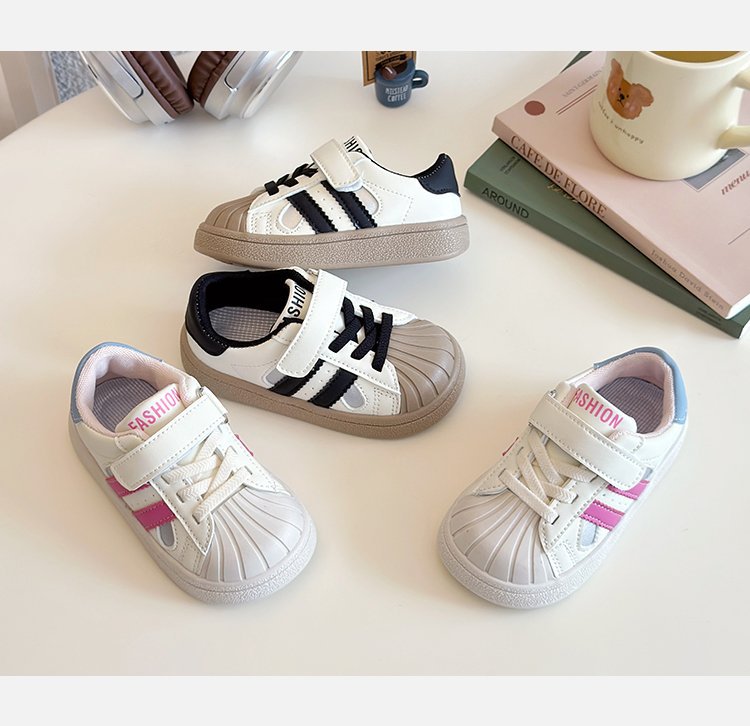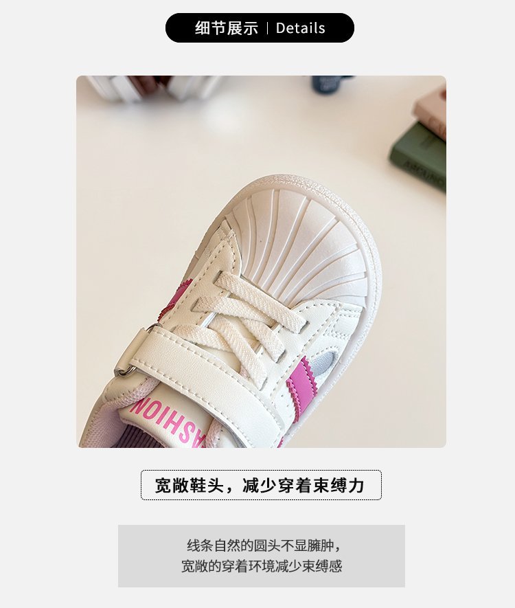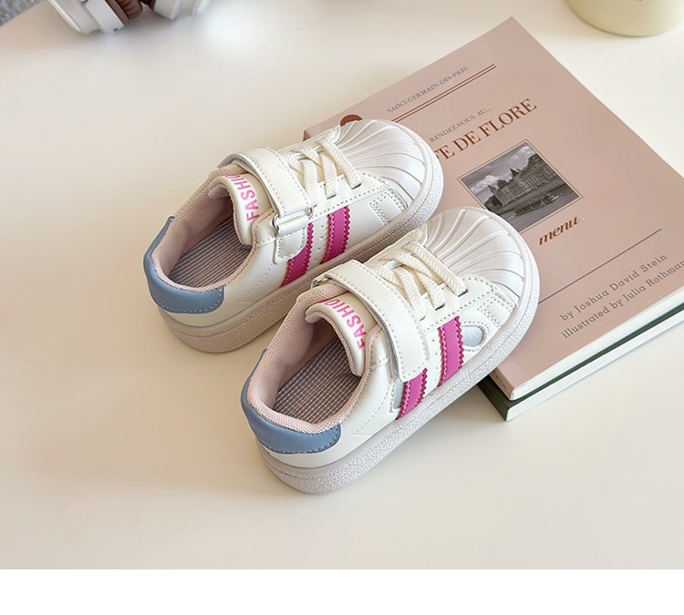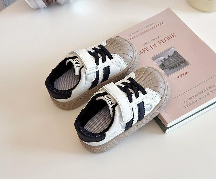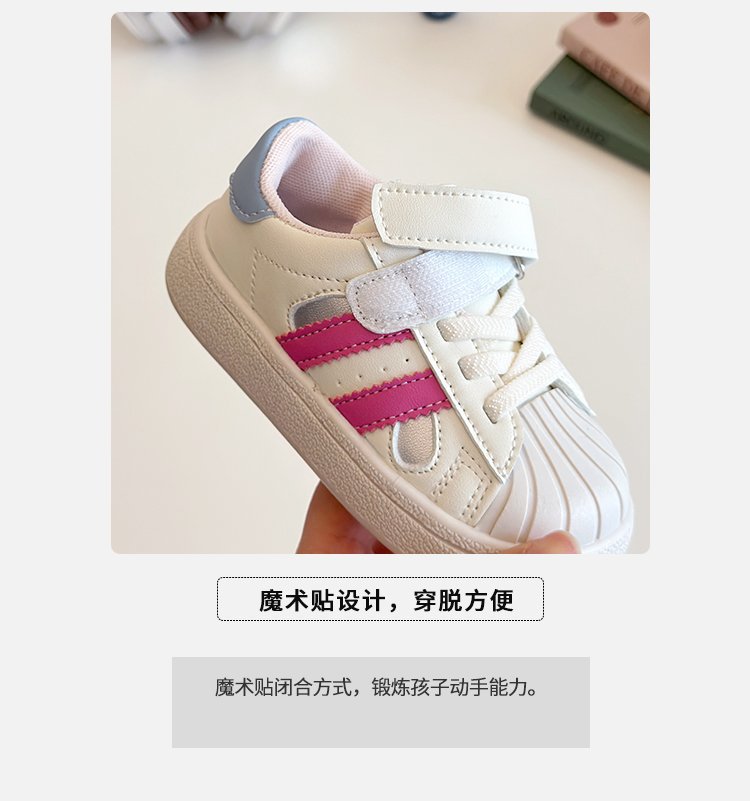 어린이 운동화 2025 새로운 봄과 가을 아기 신발 쉘 헤드 보드 신발 어린이 흰색 신발 부드러운 바닥 소녀 신발