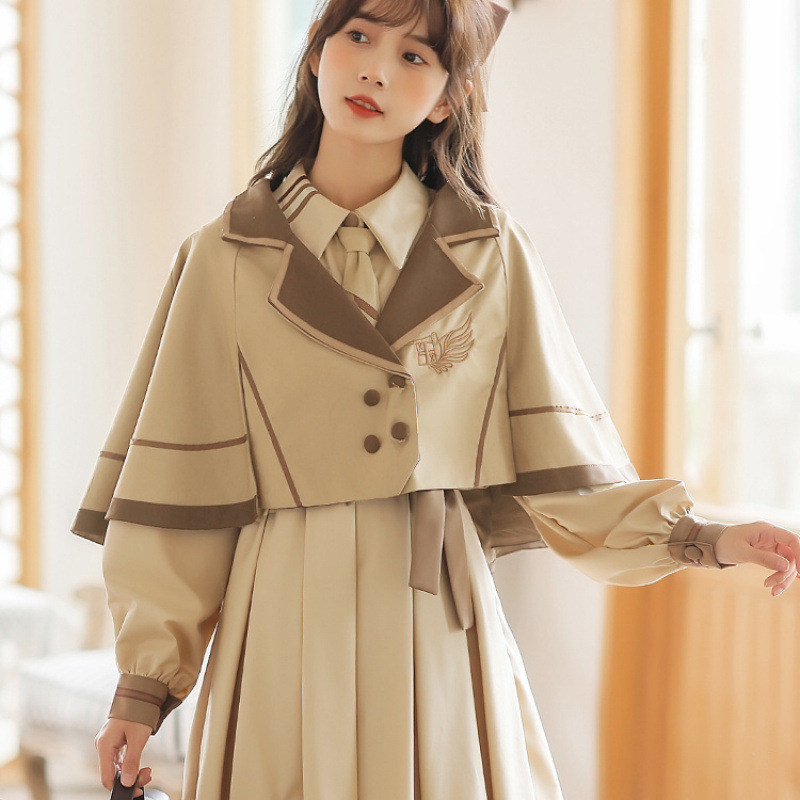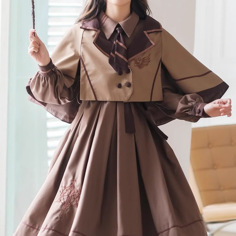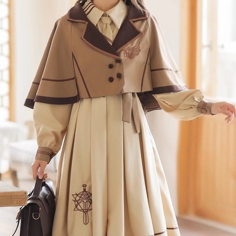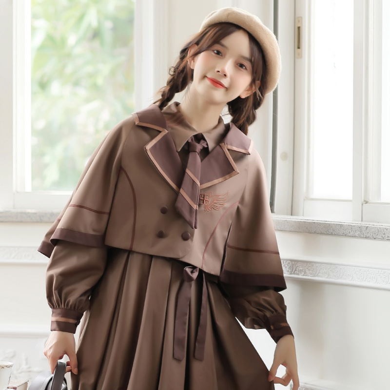• 긴팔 브라운 스커트 + 브라운 케이프 슈트