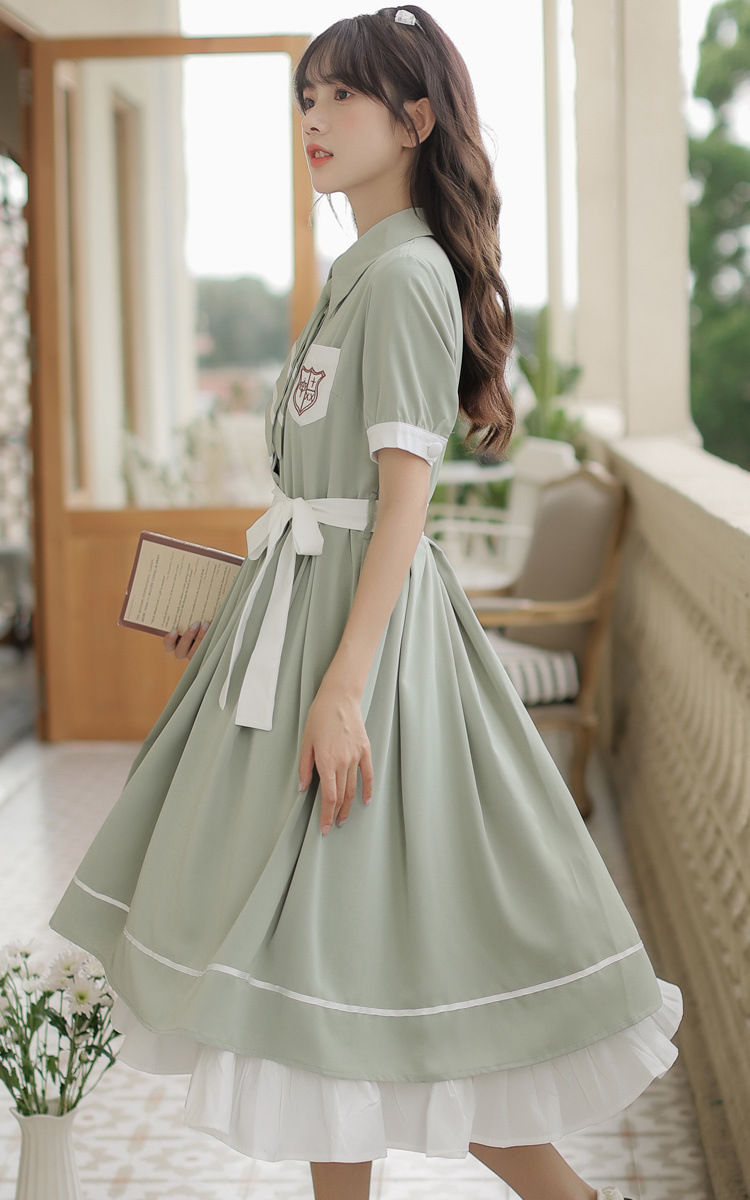 2024 여름 새로운 프랑스 복고풍 독특한 디자인 원피스 여성의 우아한 허리 슬리밍 스커트 학생스토어 가기