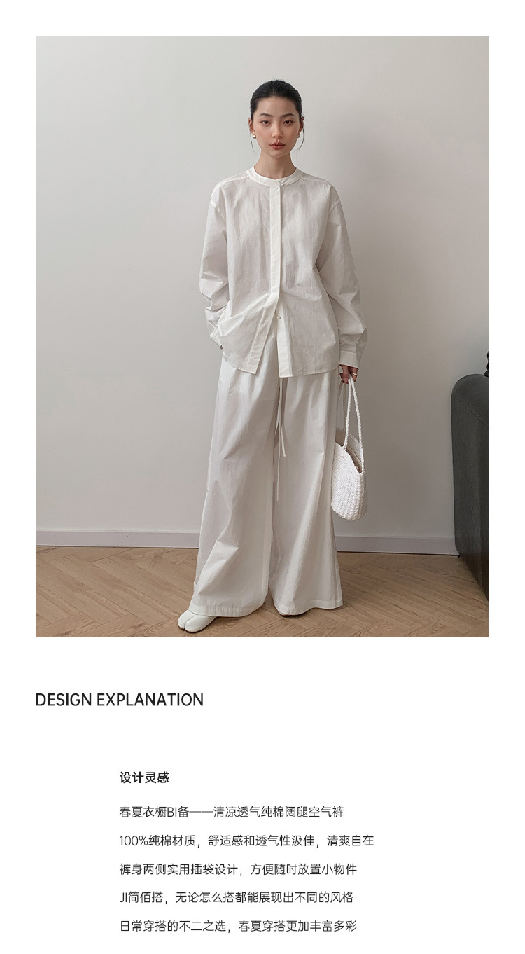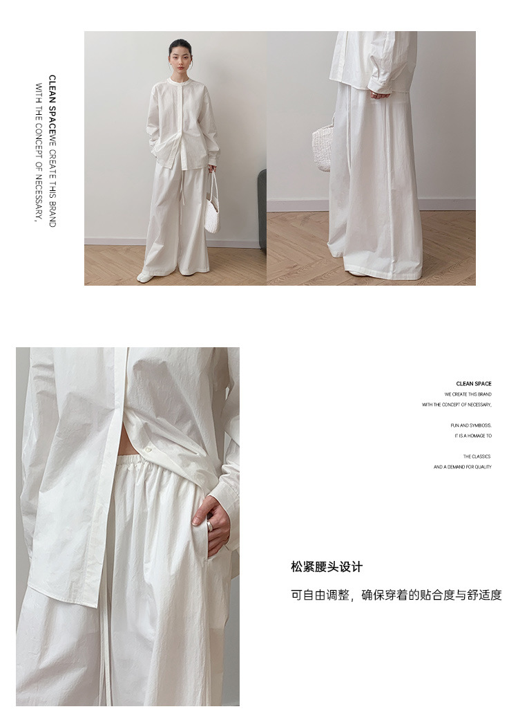 CLEAN SPACE 통기성 면 넓은 다리 공기 바지 2025 13 라인 간단한 높은 허리 캐주얼 바지 53239