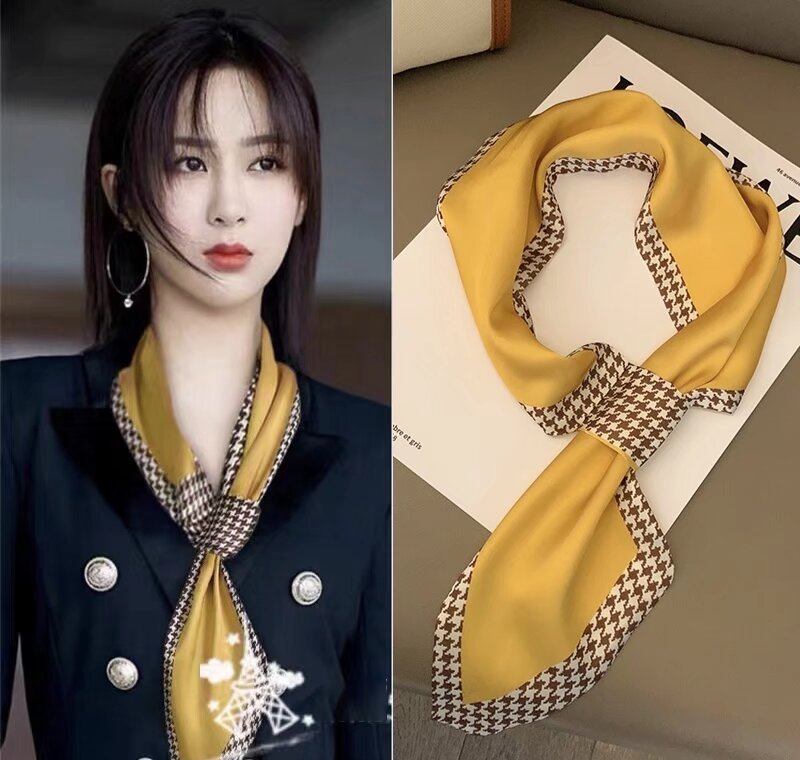게으른 긴 작은 실크 스카프 얇은 따뜻한 하이 엔드 여성 패션 올 매치 여성 목 보호 세트 일치하는 셔츠 스카프스토어 가기