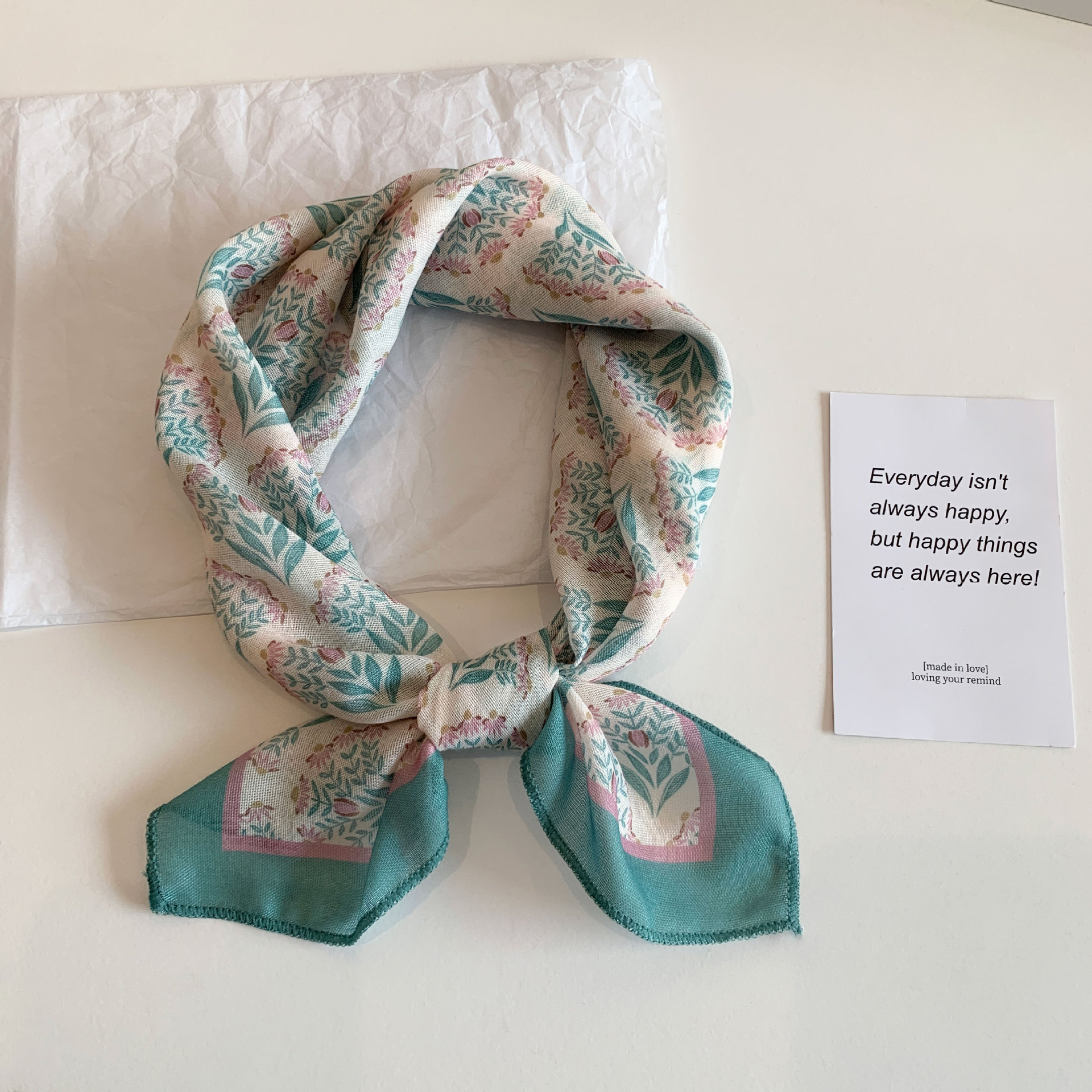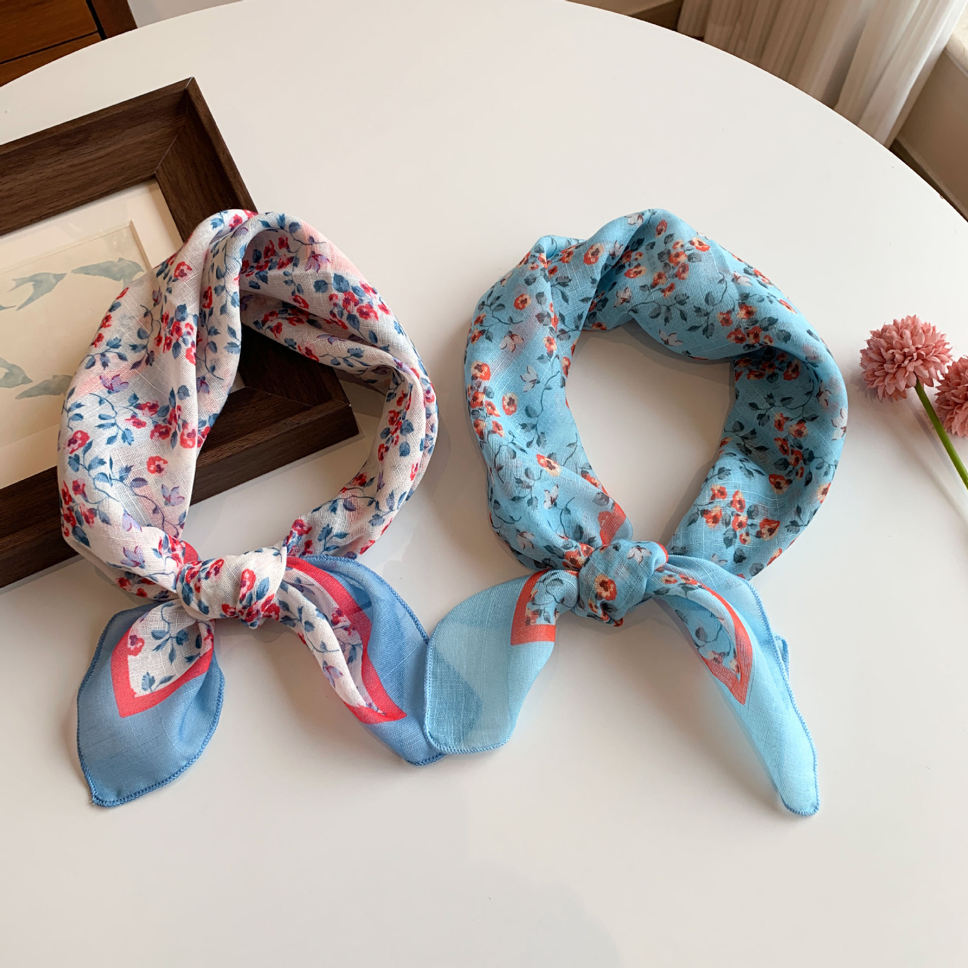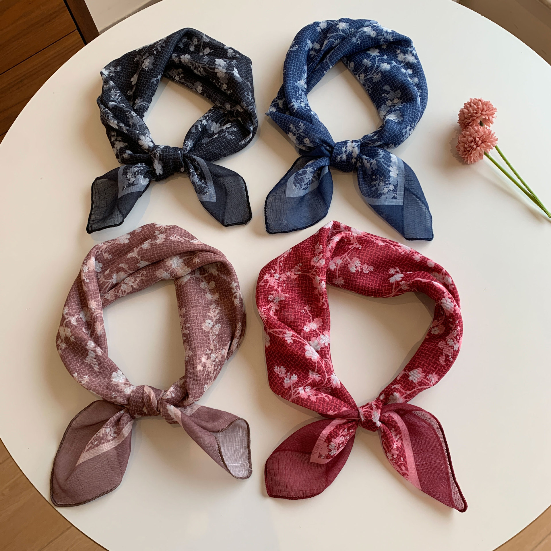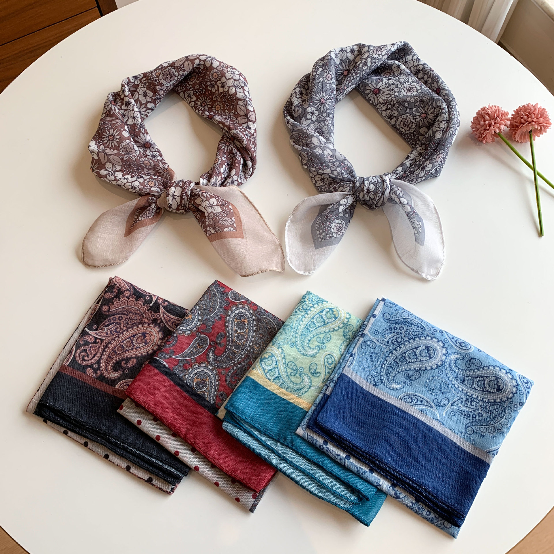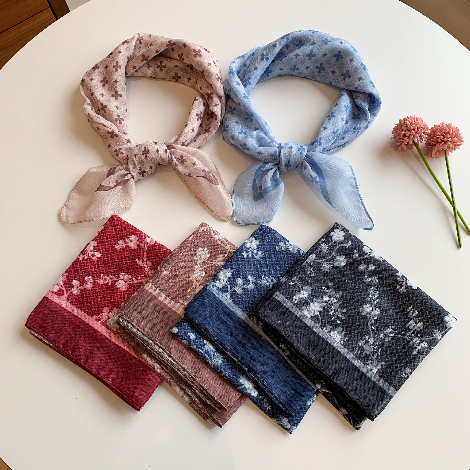 58 면 및 리넨 작은 광장 스카프 여성 한국 예술적 올매치 패션 봄과 가을 새로운 우아한 스카프 머리 스카프스토어 가기