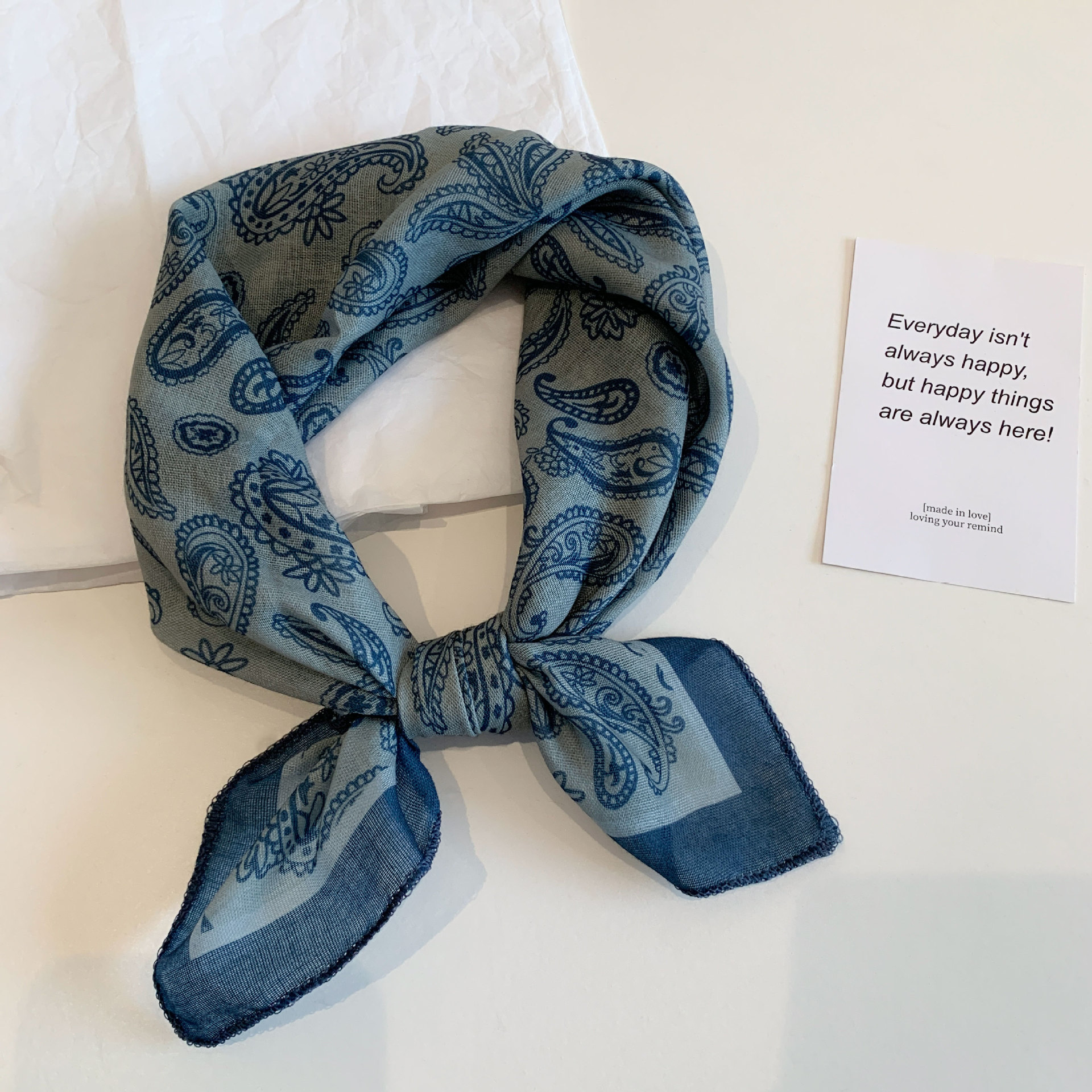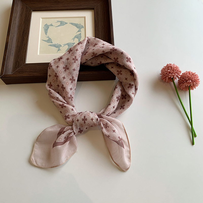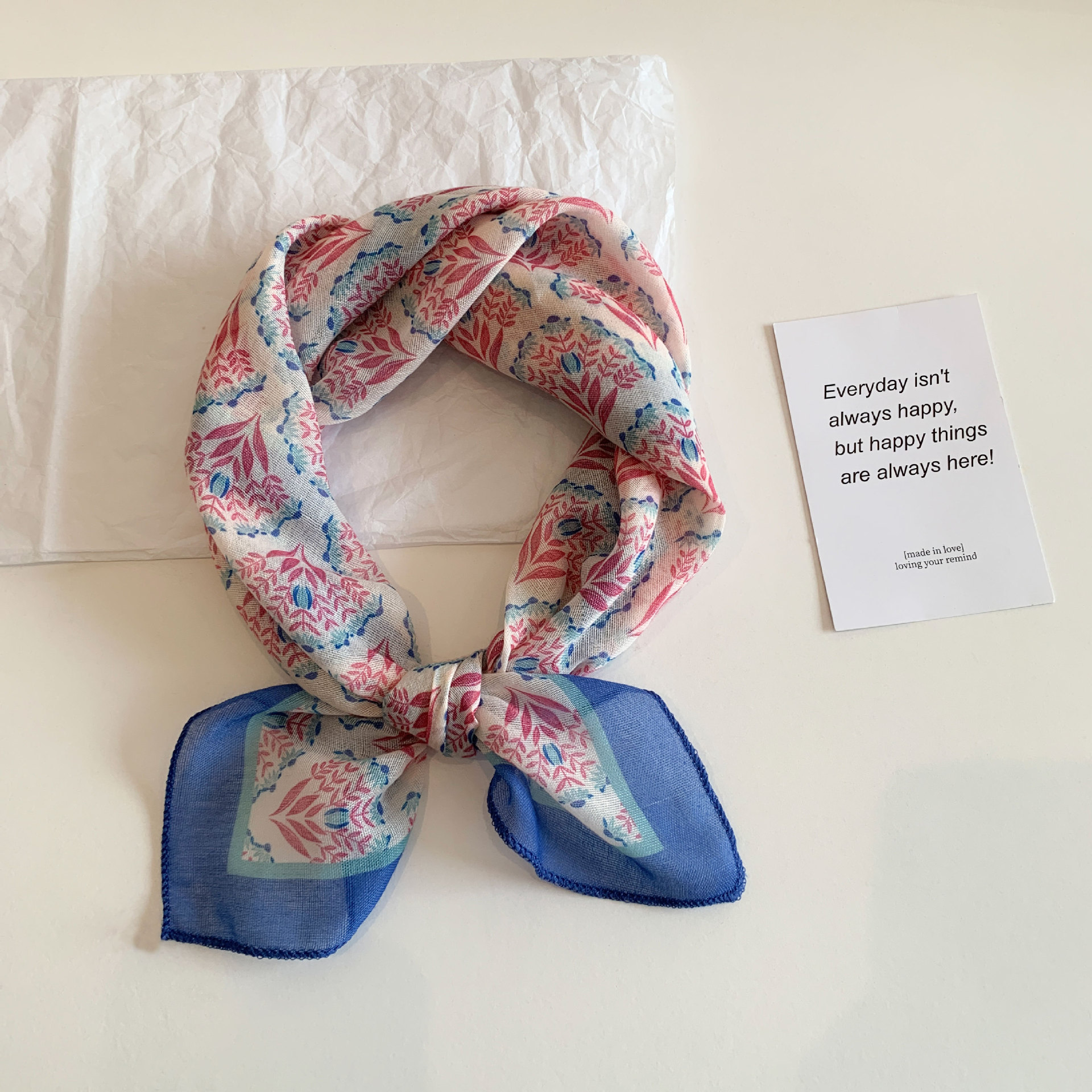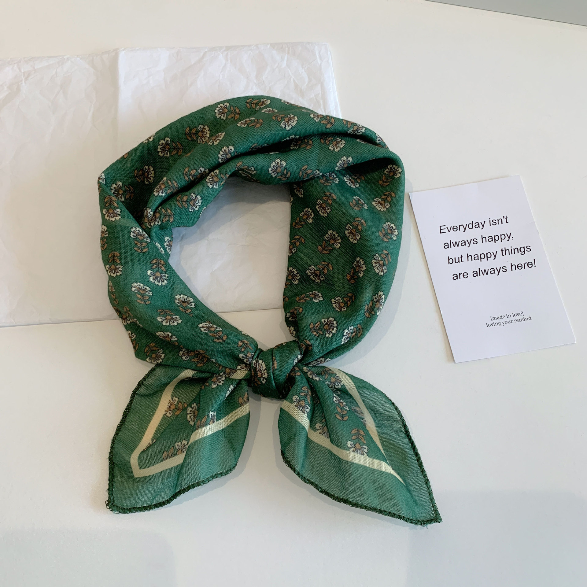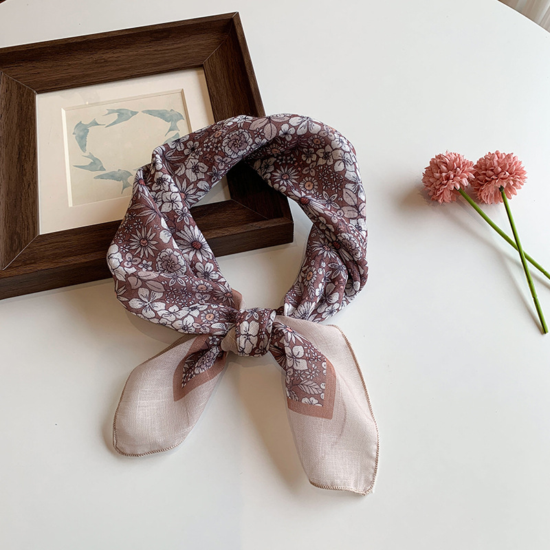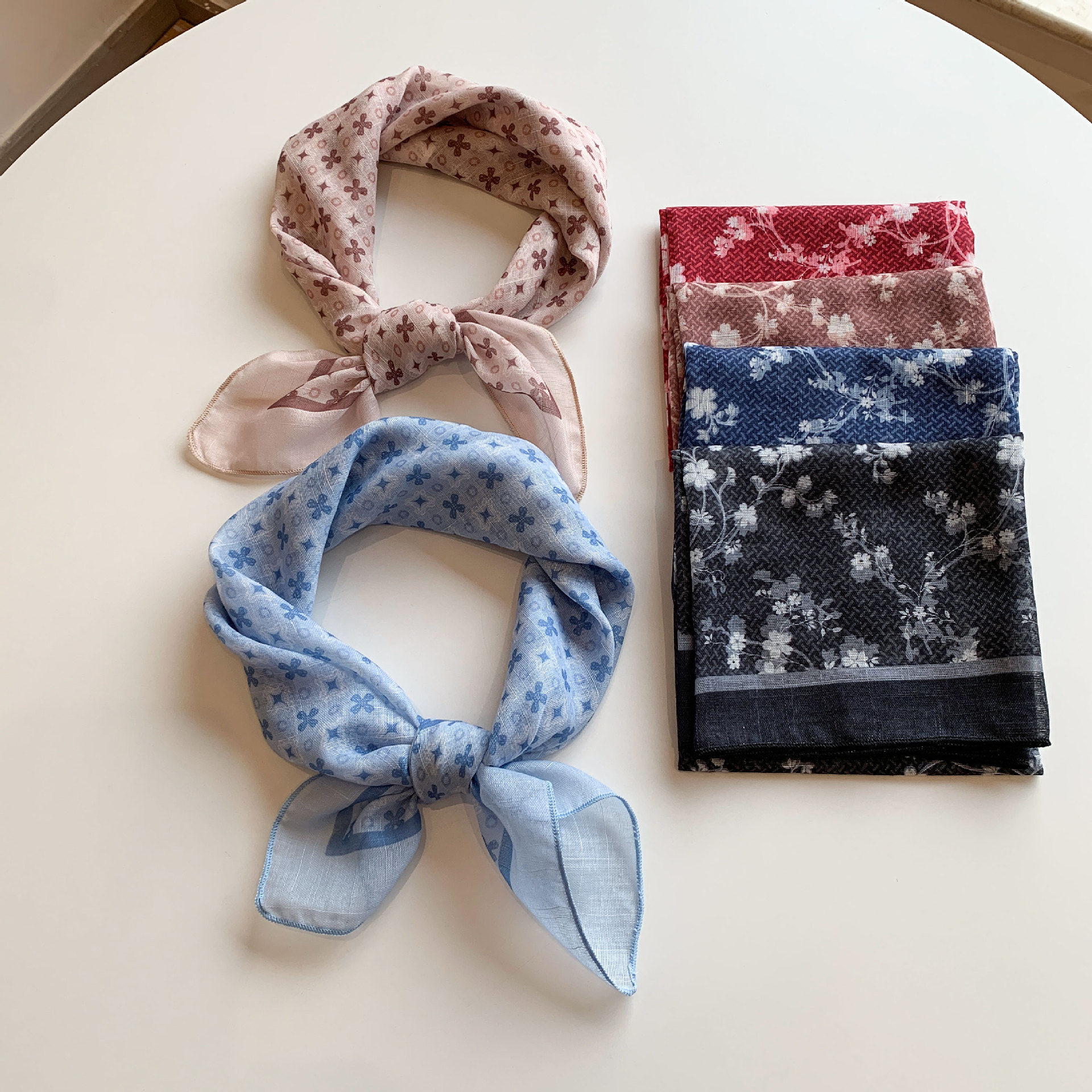 58 면 및 리넨 작은 광장 스카프 여성 한국 예술적 올매치 패션 봄과 가을 새로운 우아한 스카프 머리 스카프스토어 가기