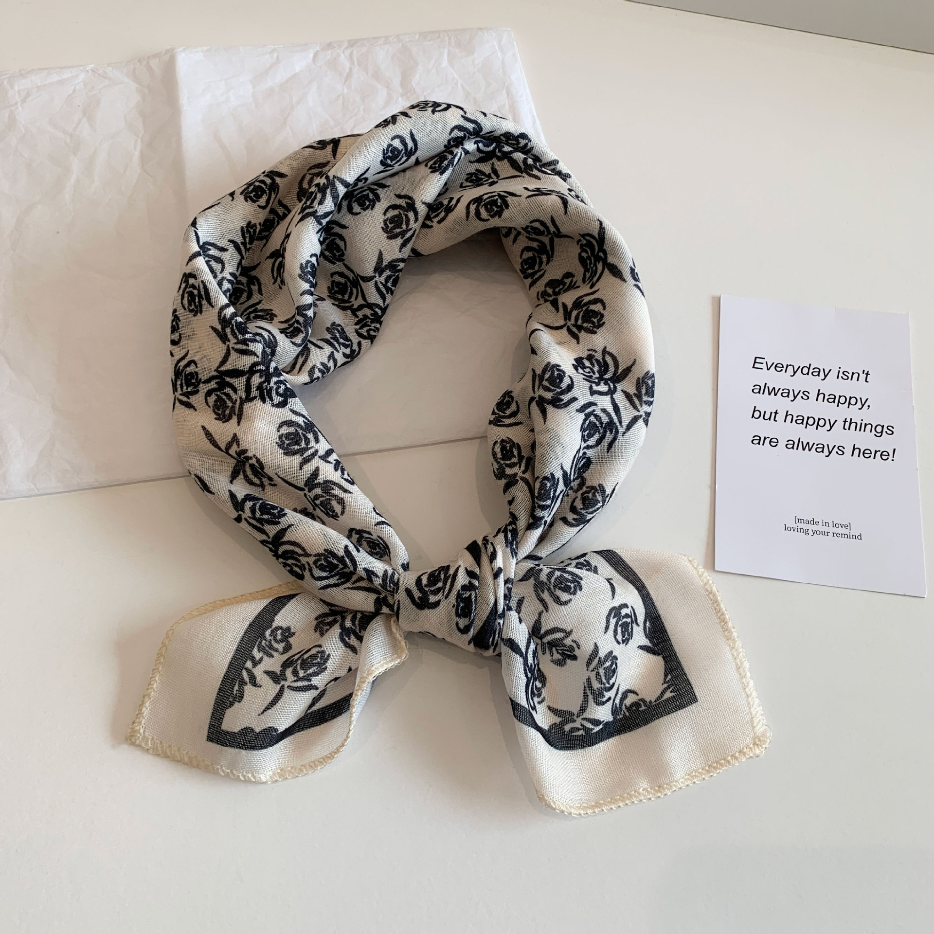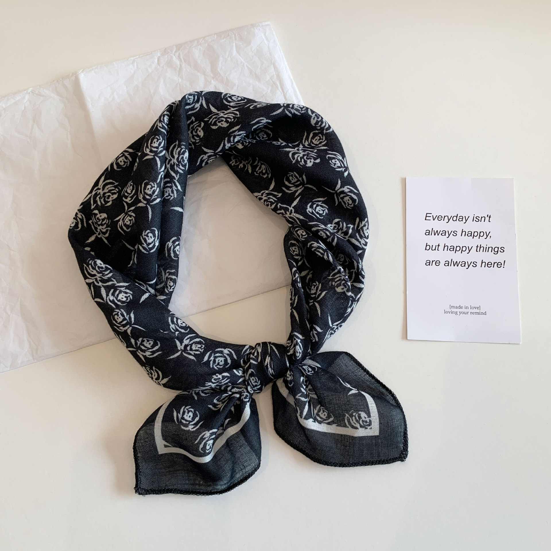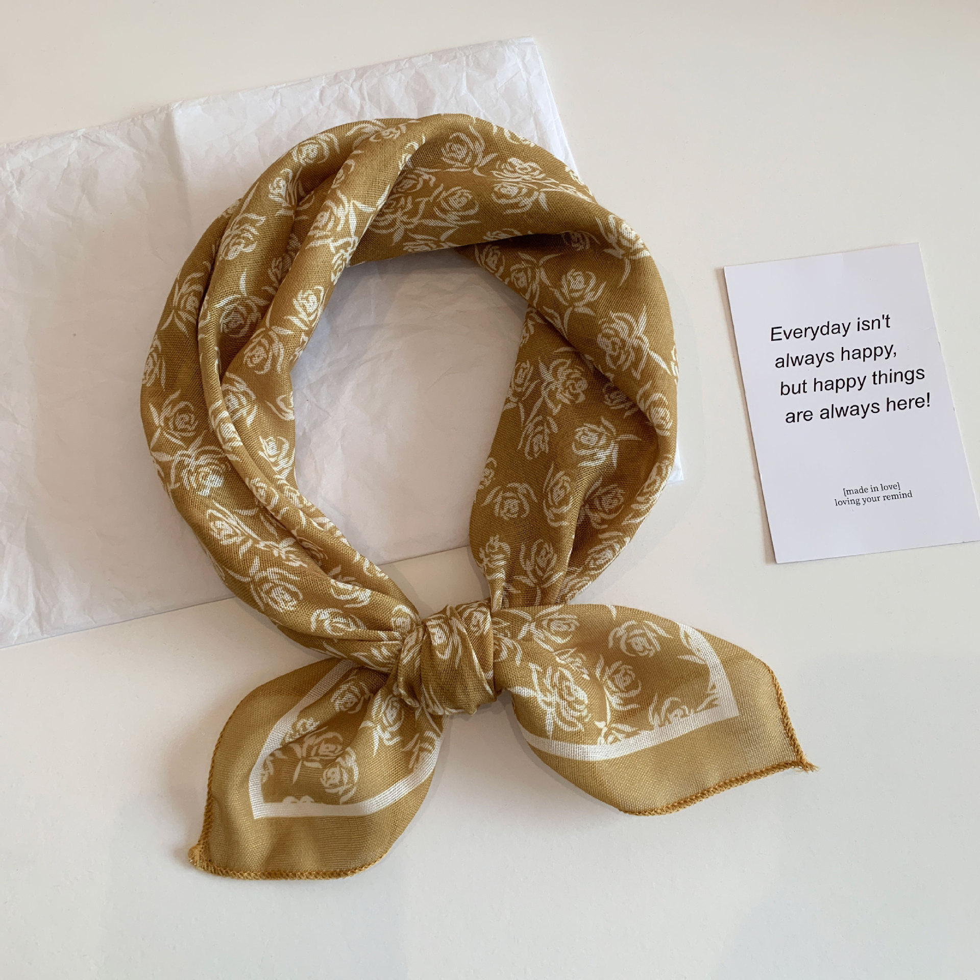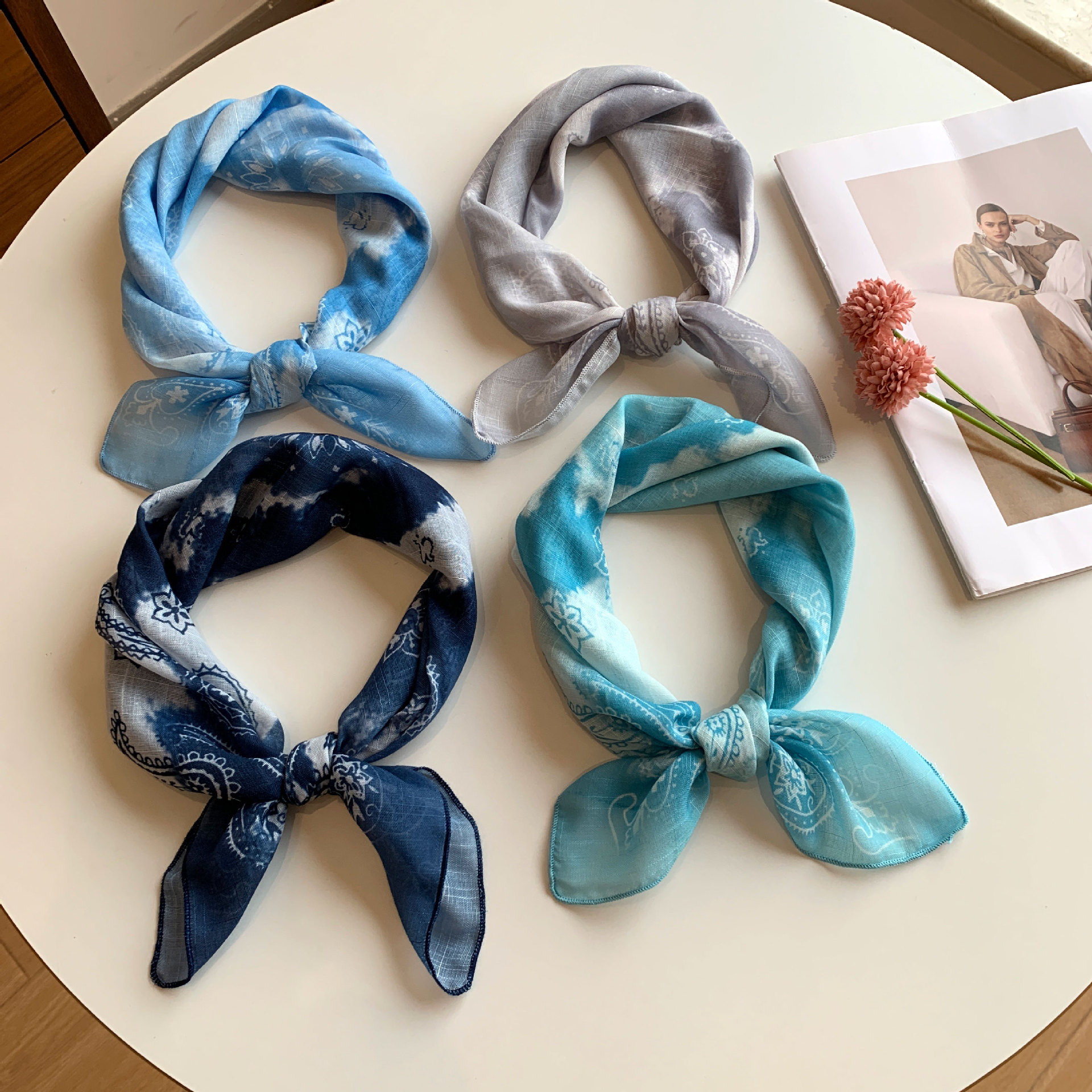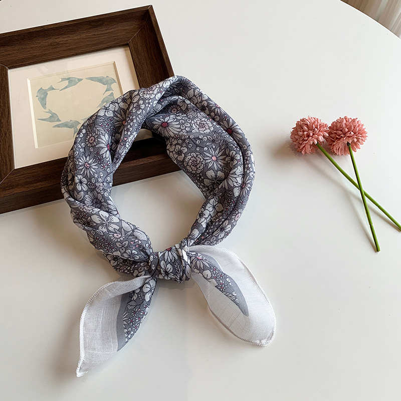 58 면 및 리넨 작은 광장 스카프 여성 한국 예술적 올매치 패션 봄과 가을 새로운 우아한 스카프 머리 스카프스토어 가기