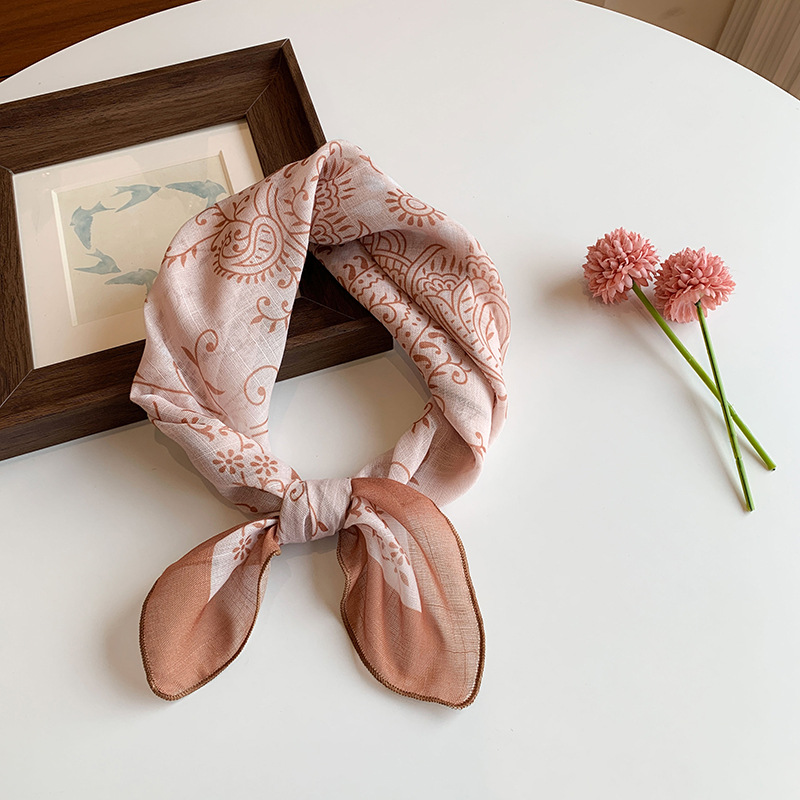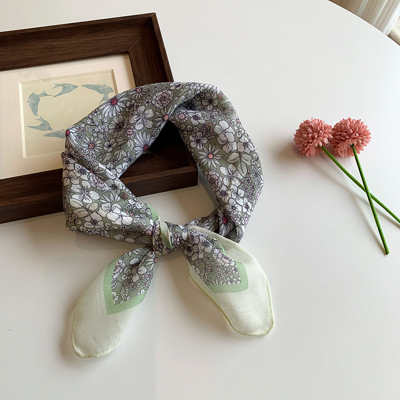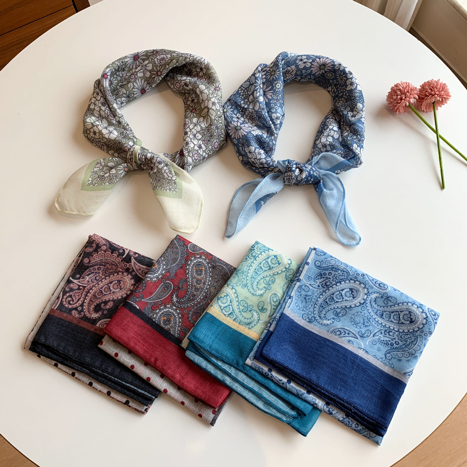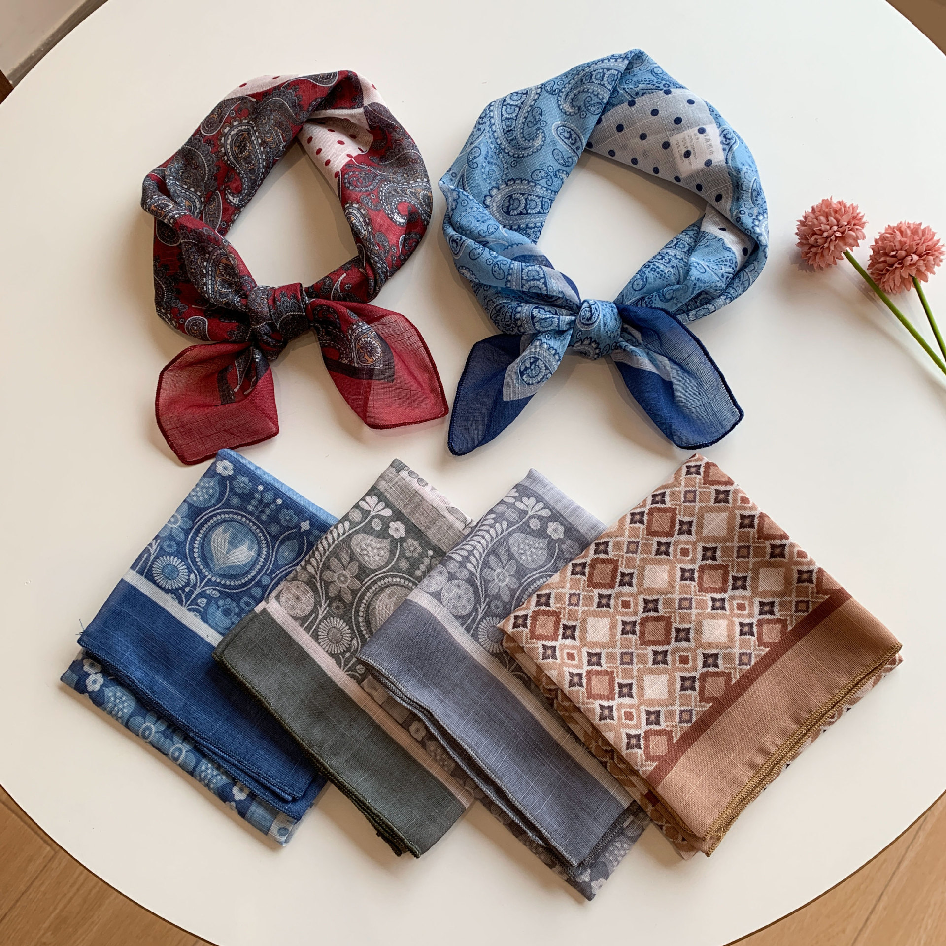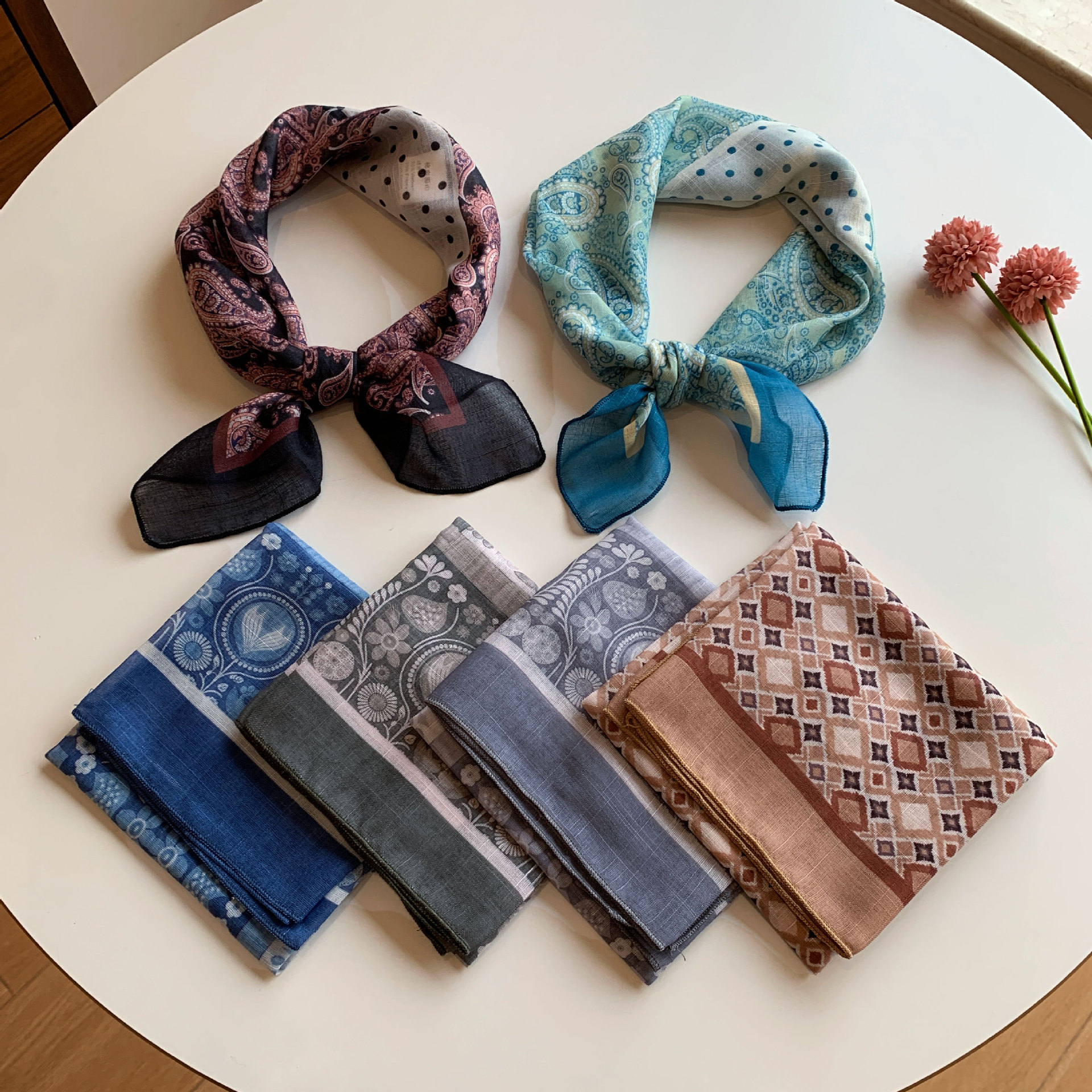 58 면 및 리넨 작은 광장 스카프 여성 한국 예술적 올매치 패션 봄과 가을 새로운 우아한 스카프 머리 스카프