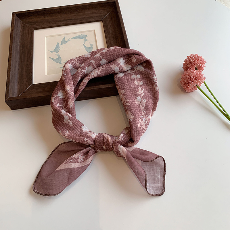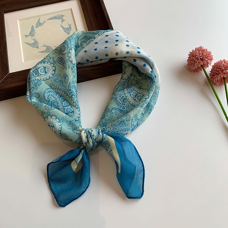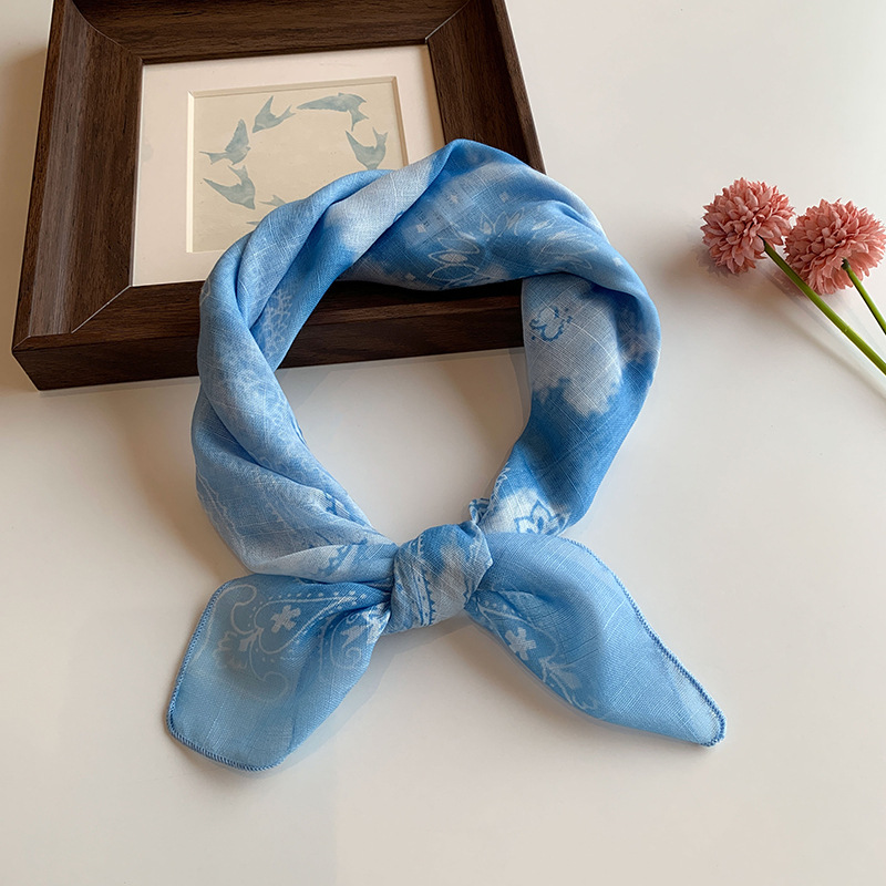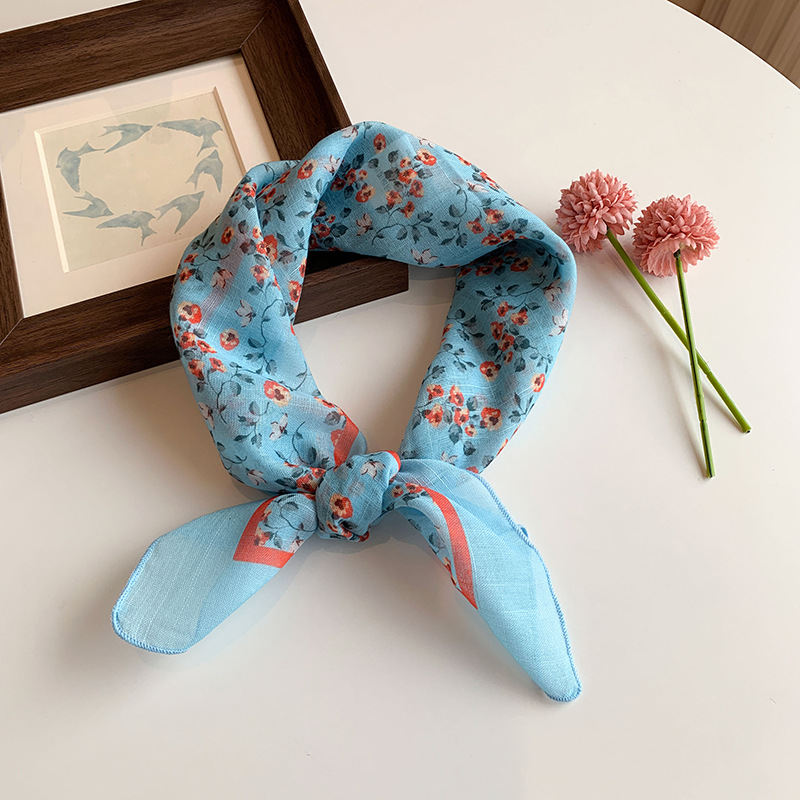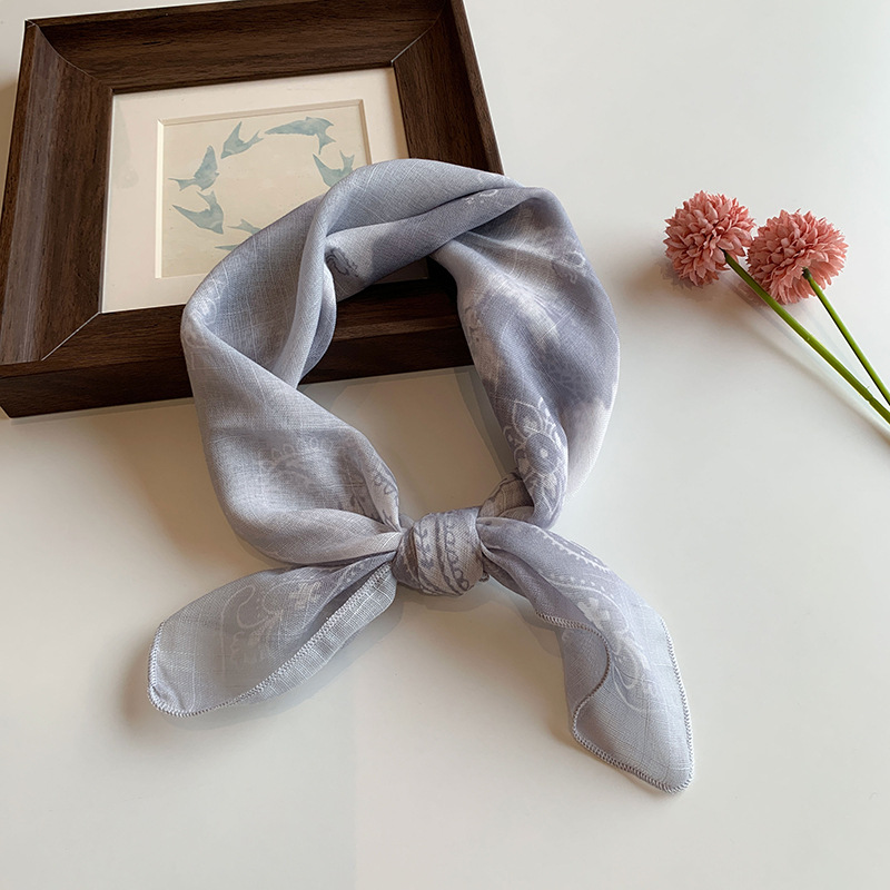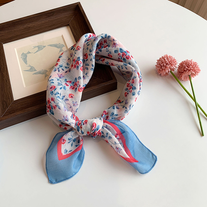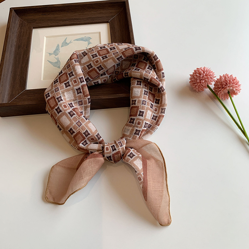 58 면 및 리넨 작은 광장 스카프 여성 한국 예술적 올매치 패션 봄과 가을 새로운 우아한 스카프 머리 스카프