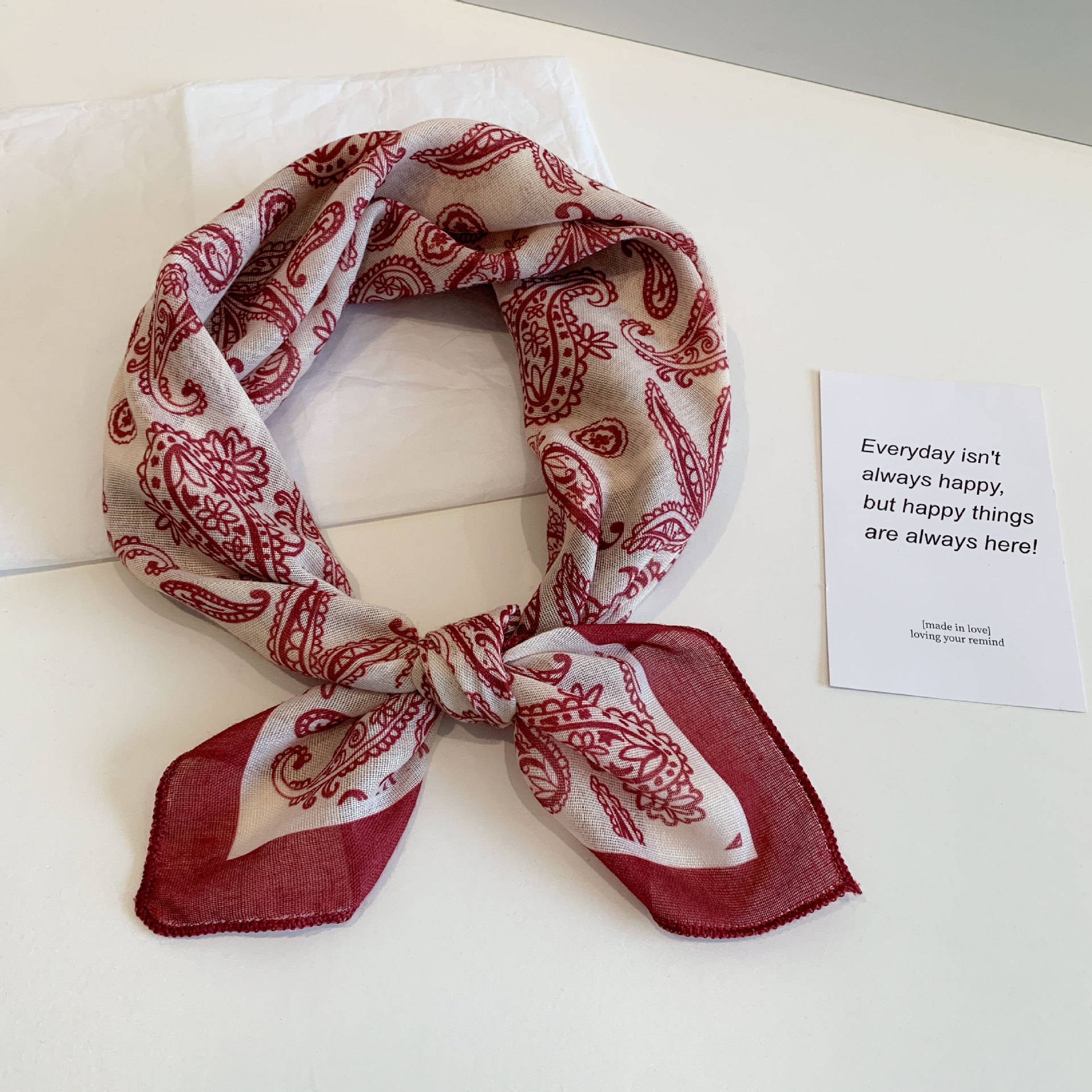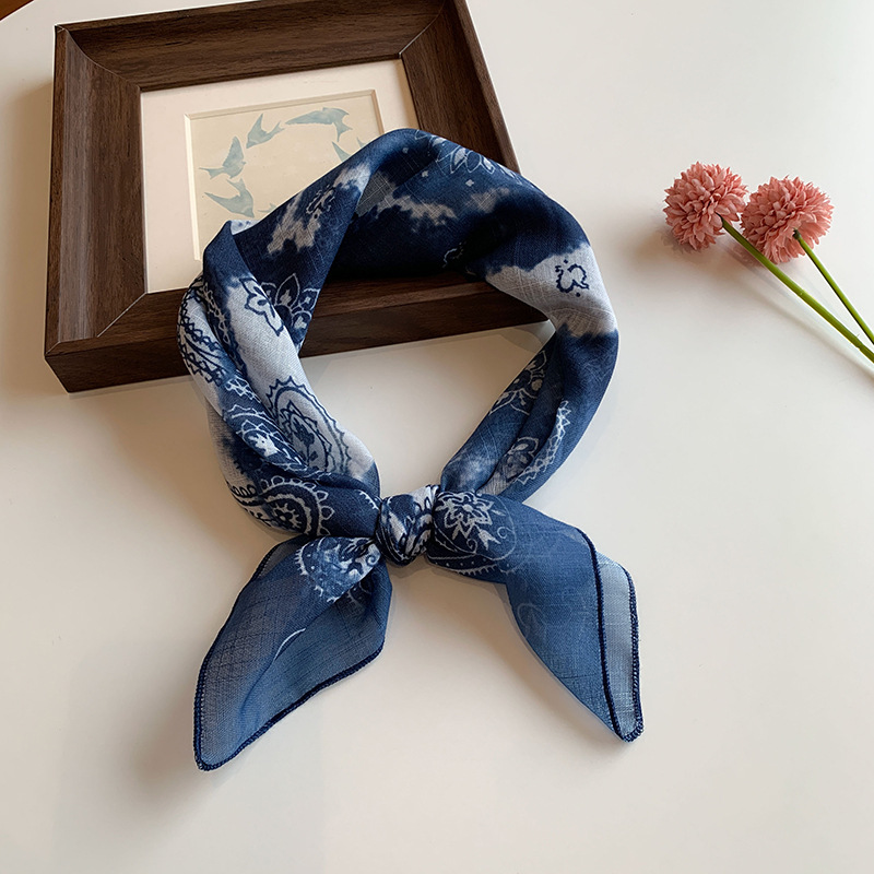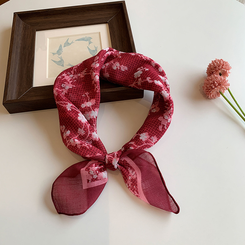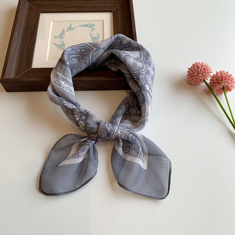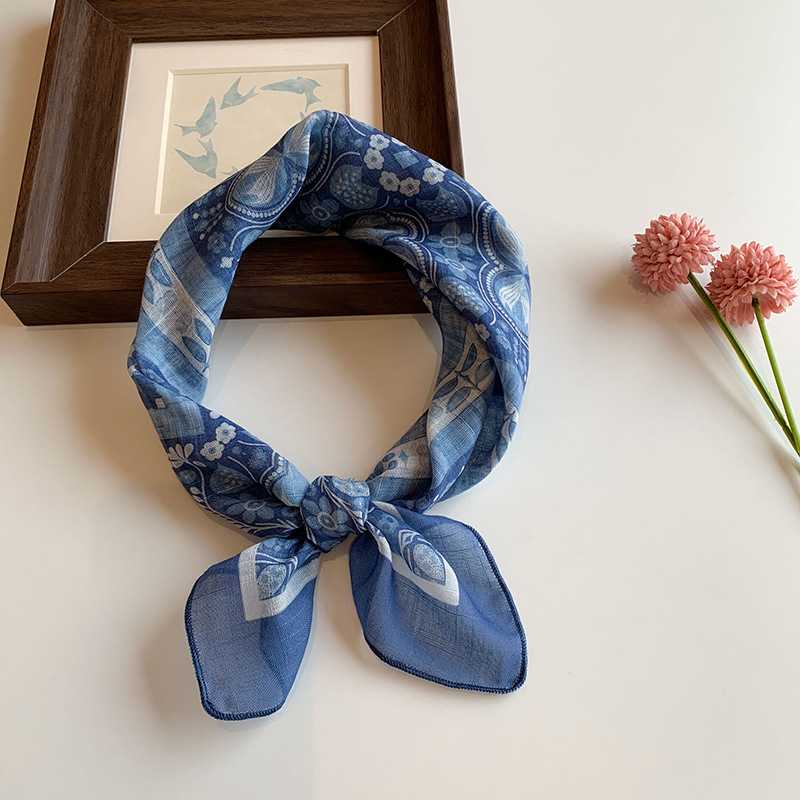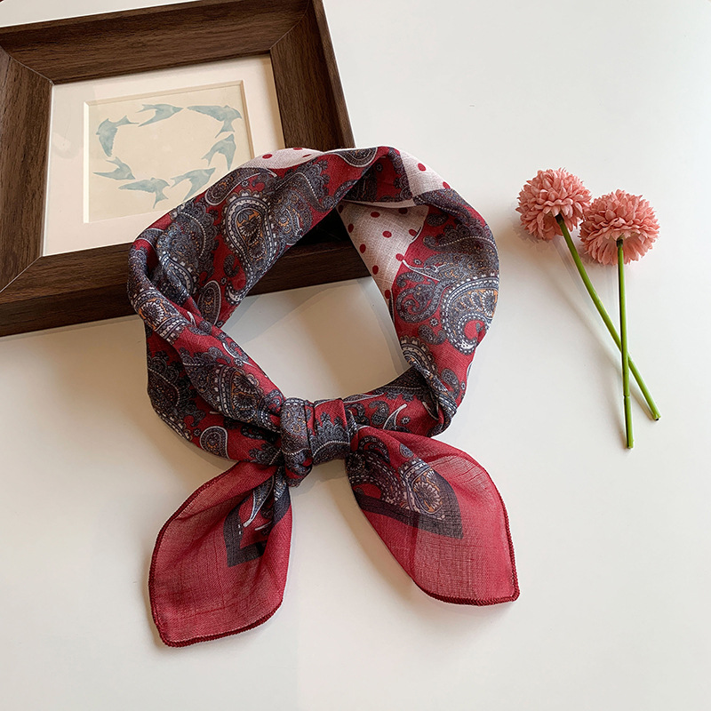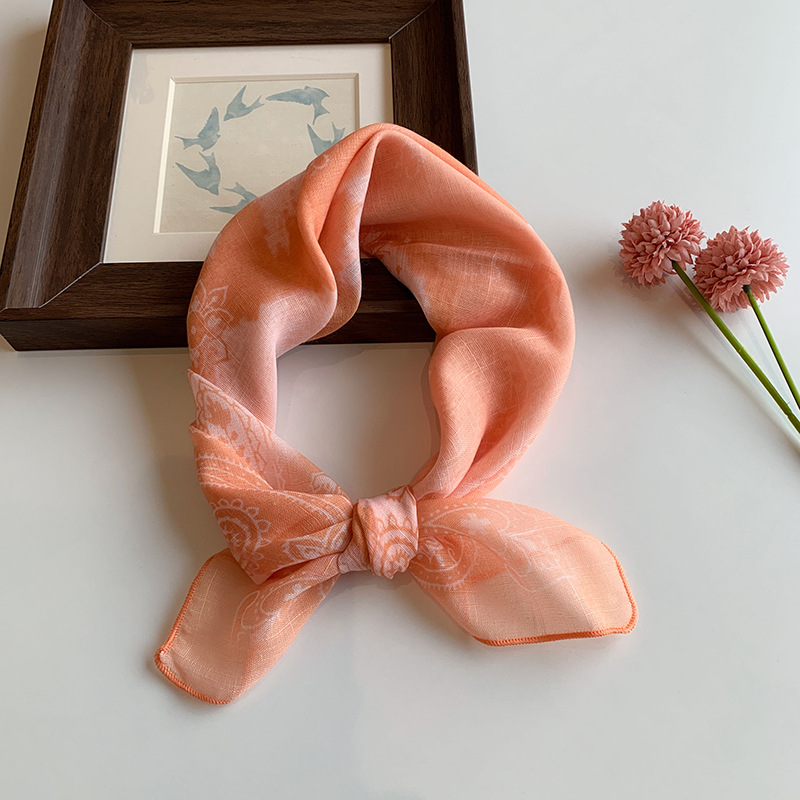 58 면 및 리넨 작은 광장 스카프 여성 한국 예술적 올매치 패션 봄과 가을 새로운 우아한 스카프 머리 스카프