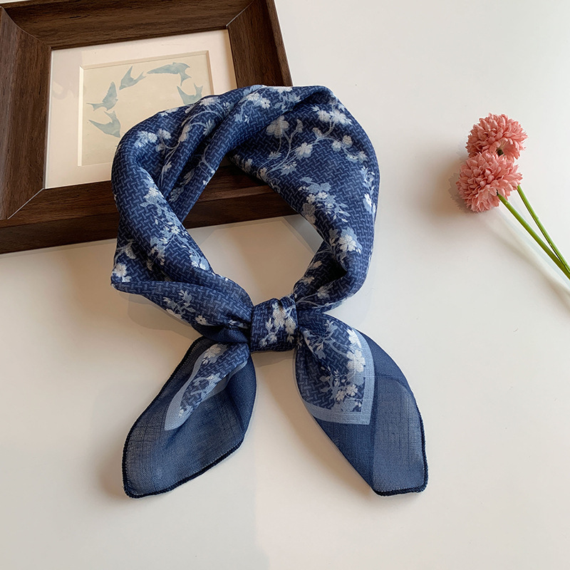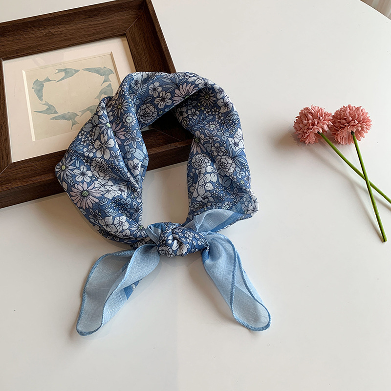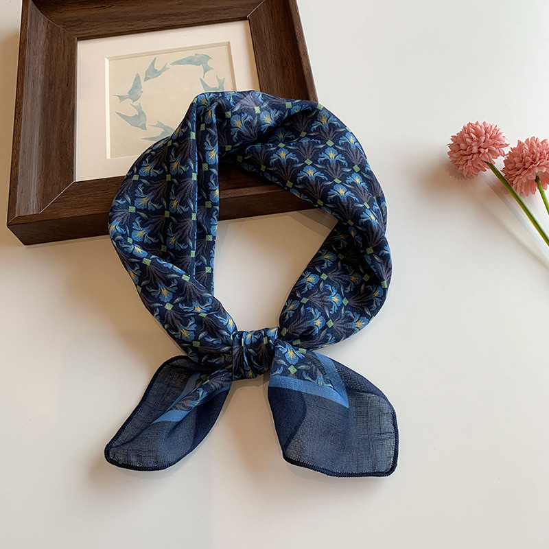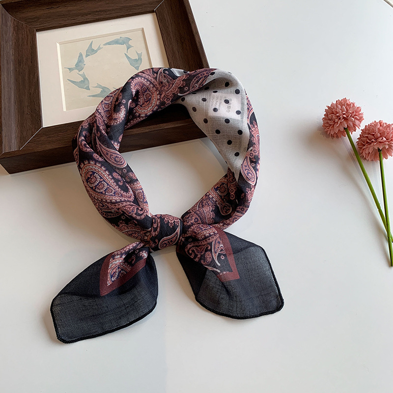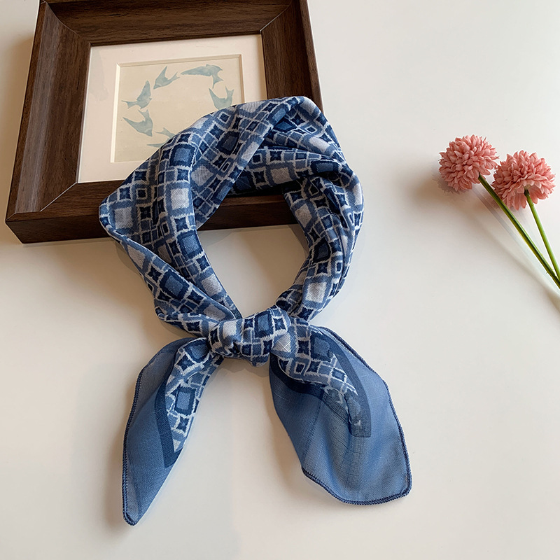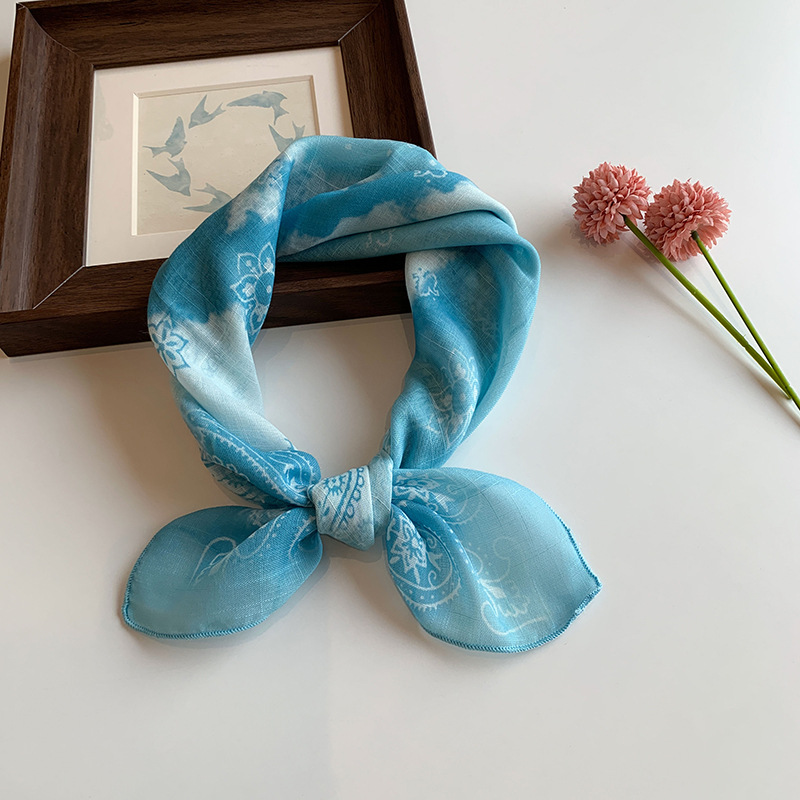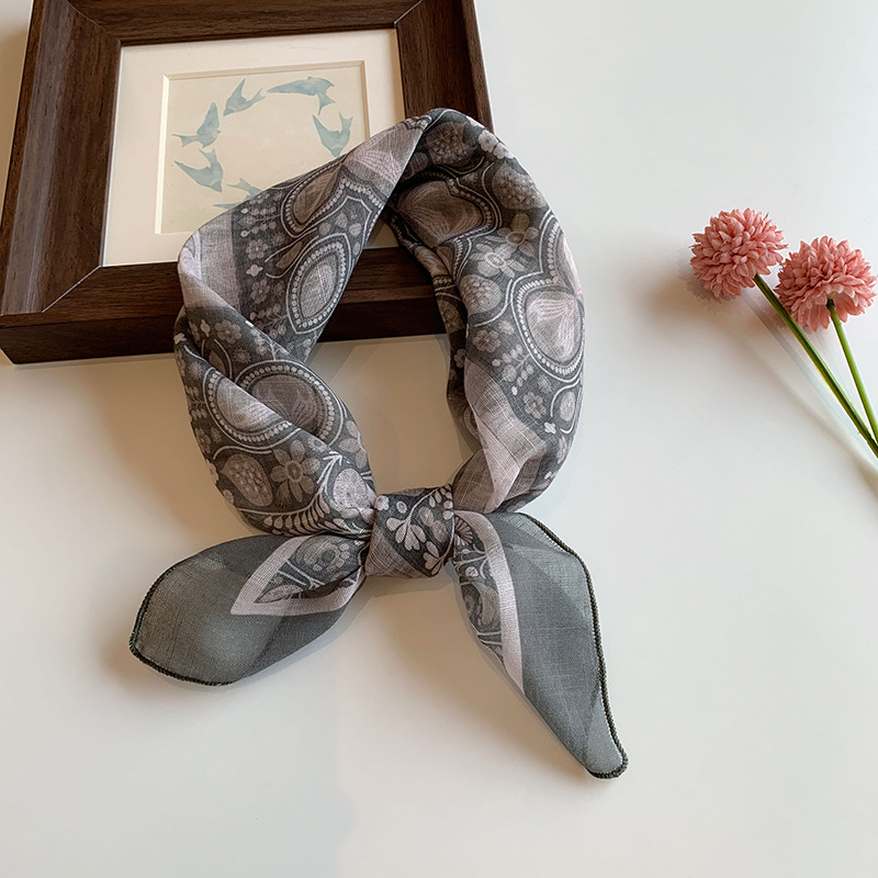 58 면 및 리넨 작은 광장 스카프 여성 한국 예술적 올매치 패션 봄과 가을 새로운 우아한 스카프 머리 스카프